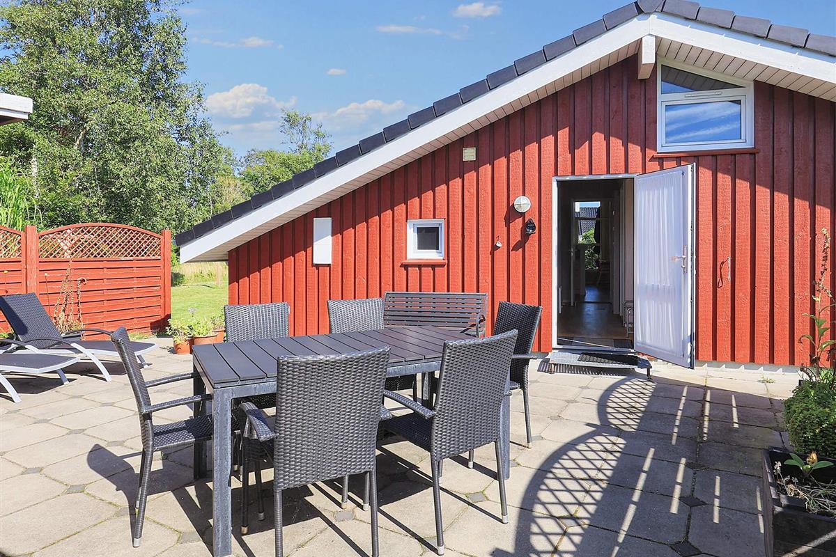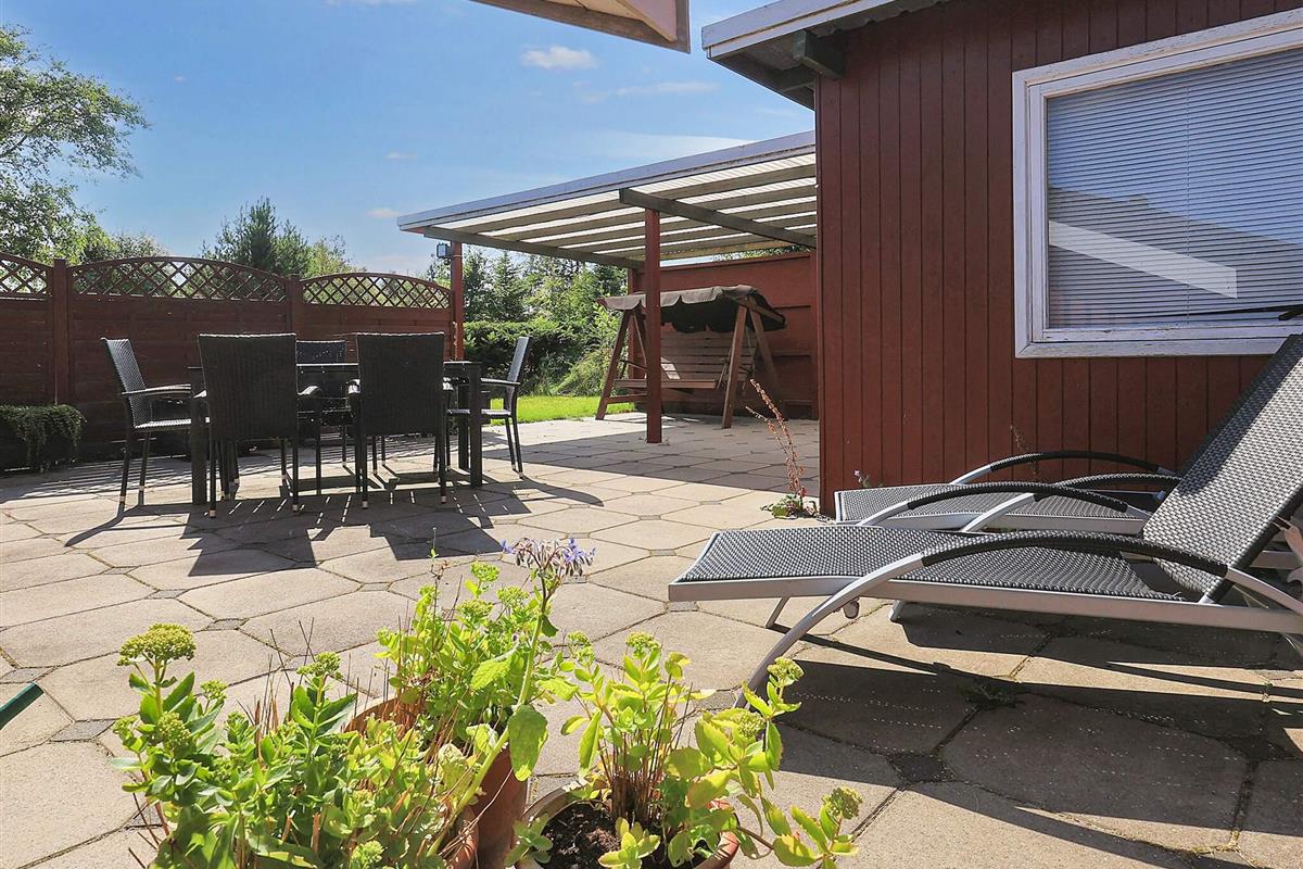 Und: Terrasse, überd. Terrasse, Carport, E-Heiz., Luft-Luft-Wärmepumpe, Spielgeräte, Grill, Naturgrundst. 1526 m2, gemischte Möblierung, Ferienhausgebiet, Nichtraucherhaus