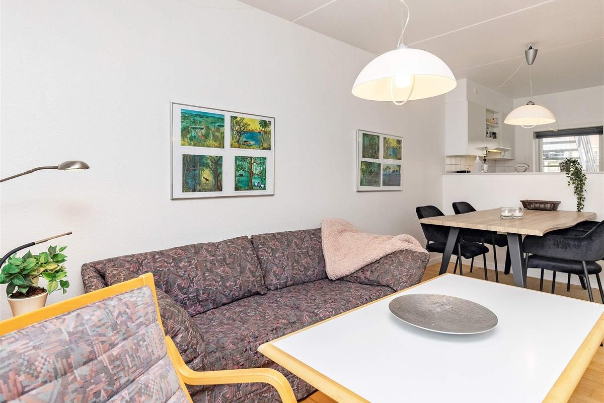 Die Wohnung selbst bietet zwei Schlafzimmer und einen offenen Wohnbereich mit voll ausgestatteter Küche und Essbereich – ideal für gemeinsame Mahlzeiten und geselliges Beisammensein. Die 1990 erbaute und 2004 teilweise renovierte Unterkunft verbindet gepflegten klassischen Stil mit modernem Komfort. Obwohl es keinen herkömmlichen Fernsehempfang gibt, können Gäste ihre eigenen Inhalte problemlos über Chromecast streamen und so entspannte Abende im Haus genießen. Die nach Südwesten ausgerichtete Terrasse lädt zum Sonnenbaden, Essen im Freien oder einfach zum Entspannen nach einem Tag am Strand ein. Umgeben von der friedlichen Landschaft von Koldkær und der nahegelegenen Natur ist die Wohnung ein komfortabler Ausgangspunkt für Erkundungstouren in die umliegende Region. Familien können die gemeinsamen Freizeitbereiche der Anlage nutzen, während die Nähe zum Sandstrand zum Sonnenbaden, Schwimmen und für Wasserspaß einlädt. Mit der perfekten Balance aus Ruhe, Erreichbarkeit und familienfreundlichen Annehmlichkeiten bietet diese Wohnung den idealen Rahmen für einen unvergesslichen Urlaub am Meer.