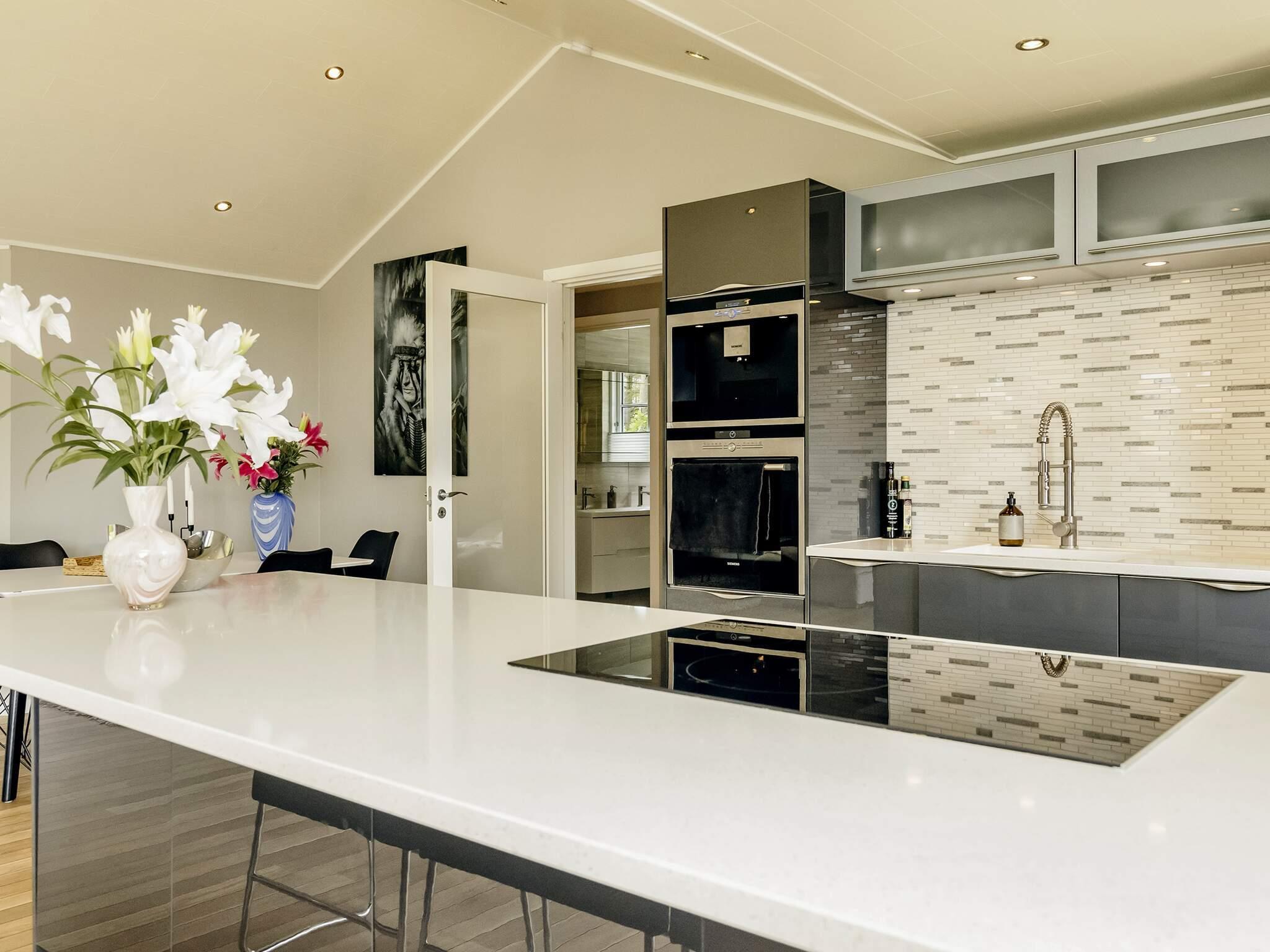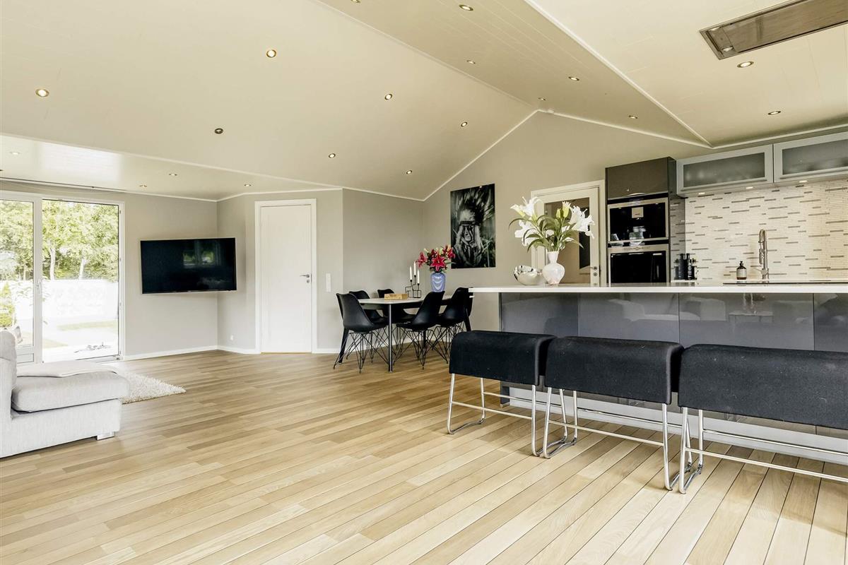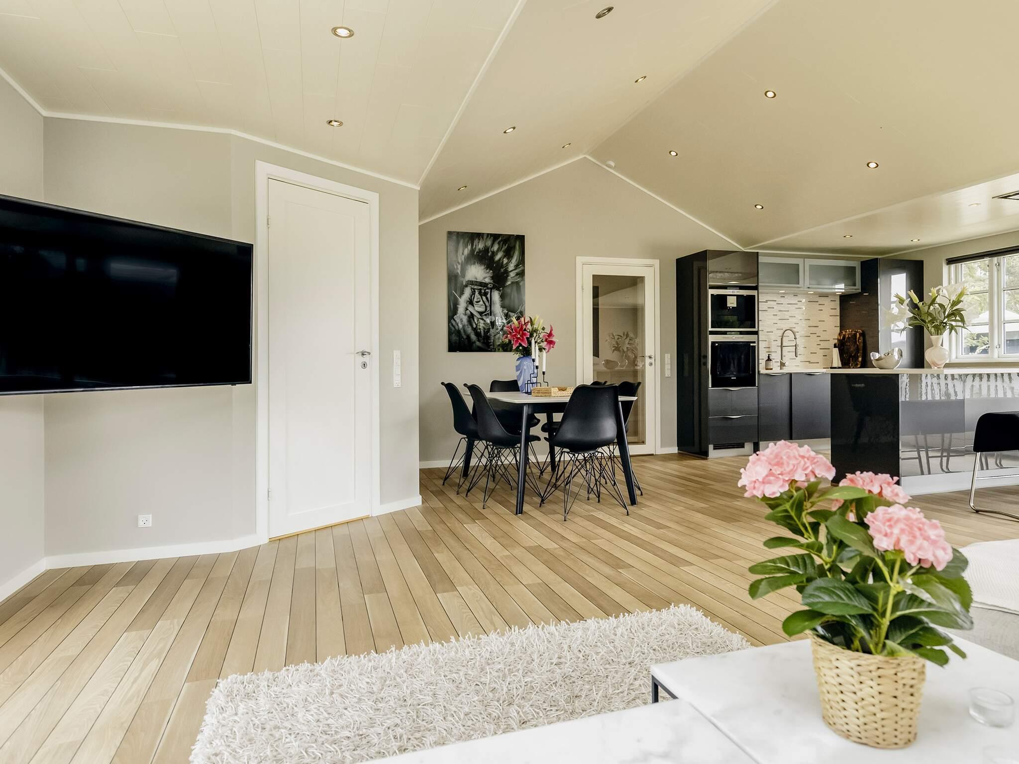 Das Ferienhaus verfügt über einen schönen Küchen-/Wohnbereich mit einer Kücheninsel als Abtrennung.