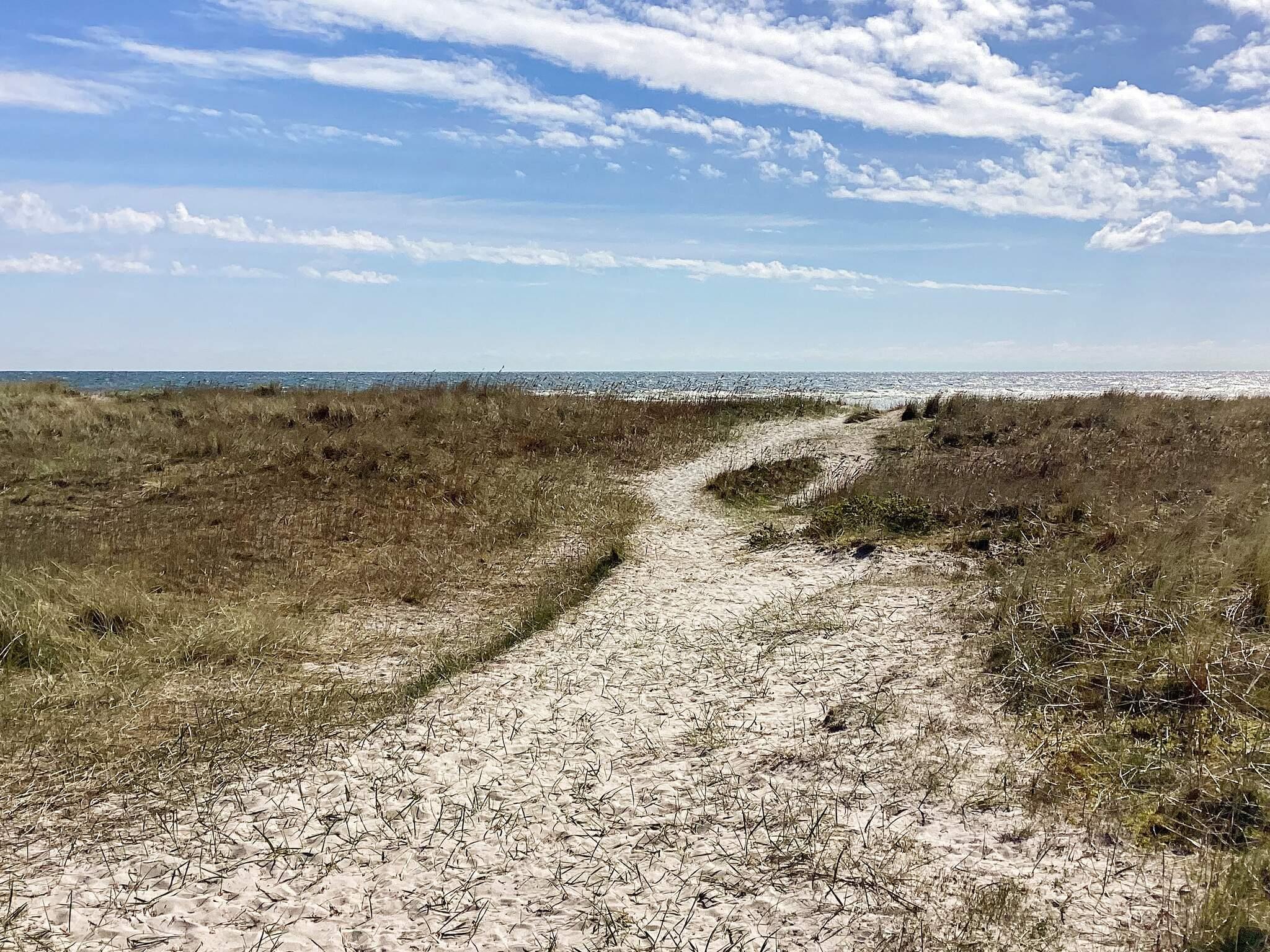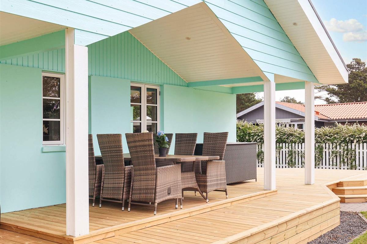 Attraktiv gelegenes Ferienhaus mit Blick zum Meer. Liegt nur wenige Gehminuten vom familienfreundlichen Sandstrand entfernt.