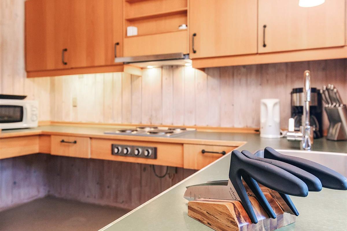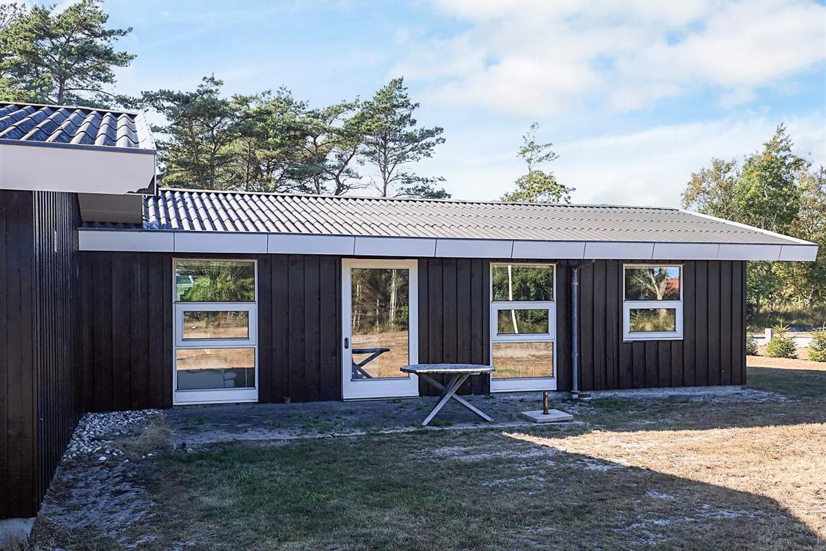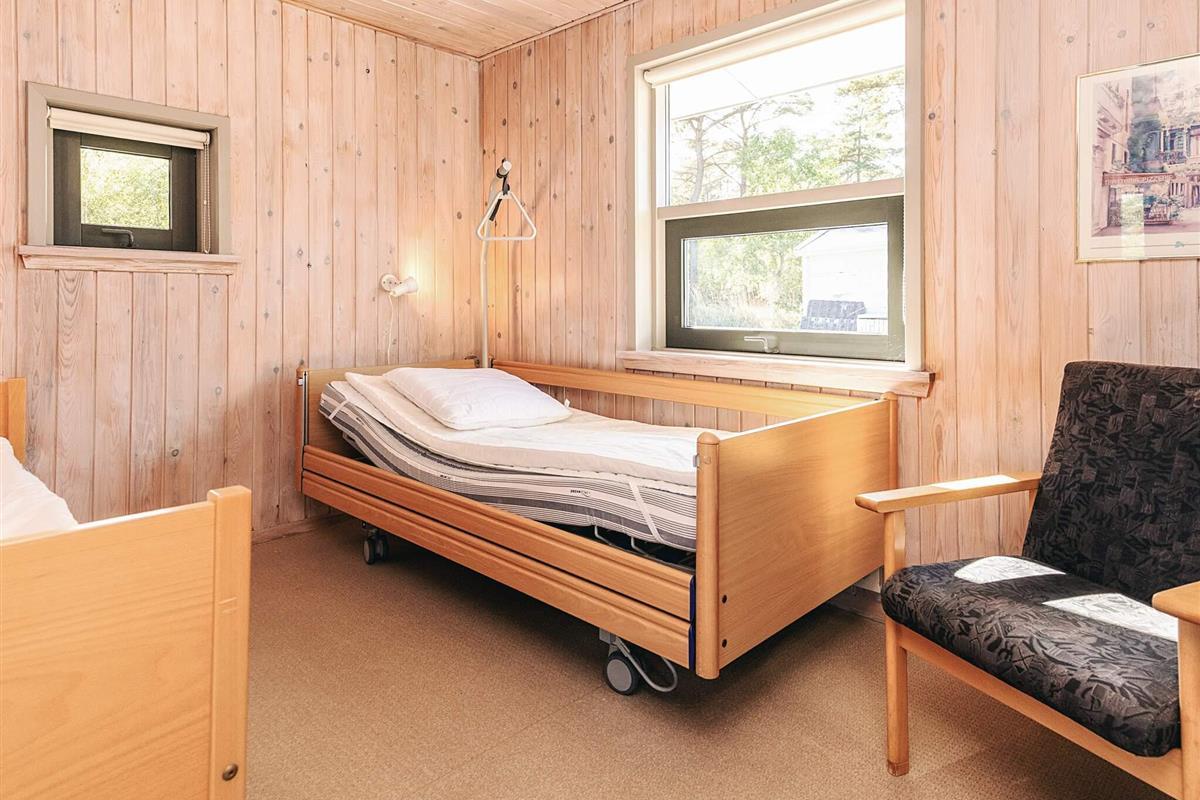 Das Haus ist behindertengerecht, ohne Türschwellen im Innenbereich und nur mit einer kleinen Stufe am Eingang. Es teilt ein großes Naturgrundstück von 3.000 m² mit einem Nachbarhaus, das direkt angebaut und ebenfalls behindertengerecht ist. Eine Gemeinschaftsterrasse mit Gartenmöbeln auf einem Hügel steht nach dem Prinzip „Wer zuerst kommt, mahlt zuerst“ für bis zu vier Personen zur Verfügung. Der Strand ist nur fünf Gehminuten entfernt und das Haus befindet sich in einem ruhigen Ferienhausgebiet. Elektrische Heizung sorgt für wohlige Wärme an kühleren Tagen.