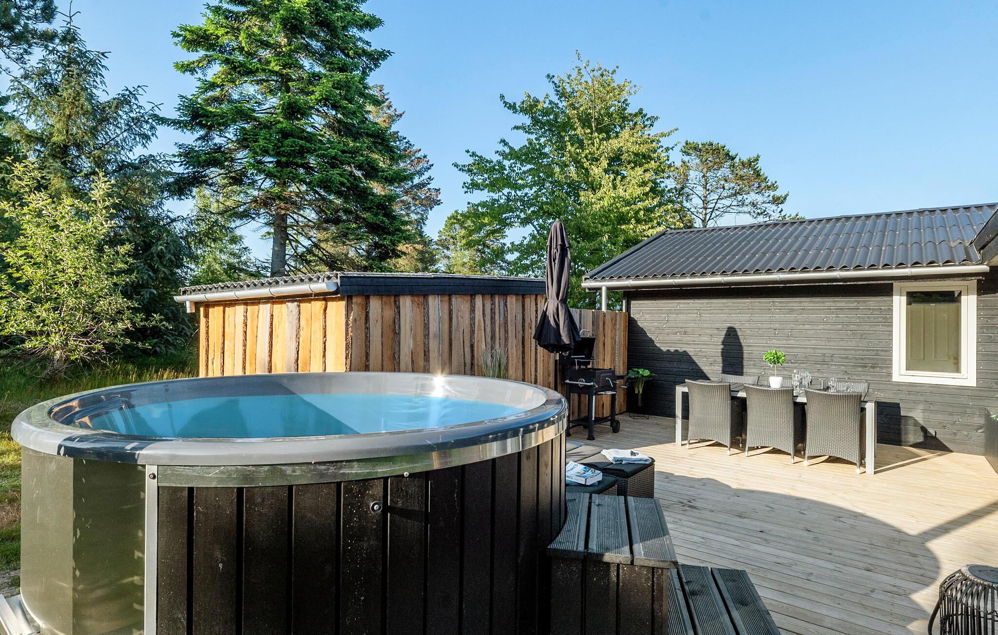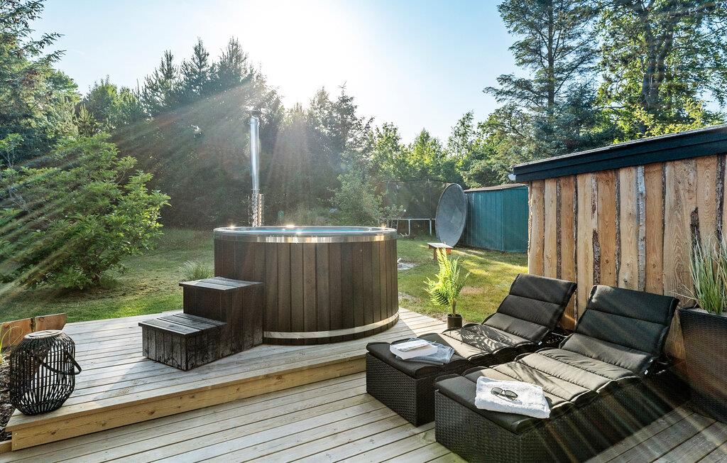 Ontspan in dit kindvriendelijke vakantiehuis met Fins houten bad en whirlpool in een ruime tuin nabij Hals strand.