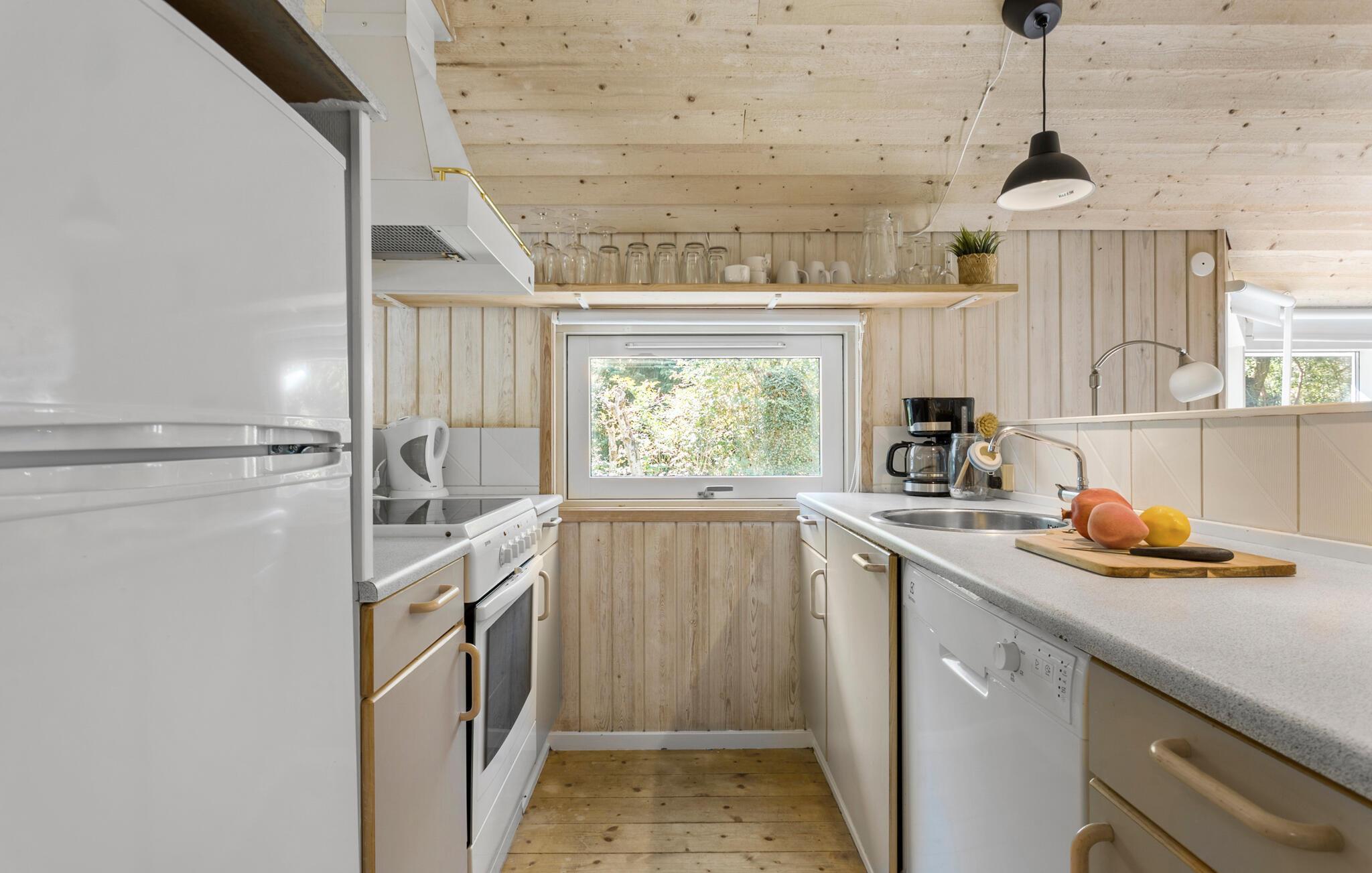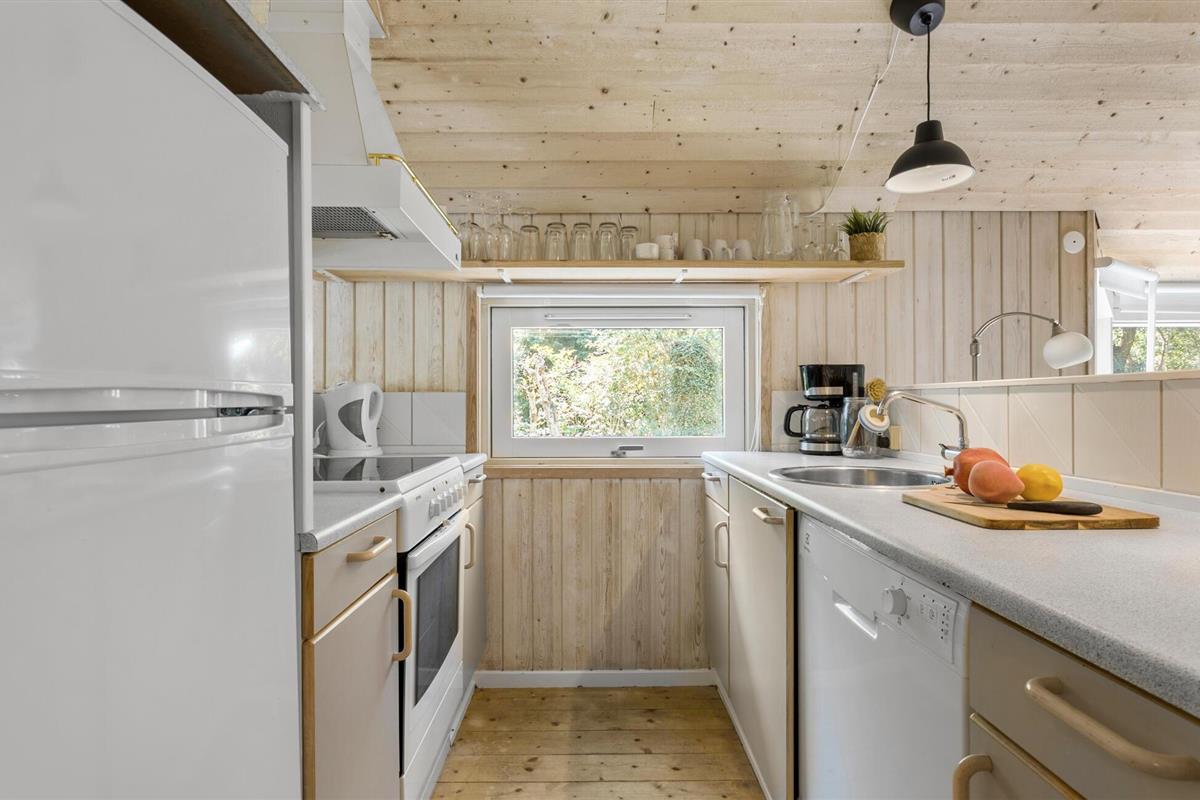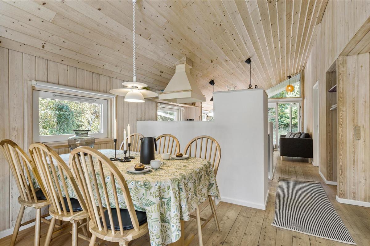 Een vakantie in dit vakantiehuis in Hals biedt je een geweldige kans om de schoonheid van de oostkust van Jutland te ontdekken. Het huis ligt in een natuurlijk landschap van heide en heuvels en biedt een afgelegen en ongestoorde omgeving. Binnen in het huis vind je een praktisch en gezellig interieur. De woonkamer is licht en uitnodigend, met directe toegang tot de ruime terrassen. Hier kun je genieten van de zon of ontspannende uren buiten doorbrengen. De open eethoek heeft een praktisch ontwerp en ligt direct naast de keuken, die is uitgerust met al het keukengerei dat je nodig hebt om je maaltijden te bereiden.