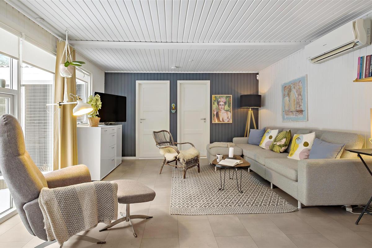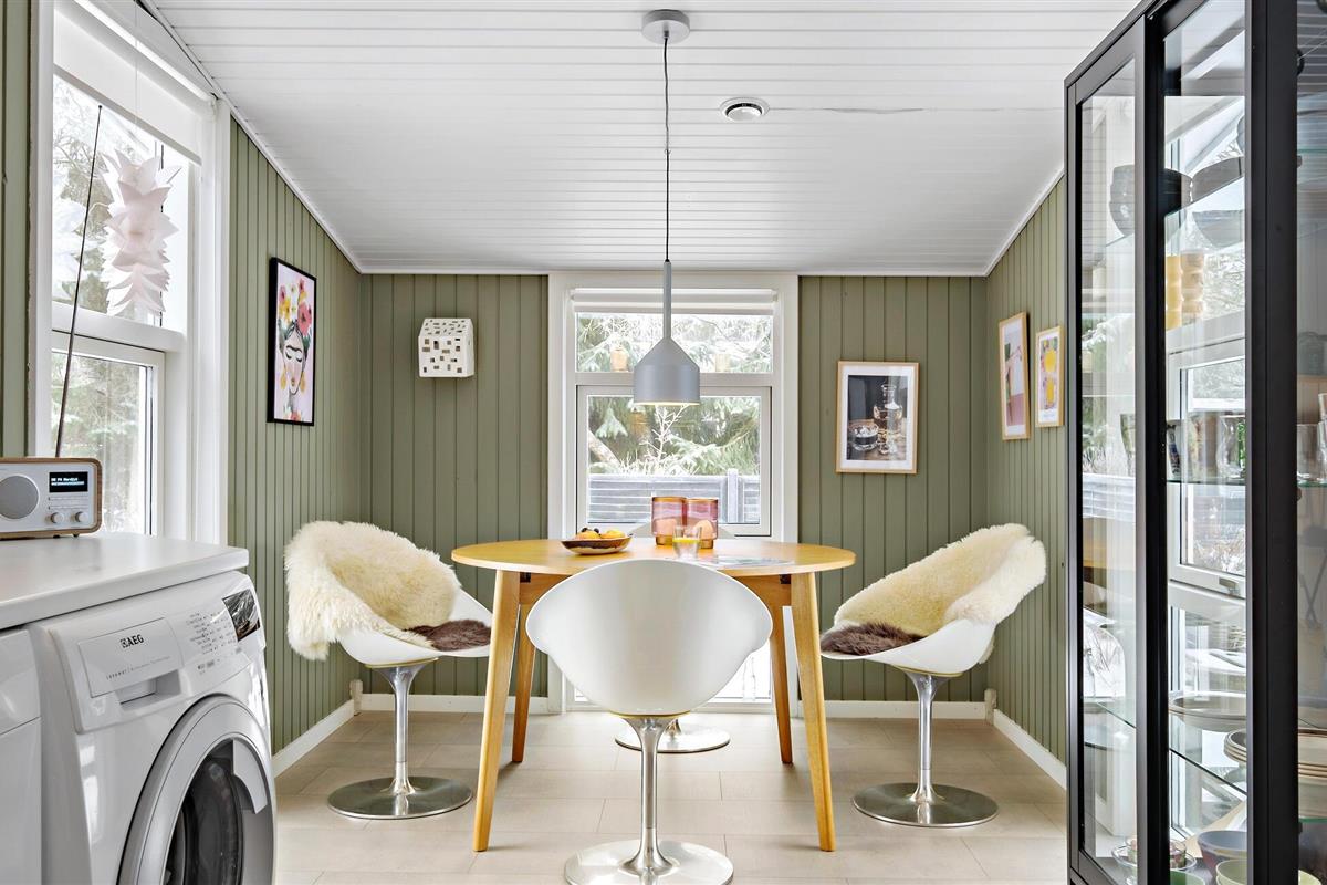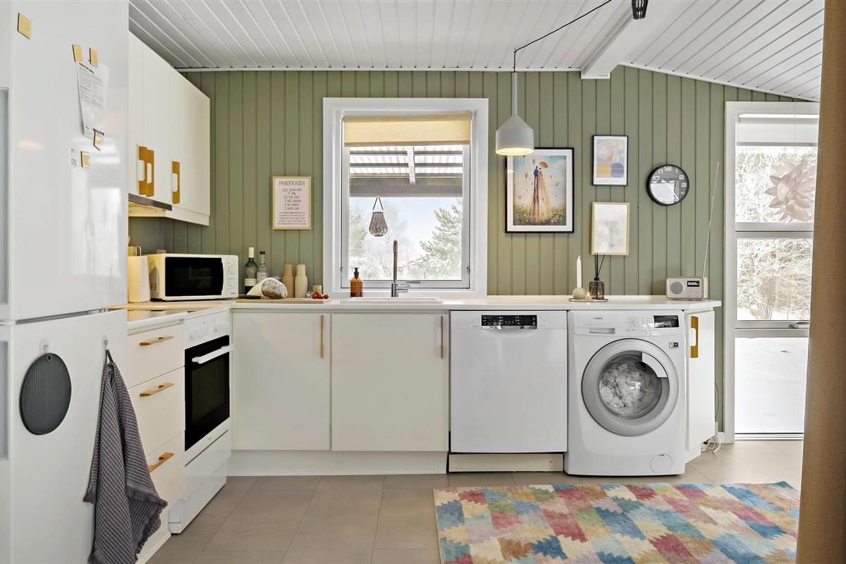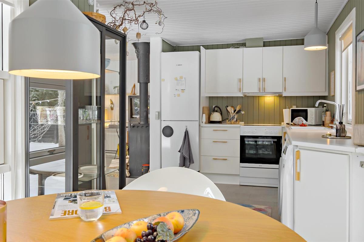 Dit uitnodigende vakantiehuis verwelkomt je aan het einde van een doodlopende weg in een gezinsvriendelijke buurt met veel activiteiten voor kinderen. Zodra je binnenkomt, vallen de liefdevol ingerichte en gemeubileerde kamers je op en voel je je meteen thuis. De vele ramen van vloer tot plafond en de houtkachel maken van de woonkamer, in combinatie met de keuken en eethoek, de ideale ontmoetingsplek voor het gezin. Hier kun je samen koken, spelen aan de eettafel of ontspannen op de bank.