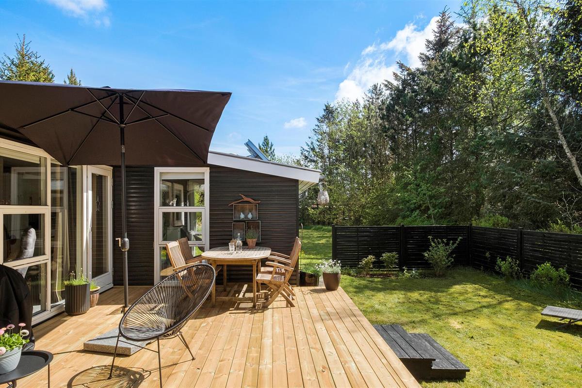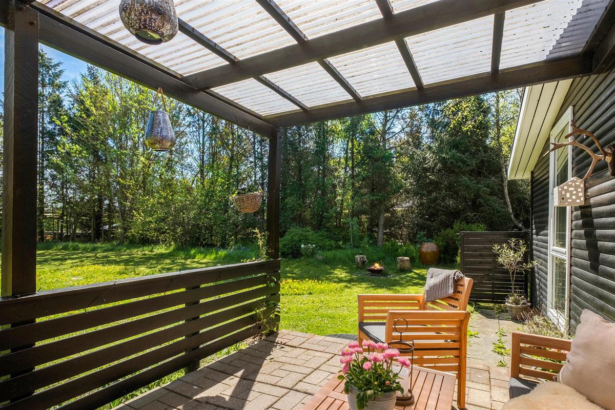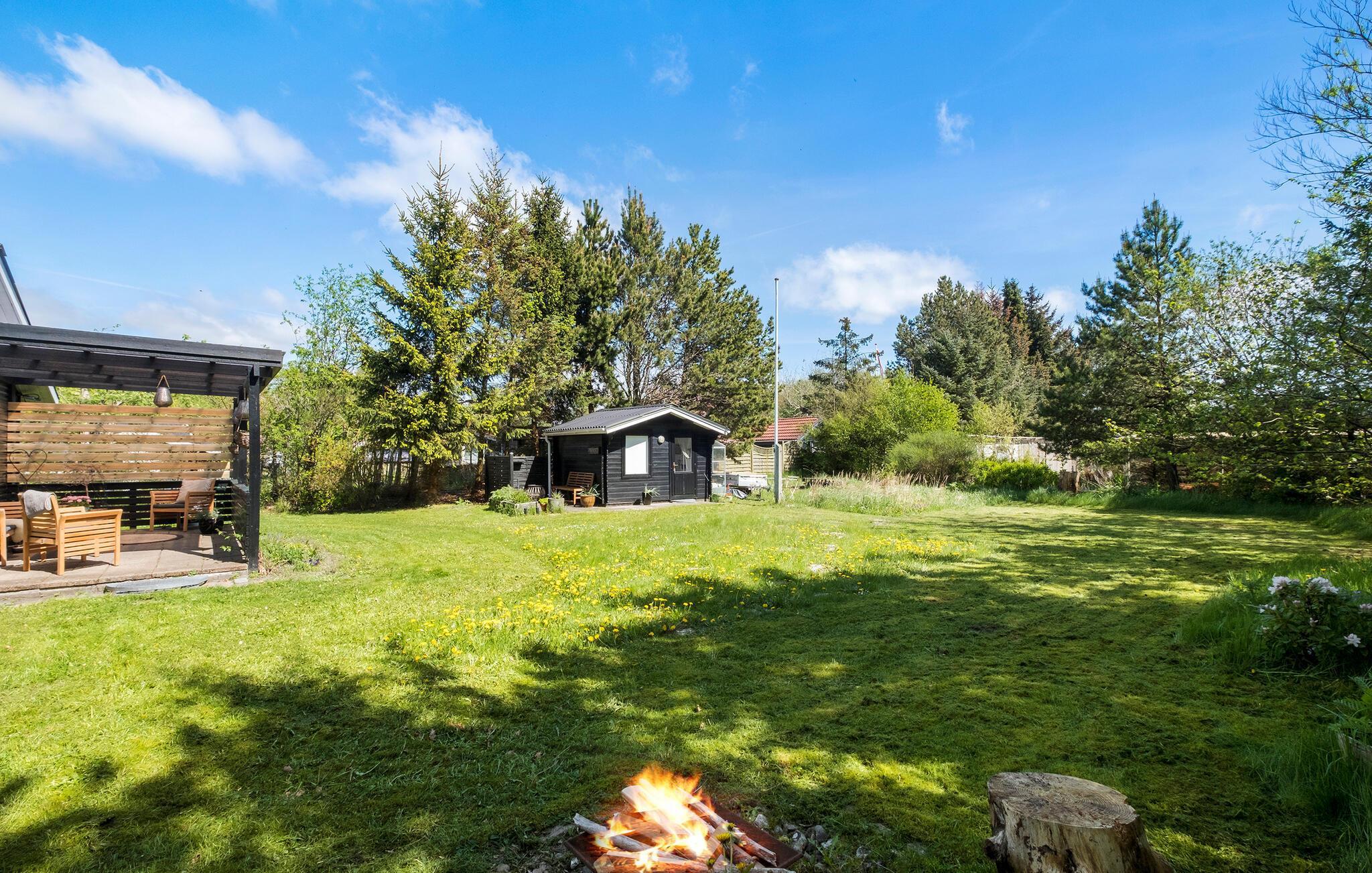 Stijlvol houten vakantiehuis met privéterras, houtkachel en ruime tuin in het rustige Hals, dichtbij kindvriendelijk zandstrand.