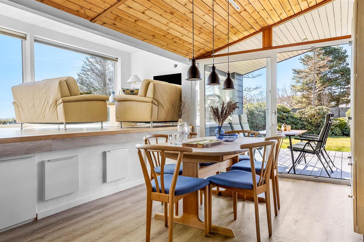 Geniet van ontspannende vakantiemomenten in dit gezinsvriendelijke vakantiehuis, op slechts een steenworp afstand van de baai van Aalborg. Omgeven door kustlandschap en frisse zeelucht biedt het huis ideale omstandigheden voor ontspannen dagen met jong en oud. Maak het jezelf gemakkelijk en organiseer je vrije tijd naar wens. Het woongedeelte met verspringende niveaus en grote panoramische ramen vormt het centrum van het huis. Hier kun je leuke spelletjes spelen, ontspannen of gewoon samen zijn. Bereid je maaltijden in de stijlvolle keuken.