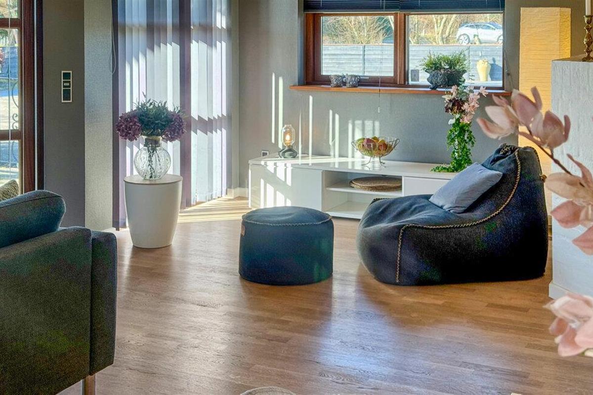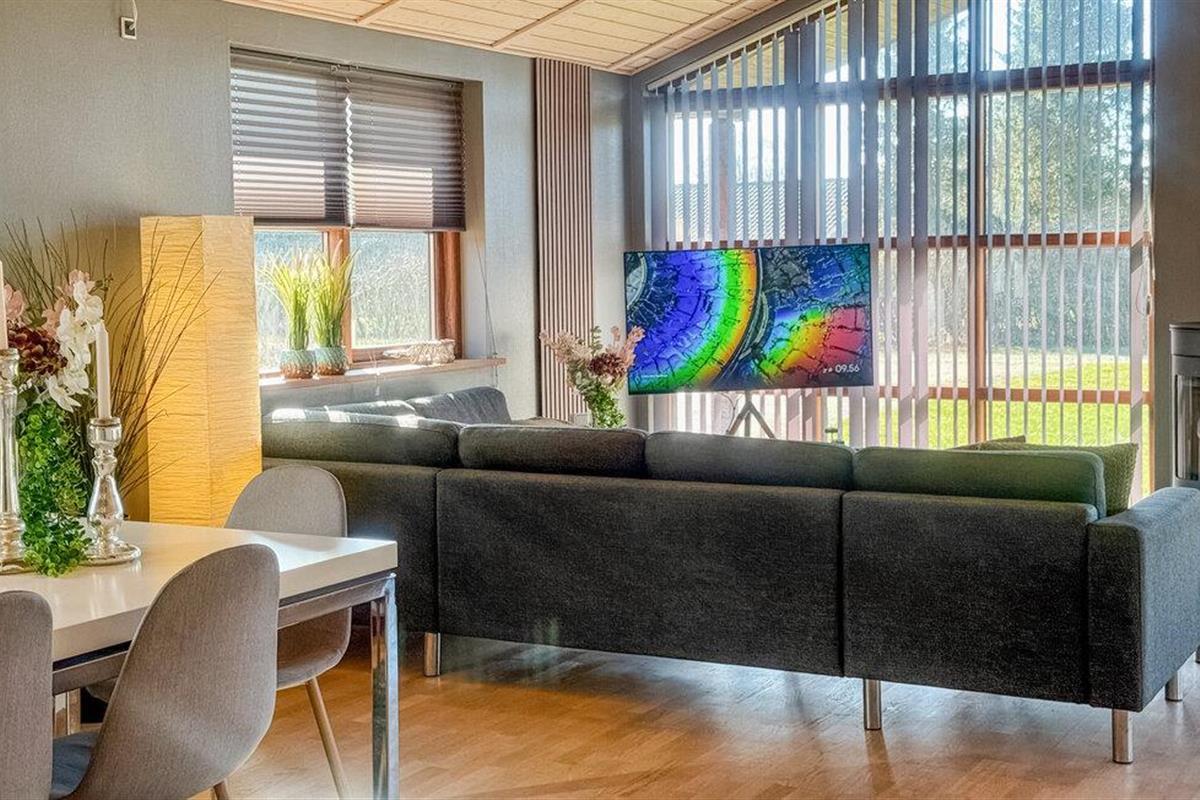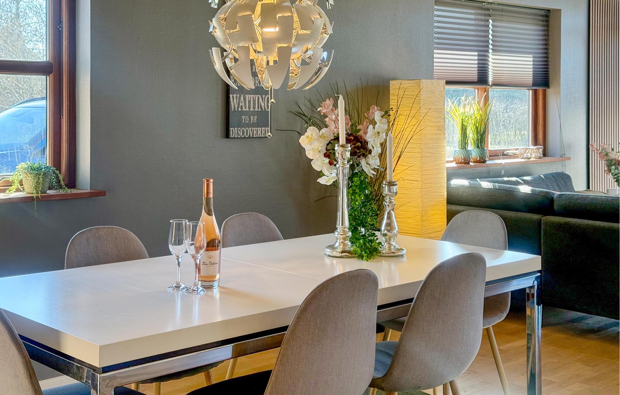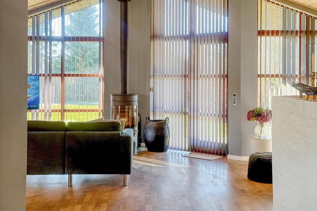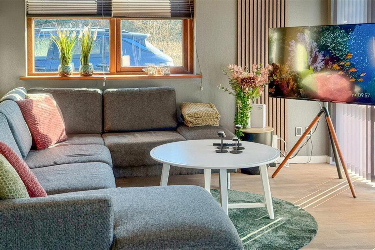 Beleef ontspannen dagen in je kwaliteitsvakantiewoning, die je Scandinavische gezelligheid op het hoogste niveau en tal van voorzieningen biedt. De stijlvolle inrichting, ruime kamers en het zonnige terras creëren een feel-good sfeer waarin je optimaal van je vakantie kunt genieten. Stap binnen in de lichte woonkamer met hoge plafonds en grote ramen. Maak het jezelf gemakkelijk op de gezellige bank en laat je blik dwalen over de groene omgeving. De houtkachel zorgt voor gezellige warmte op koelere dagen. Er is ruimte voor iedereen om samen te eten aan de eettafel, en de open keuken is uitgerust met hoogwaardige apparatuur zodat je gemakkelijk je favoriete gerechten kunt bereiden.