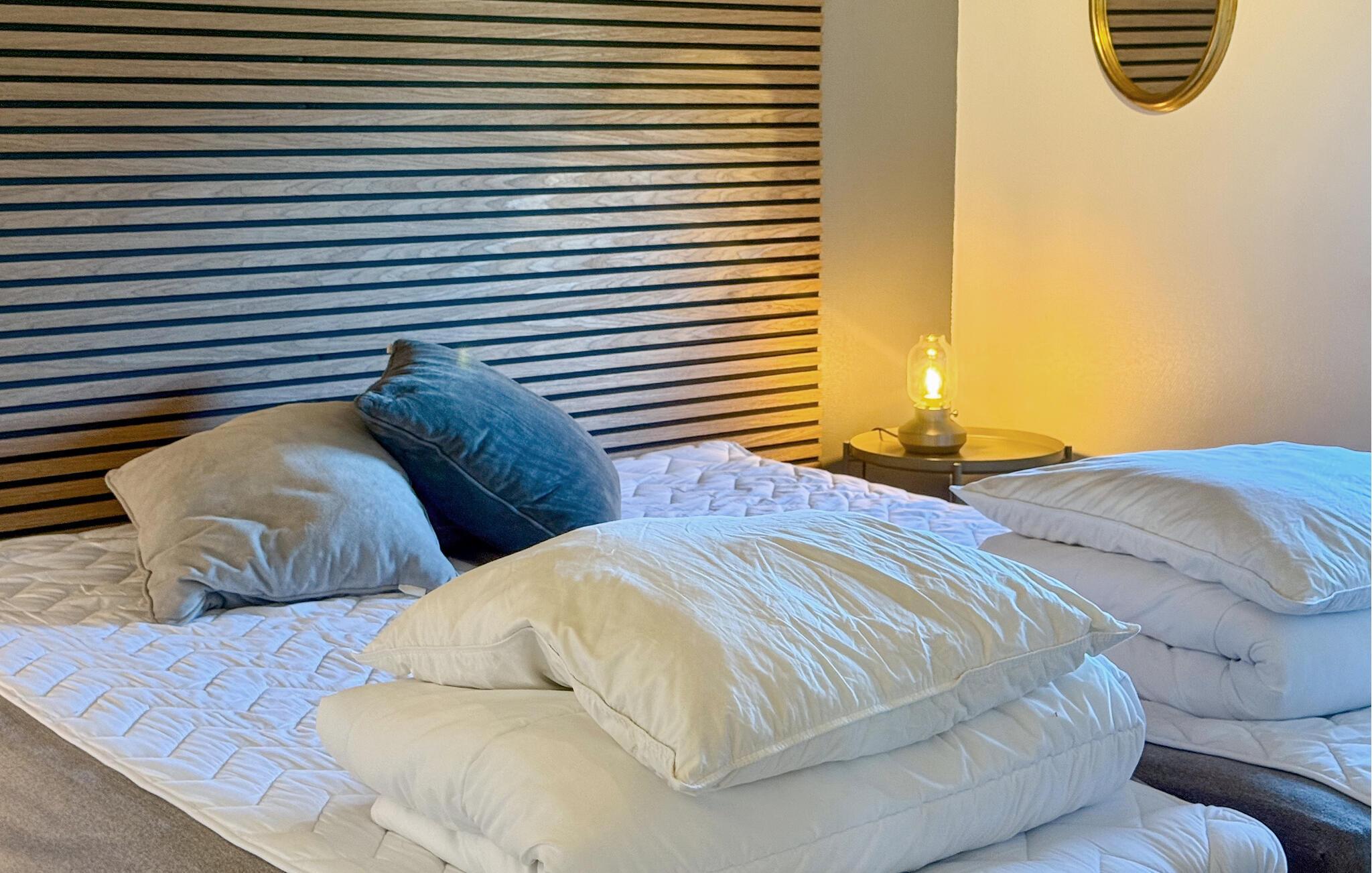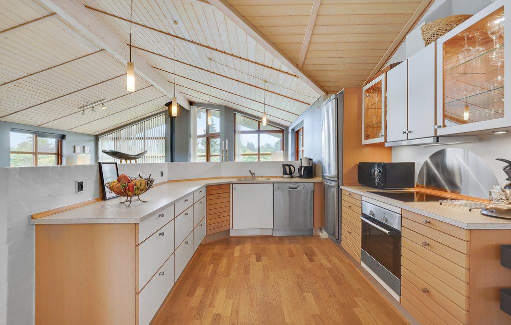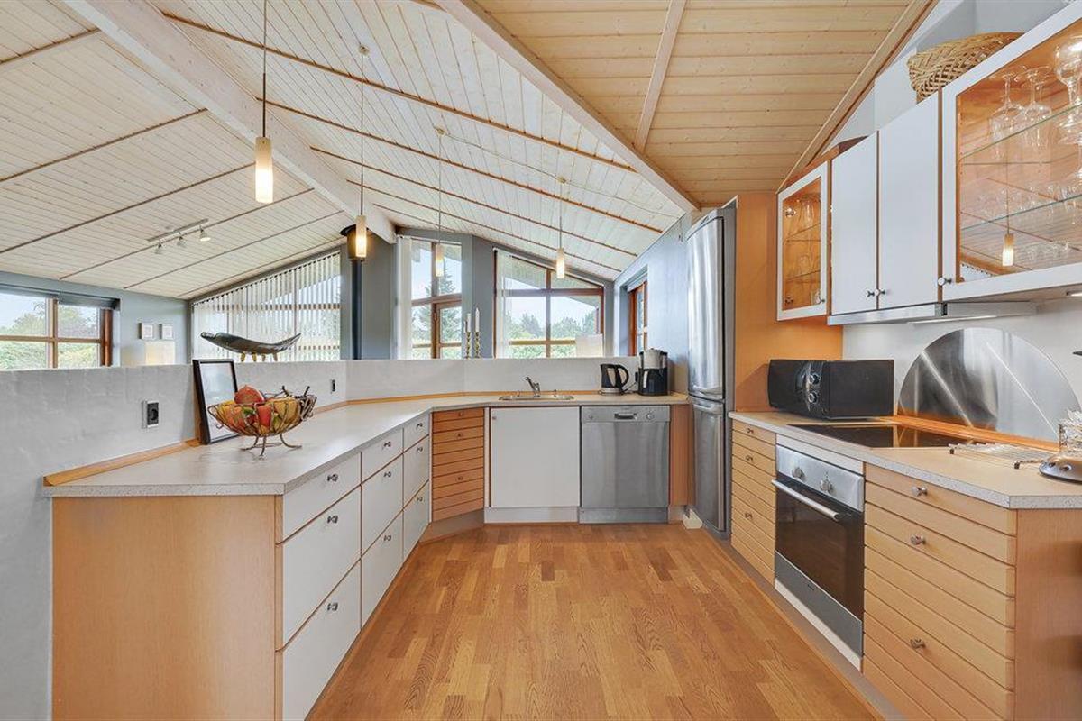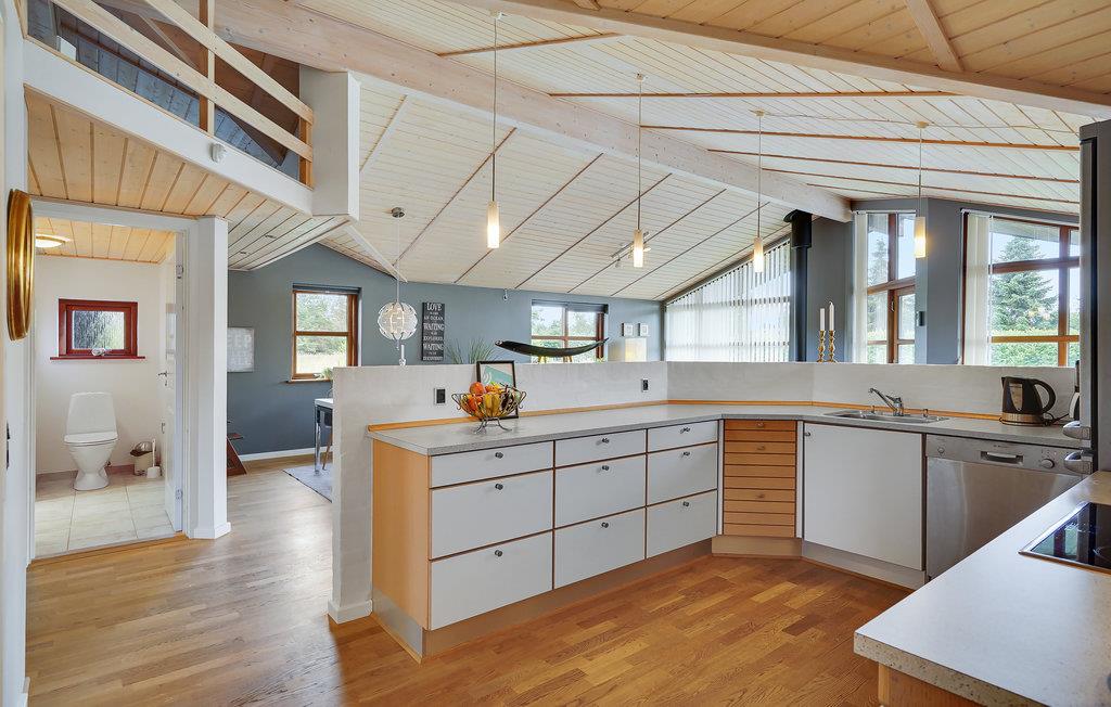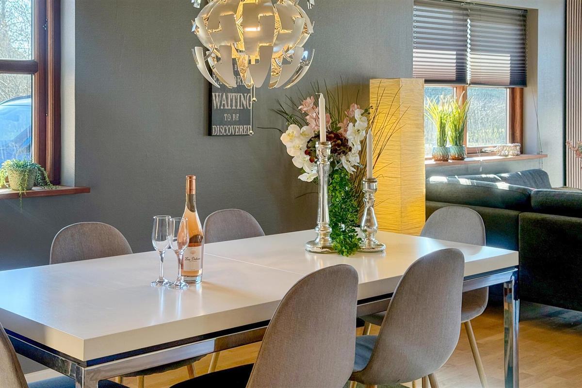 Beleef ontspannen dagen in je kwaliteitsvakantiewoning, die je Scandinavische gezelligheid op het hoogste niveau en tal van voorzieningen biedt. De stijlvolle inrichting, ruime kamers en het zonnige terras creëren een feel-good sfeer waarin je optimaal van je vakantie kunt genieten. Stap binnen in de lichte woonkamer met hoge plafonds en grote ramen. Maak het jezelf gemakkelijk op de gezellige bank en laat je blik dwalen over de groene omgeving. De houtkachel zorgt voor gezellige warmte op koelere dagen. Er is ruimte voor iedereen om samen te eten aan de eettafel, en de open keuken is uitgerust met hoogwaardige apparatuur zodat je gemakkelijk je favoriete gerechten kunt bereiden.