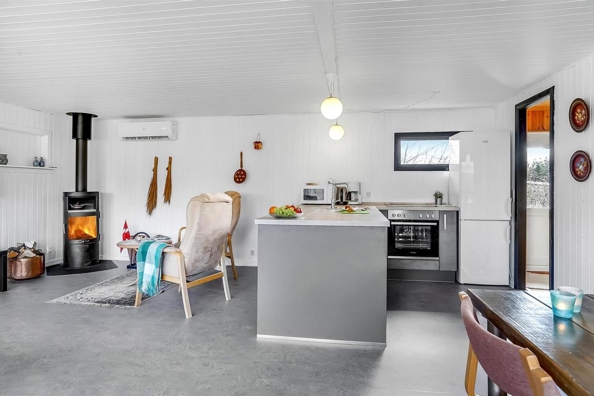 Je gezellige vakantiehuis ligt op een groot, open perceel met gazon tussen de plaatsen Hou en Hals. Het interieur van het huis is warm, uitnodigend en smaakvol met comfortabele meubels en mooie kunst aan de muren, die samen een sfeer creëren waarin je heerlijk kunt ontspannen. Op koelere dagen kun je de open haard aansteken en genieten van de gezellige warmte en het zachte geknetter terwijl je tot laat in de avond een film kijkt of bordspelletjes speelt.