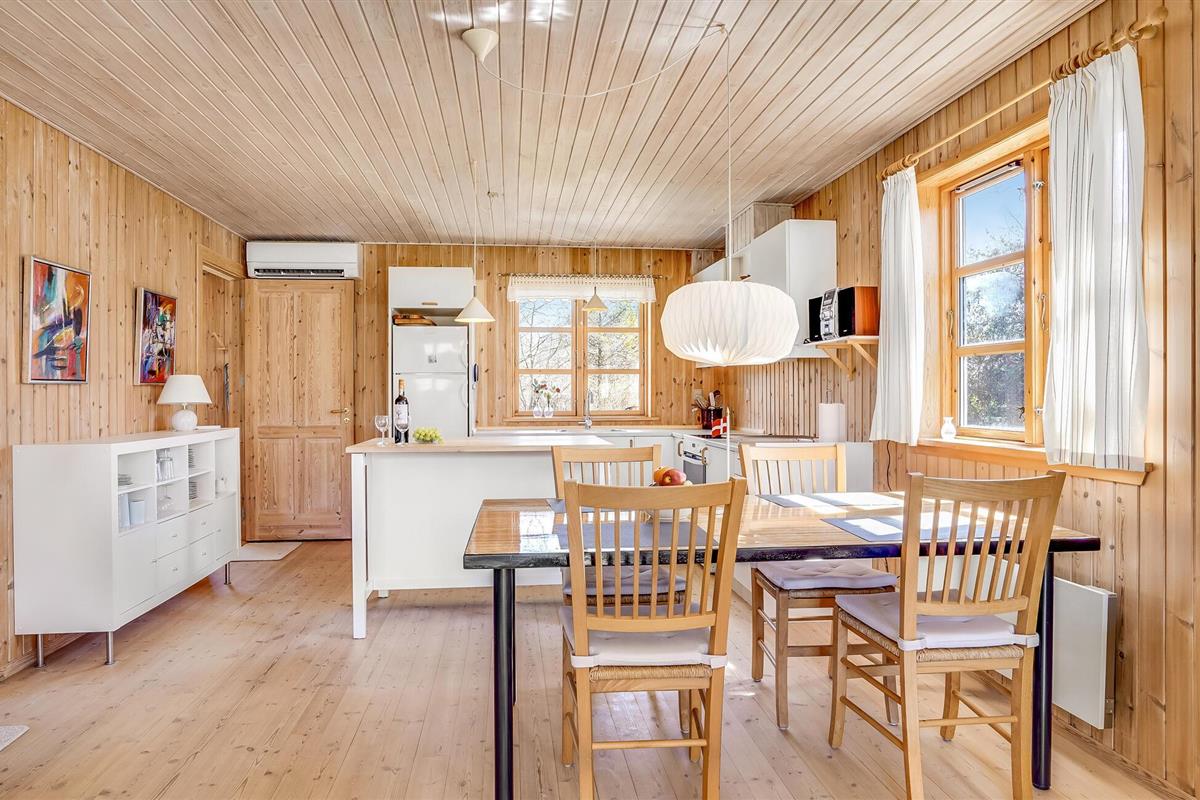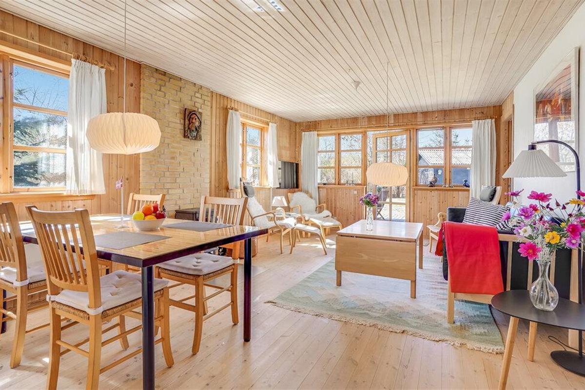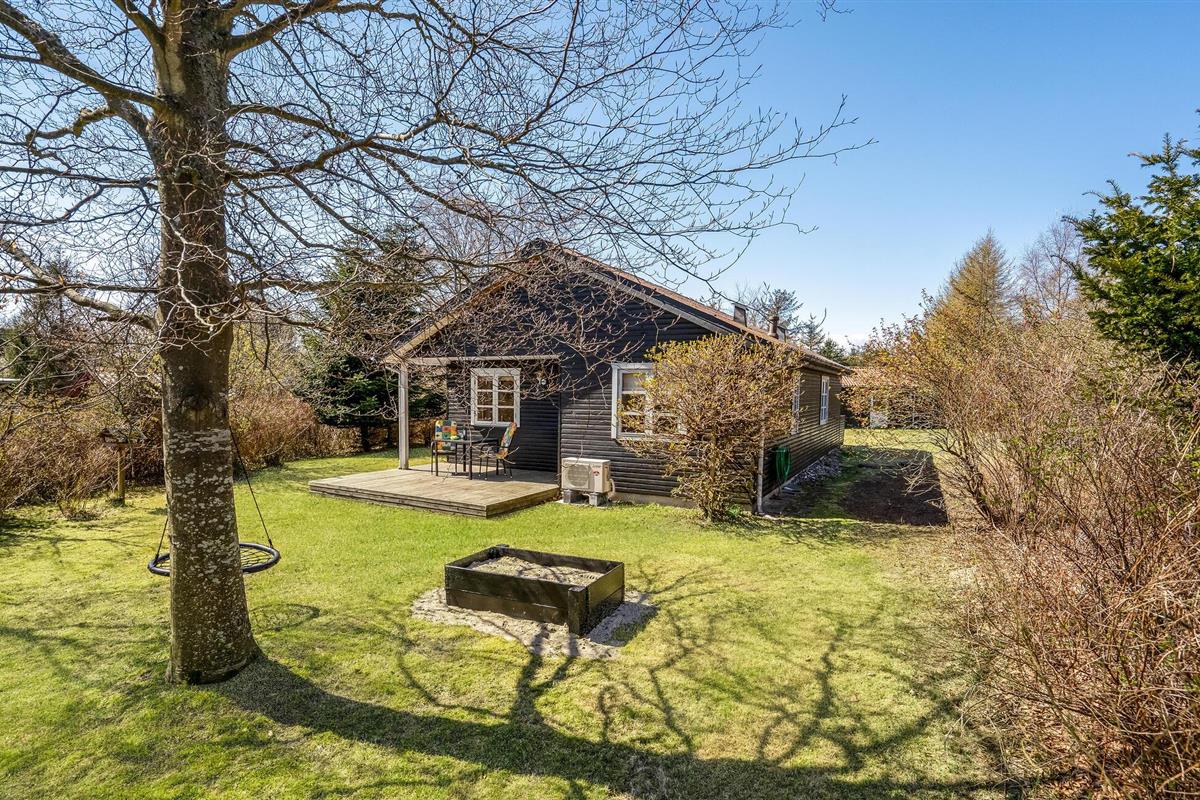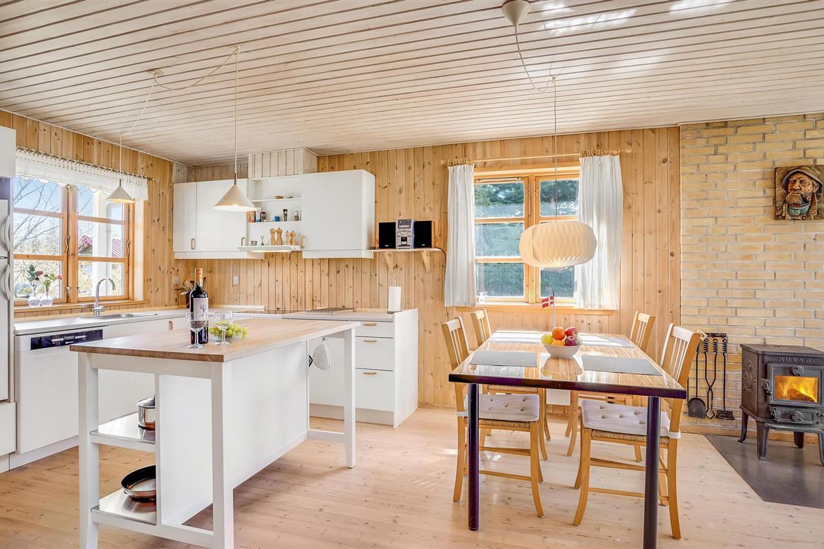 Gezellig vakantiehuis op natuurgrondstuk nabij Hals Strand, ideaal voor een rustige familievakantie met open keuken en terras.