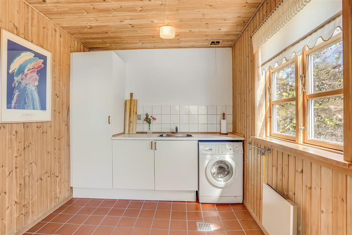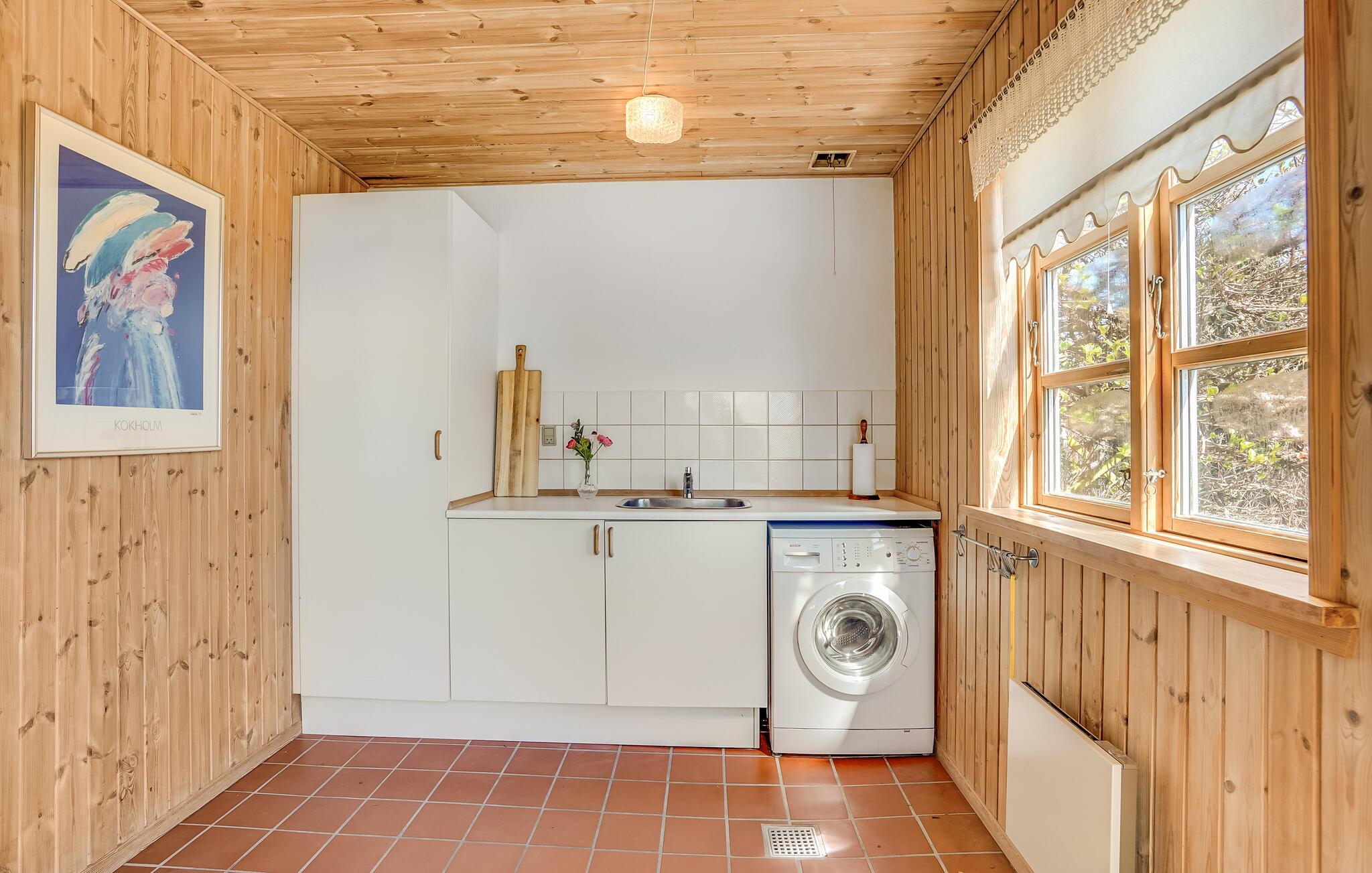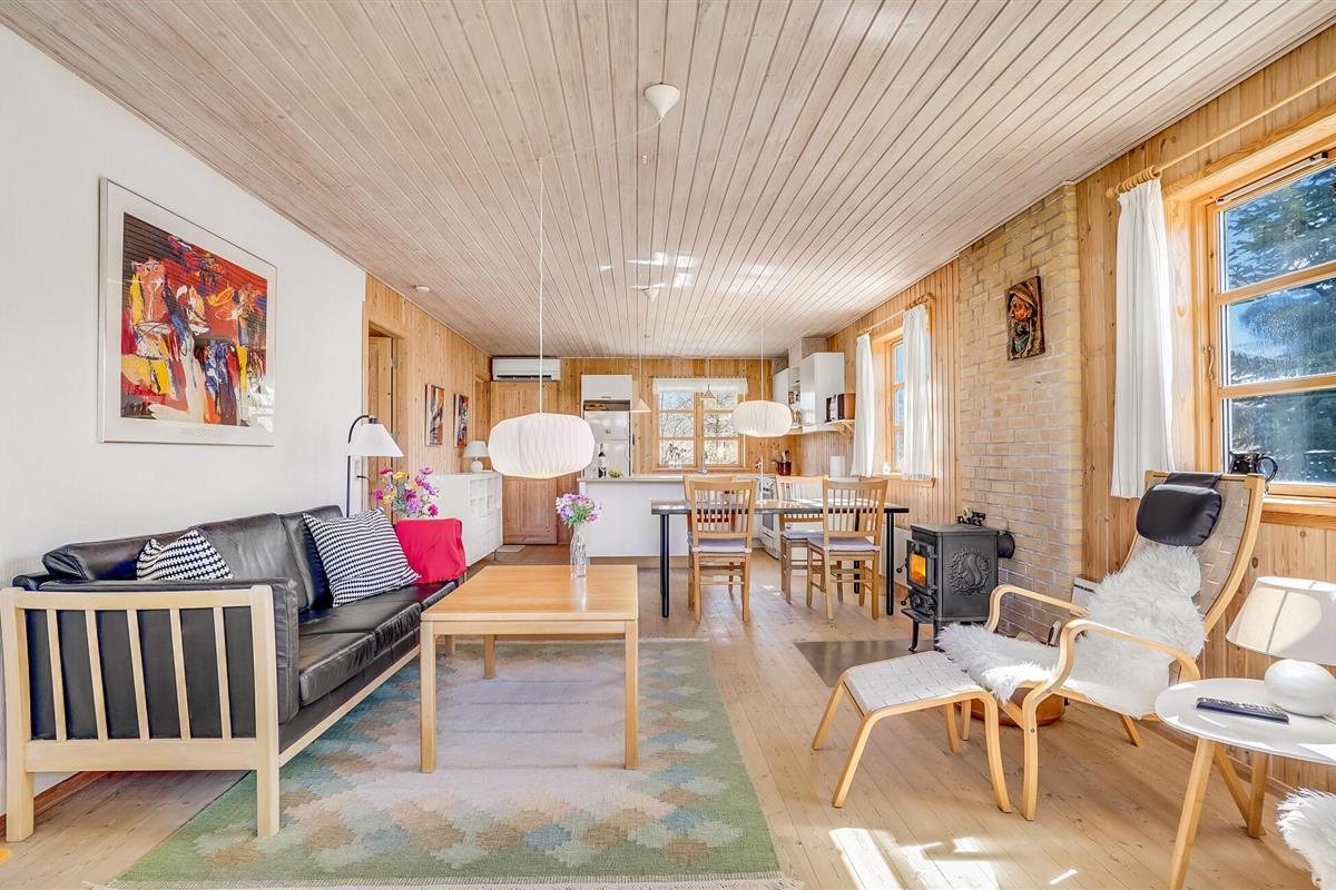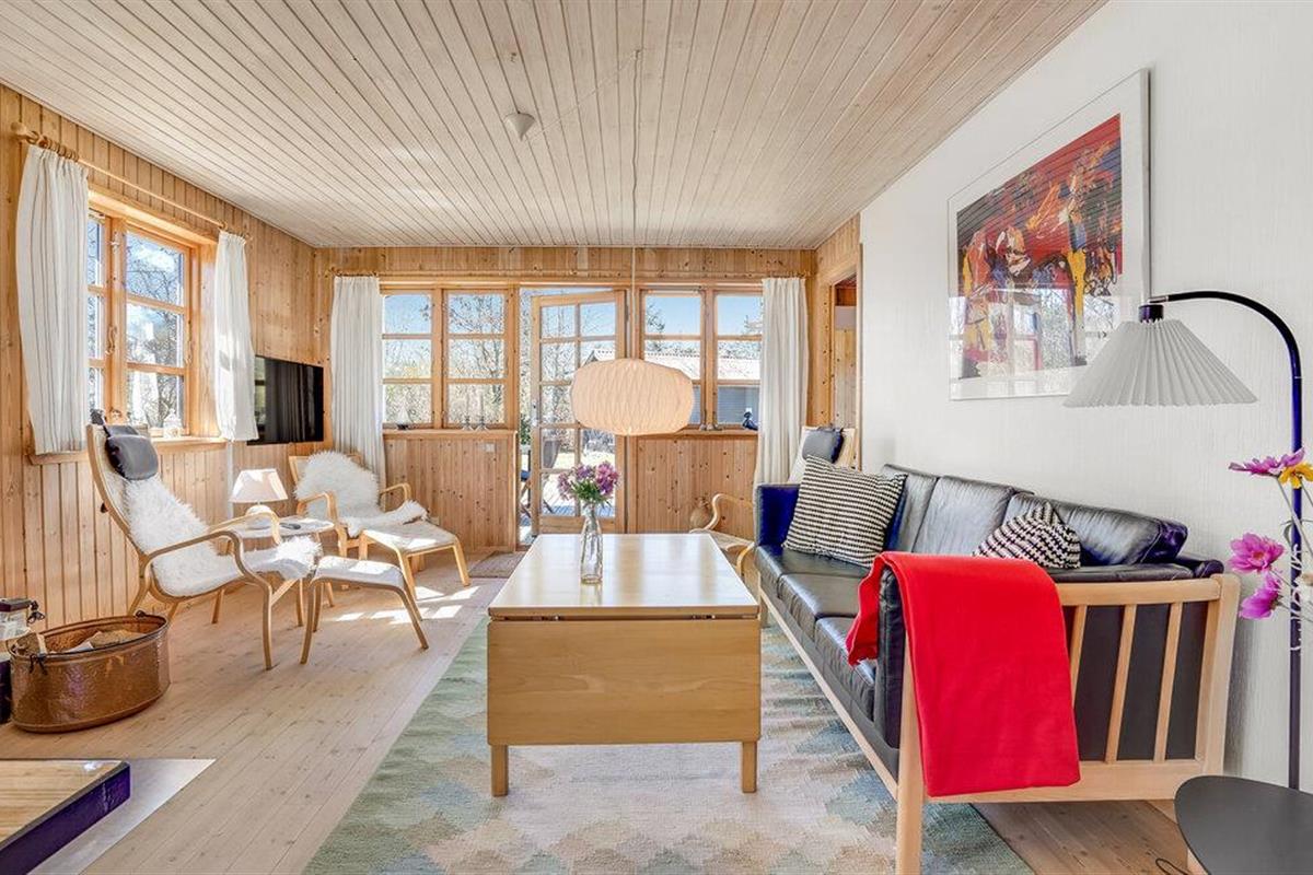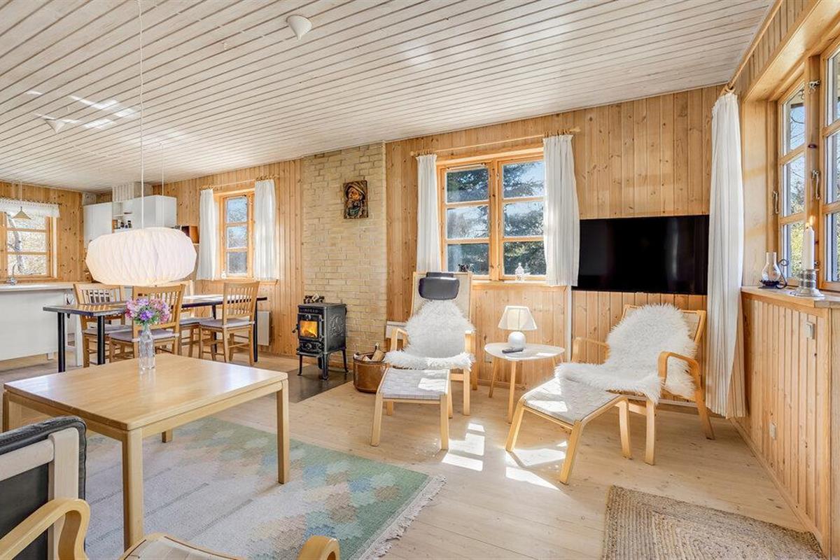 Gezellig vakantiehuis op natuurgrondstuk nabij Hals Strand, ideaal voor een rustige familievakantie met open keuken en terras.