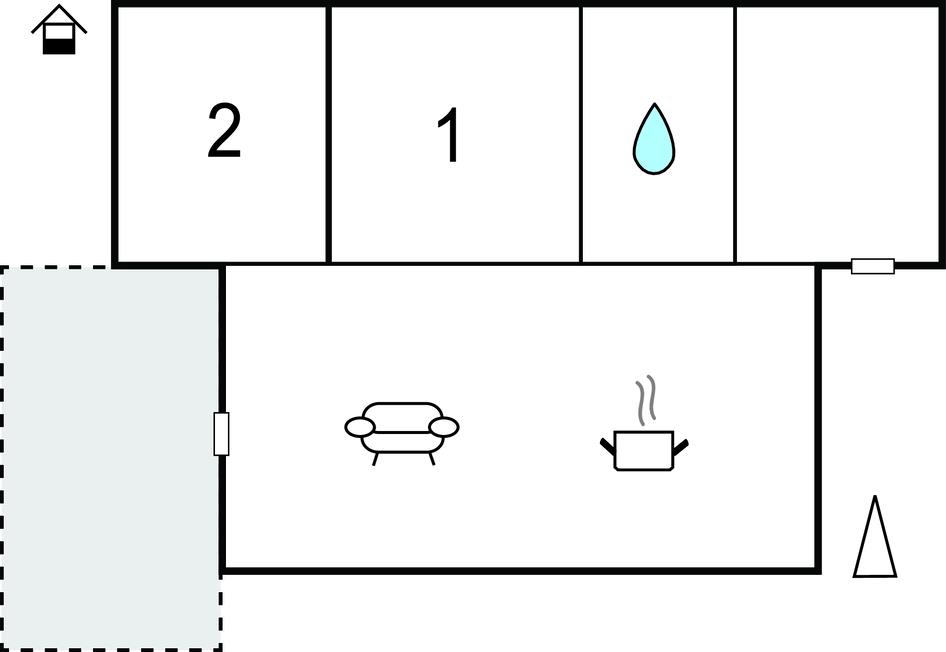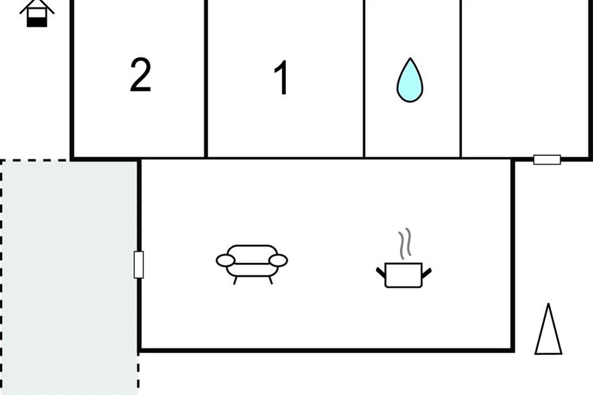 Dit vakantiehuis wacht op u op een natuurgrondstuk en biedt ideale omstandigheden voor een rustige vakantie met familie of vrienden. Het hart van het huis is het woongedeelte met sofahoek, eethoek en open keuken. Op koele dagen verspreidt de kachel hier een aangename warmte. U beschikt ook over 2 slaapkamers en een badkamer.
