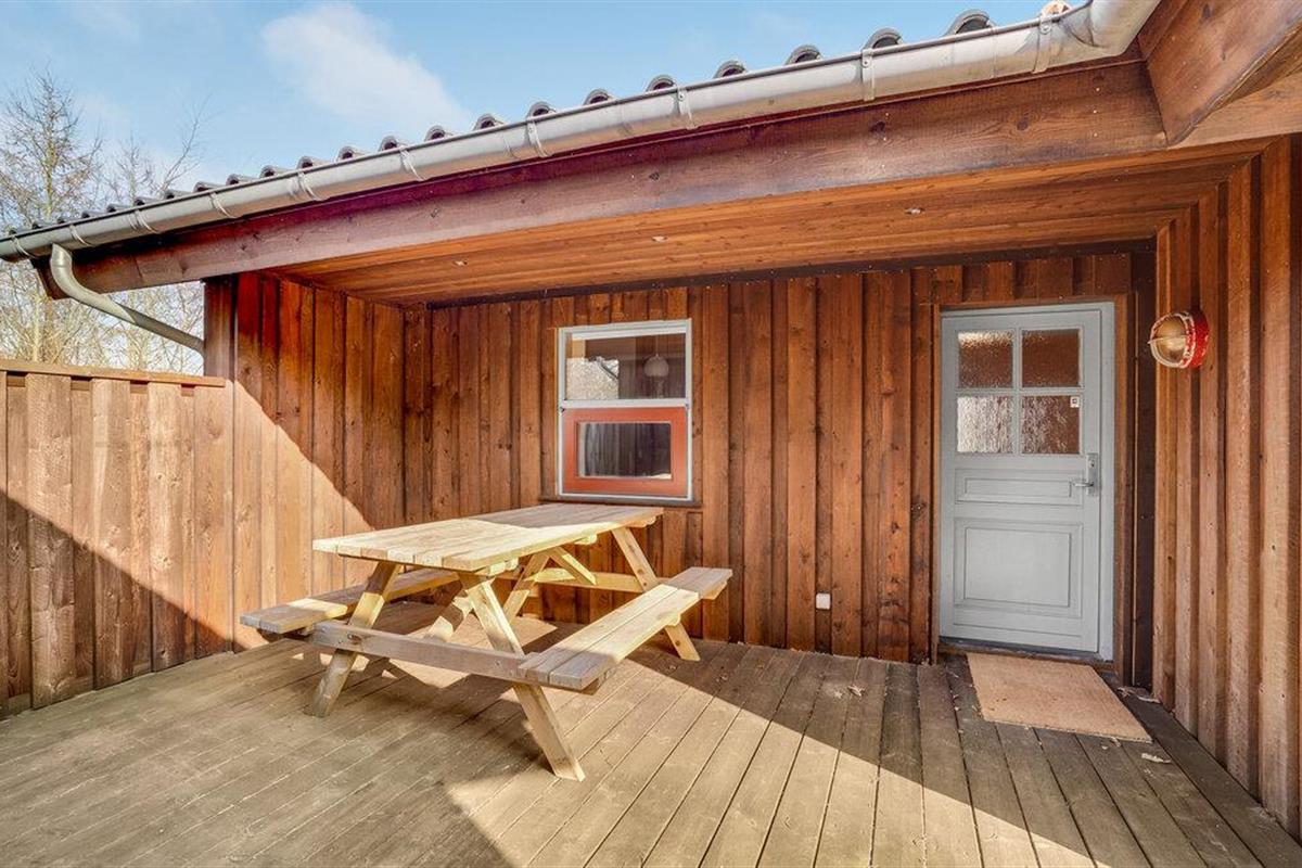 Dit huis is zeer natuurlijk ingericht met gezellige details, waarbij de verschillende materialen harmonieus samenwerken met het hout. Binnen kunt u zitten met een glas wijn in de gezellige warmte van de open haard, spannende gesprekken voeren of uw tijd investeren in een roman. Er is hier een aparte kamer met een bank waar u zich kunt terugtrekken om tv te kijken, terwijl het andere deel van de groep nog ongestoord kan praten in de woonkamer. Dit huis biedt u dus bijzonder veel ruimte en enkele plekken om u terug te trekken. Buiten is het terras met tuinmeubilair een ideale plek om samen te ontbijten, de eerste zonnestralen op te vangen en de dag ontspannen in het groen te beginnen.