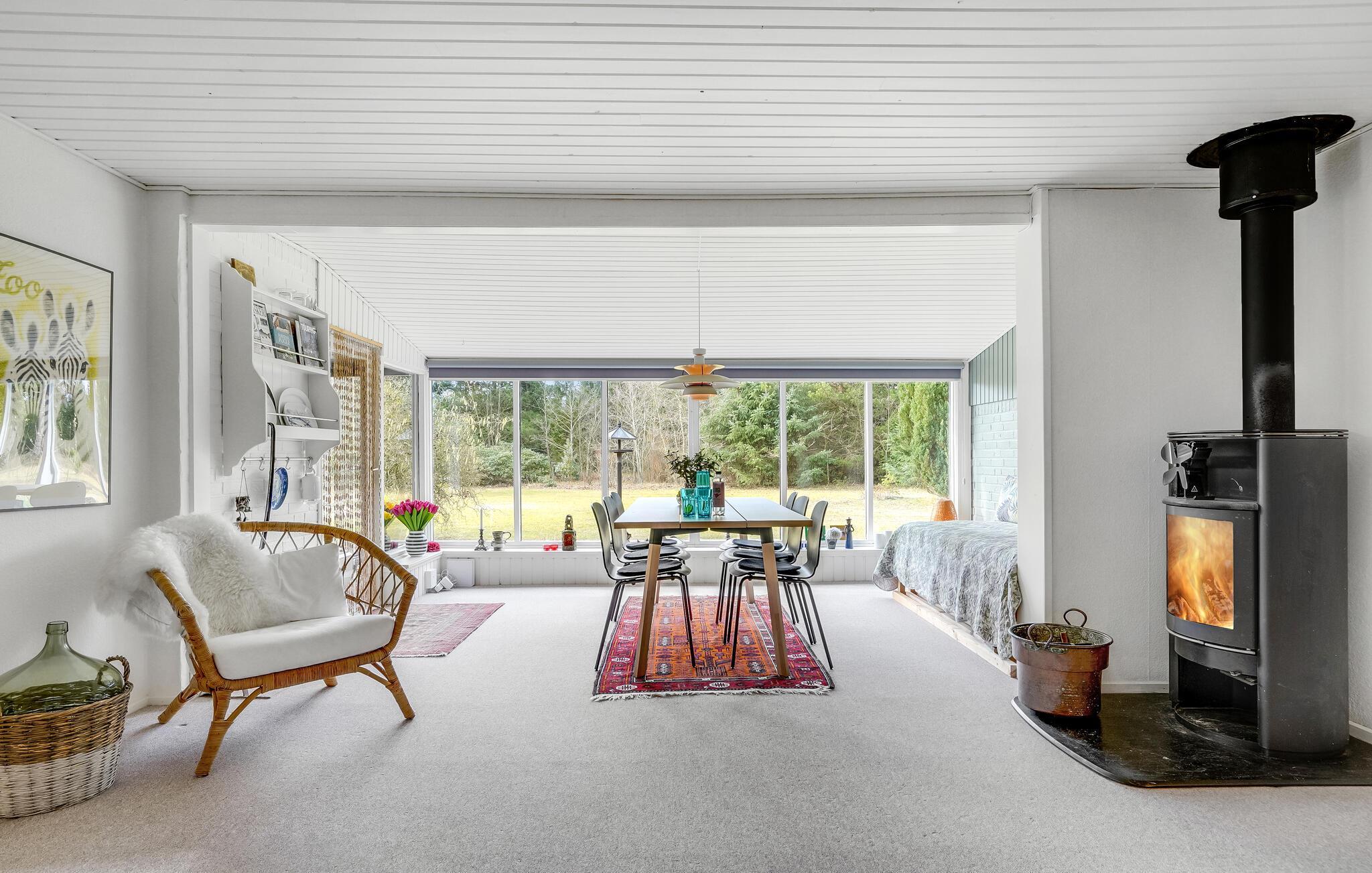 Hier vindt u een gezellige warmte dankzij de open haard en de comfortabele inrichting. Het is er bijzonder gezellig en comfortabel. Terwijl u geniet van spelletjesavonden, maaltijden of rustige leesuurtjes samen in het huis, is ook de weg naar buiten de moeite waard: het strand is niet ver weg en lokt met inspirerende uitzichten naar de horizon, watersporten, zwemmen of lange wandelingen, bijvoorbeeld naar de haven van Hals.