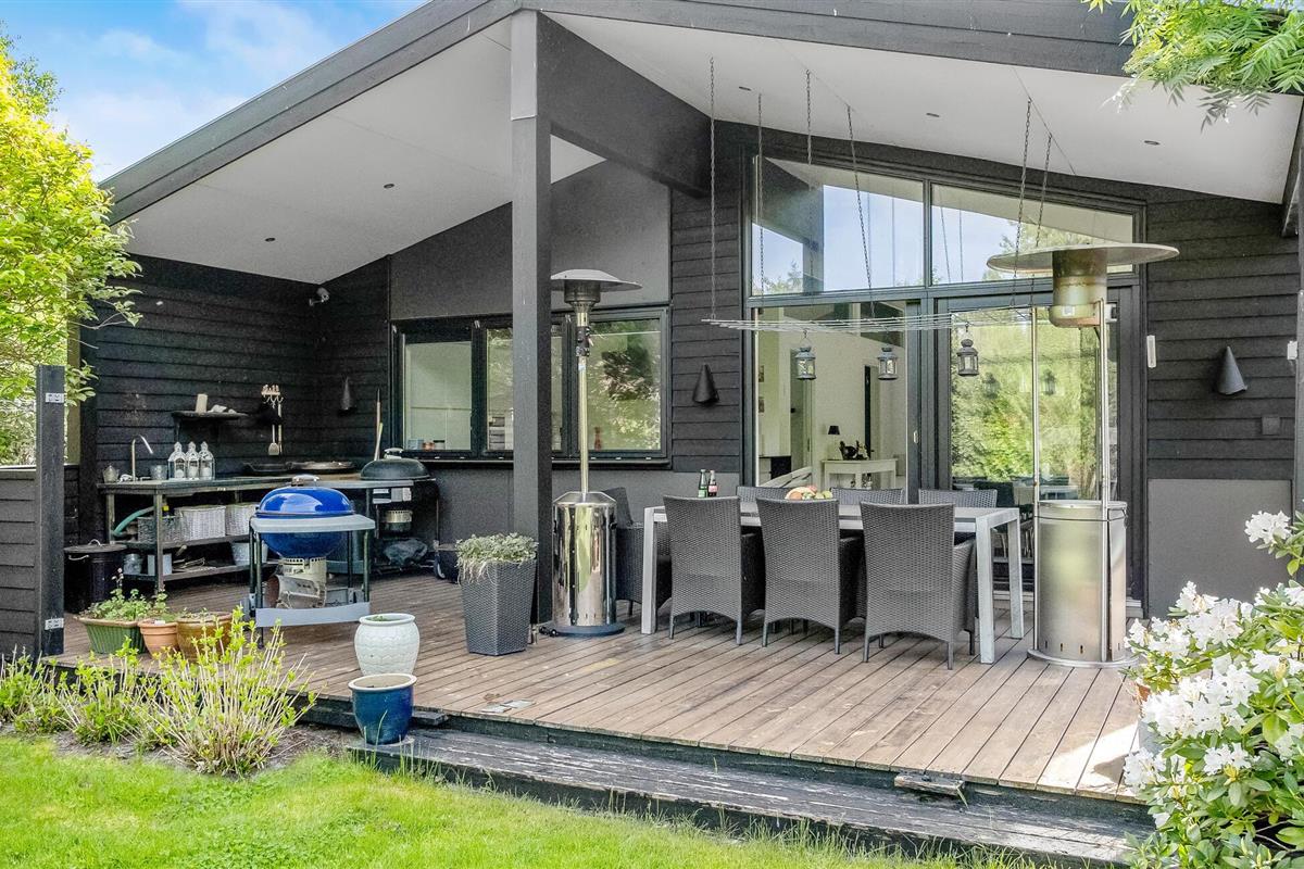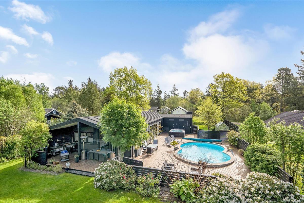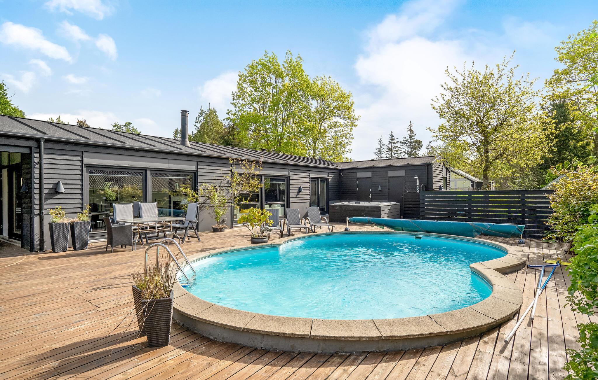 Stijlvol vakantiehuis in Hals met privézwembad, sauna en moderne inrichting voor een ontspannen verblijf aan zee.