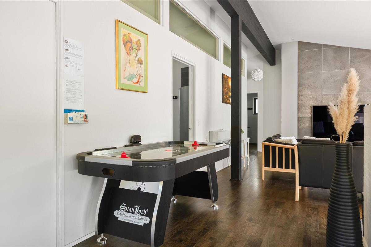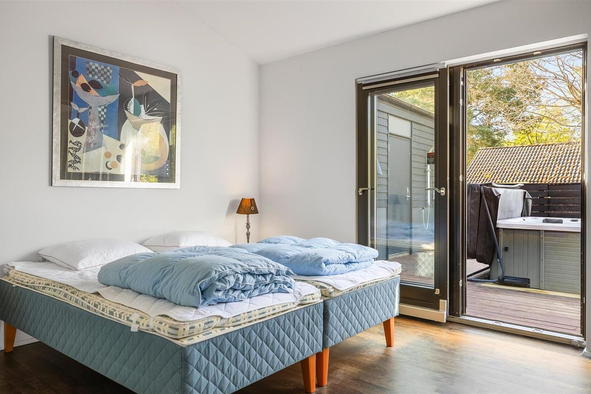 Het strand ligt op slechts 1 kilometer afstand, waar je kunt wandelen, zwemmen of vliegeren. In de richting van de stad Hals kun je ook de dichtstbijzijnde vis- en winkelfaciliteiten bereiken, evenals een minigolfbaan, een indoor pad of een tennisbaan. De milde kust verwelkomt alle gasten die hier willen genieten van het strandleven, waar het Kattegat zich van zijn vriendelijkste kant laat zien. Het gebied bij Hals en Hou is ideaal voor kinderen van alle leeftijden om te genieten van het 8 kilometer lange witte zandstrand zonder verkeer. Het heuvelachtige landschap met zijn prachtige bossen nodigt uit tot verfrissende wandelingen en in de gezellige haventjes van Hals en Hou kun je met een Deens Gammeldaws ijsje in de hand kijken naar de voorbijvarende schepen die af en aan varen.