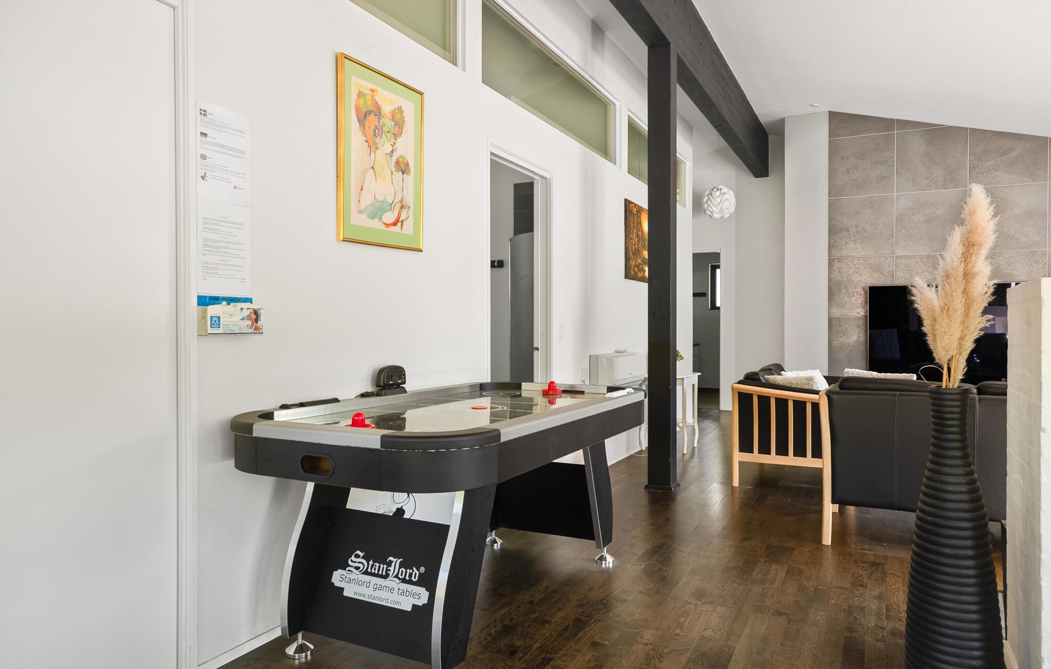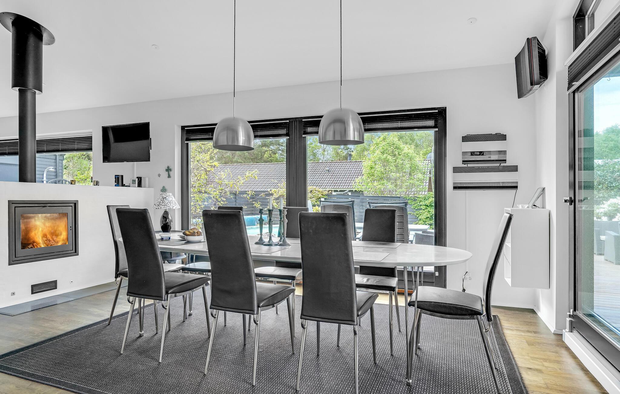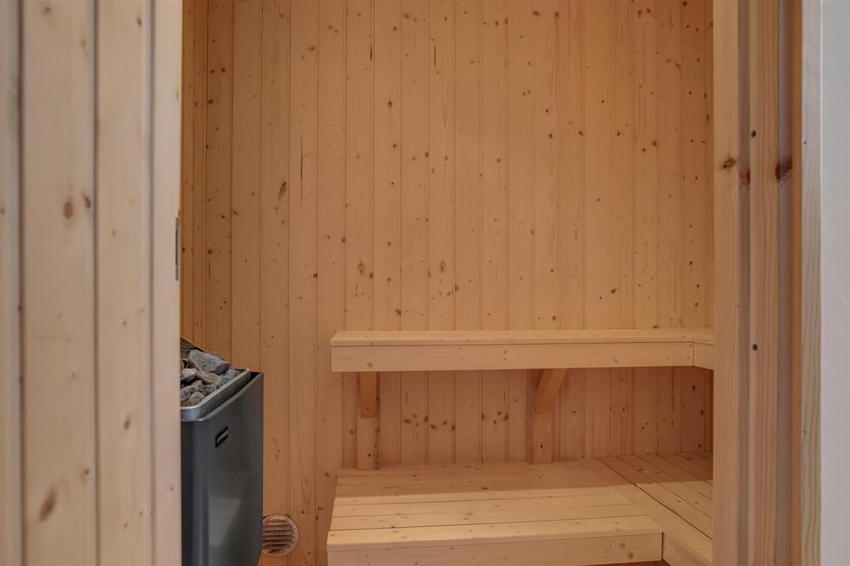 Stap binnen in een modern en elegant vakantiehuis met stijlvolle meubels. Hier kun je gezellig bij de verwarmende open haard zitten of met een glas wijn in de woonkamer. Dankzij de grote ramen komt er ongelooflijk veel licht binnen, wat de vriendelijke flair versterkt. Het open, gedeeltelijk overdekte terras met tuinmeubilair en barbecue is de perfecte plek om te genieten van een barbecue of een heerlijk ontbijt. Je kunt ook afkoelen in het buitenzwembad en ontspannen in de sauna. Het zwembad wordt verwarmd door de zon en heeft meestal dezelfde temperatuur als het zeewater.