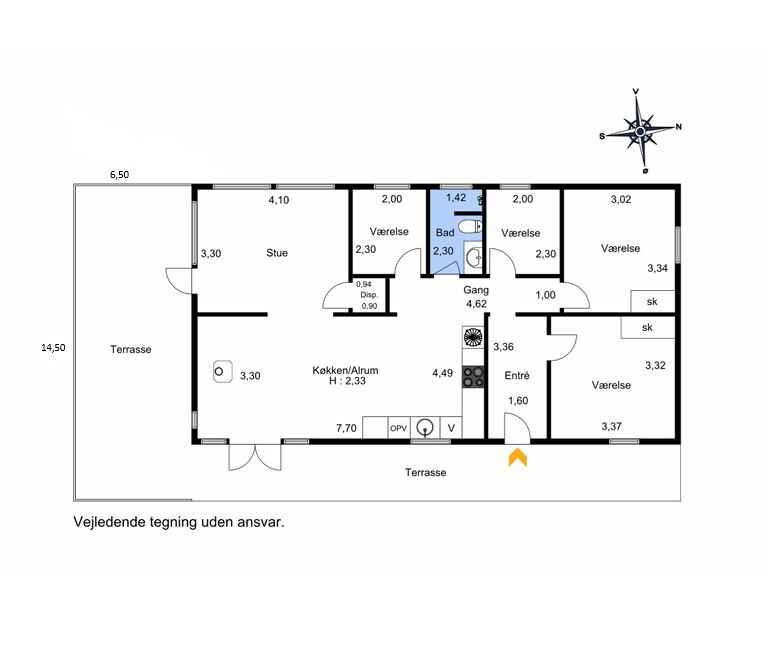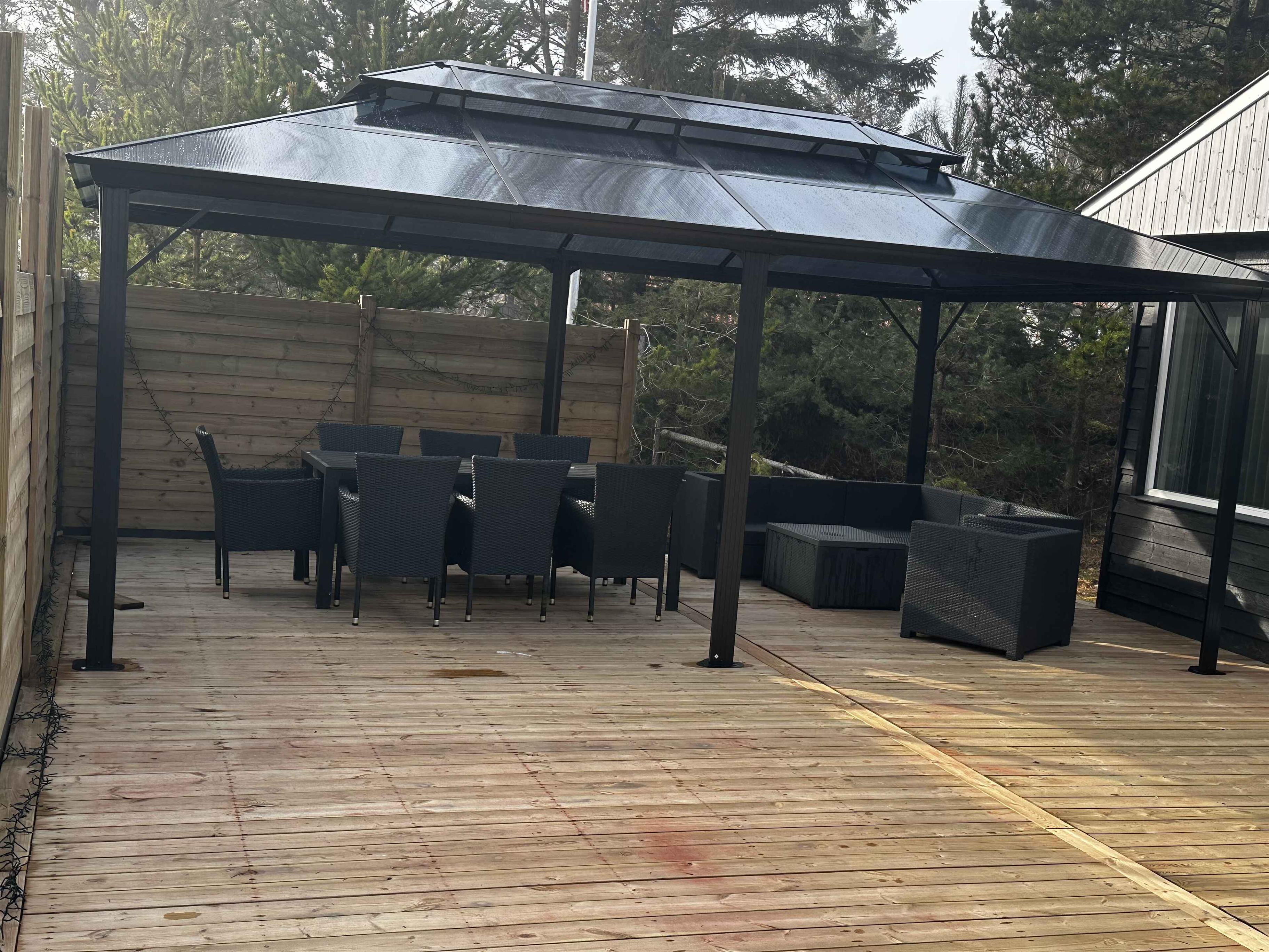 Het zomerhuis is stijlvol ingericht en heeft een werkelijk gezellige sfeer. Ook het grote, zonnige houten terras is minstens zo aantrekkelijk. Met andere woorden: het is heerlijk om zowel binnen als buiten te verblijven – en het gør bestemt heller ikke noget, dat der kun er 500 meter til Kattegat og de prachtige kustlijn. Indeling: Binnen is het licht en uitnodigend, en je merkt duidelijk dat er veel aandacht is besteed aan het creëren van een gezellige en sfeervolle indretning. De vier slaapkamers zijn allemaal uitgerust met een tweepersoonsbed, og 2 af dem har tv met Chromecast. De woonkamer en keuken liggen in open verbinding. Her er brændeovn og varmepumpe til kølige dage en avonden, og hvis jullie zin hebben i en god film eller lidt underholdning, står der et tv med Chromecast i sofahjørnet. Kortom: zeer aangename rammer for ferielivet. Buiten: Op het 1.493 m² grote natuurperceel is het ook heerlijk vertoeven – vooral op het terras dat langs twee zijden van het zomerhuis loopt. Aan de oostkant is er zeezicht, og mod syd er terrassen afskærmet af et hegn, så man kan færdes ugeneret. Ligstoelen, tuinmeubilair en een barbecue staan klaar, så het jullie aan niets ontbreekt. Daarnaast is er mulighed for afslapning i de wilderness-spa eller om marshmallows te roosteren bij de vuurplaats. I garage findes forskellige aktiviteter, som I kan hygge jer med. Ligging: Vanaf het terras kun je de zee zien. Het duurt ongeveer vijf minuten om naar het einde af vejen te gå, og derfra kan I fortsætte ad små stier til stranden, hvor jullie uitkijken over het Kattegat. De stranden in dit gebied zijn bekend om hun kindvriendelijke, ondiepe water, zodat ook de jongste familieleden veilig kunnen pootjebaden en zwemmen. Krijgen jullie zin in een wandeling, dan kunnen jullie langs de kust naar de gezellige jachthaven van Hou. I Hou kan I forkæle jer selv med en groot ijsje ved vandet eller en dejlige lunch på een van de eetgelegenheden. 250 meter fra huset ligger Lagunen, met visvijver, waterpark, speeltuin en café – en in de zomer ook een rommelmarkt. De dichtstbijzijnde supermarkt ligt 4 km verderop. Let op: Niet te huur voor commercieel gebruik.
