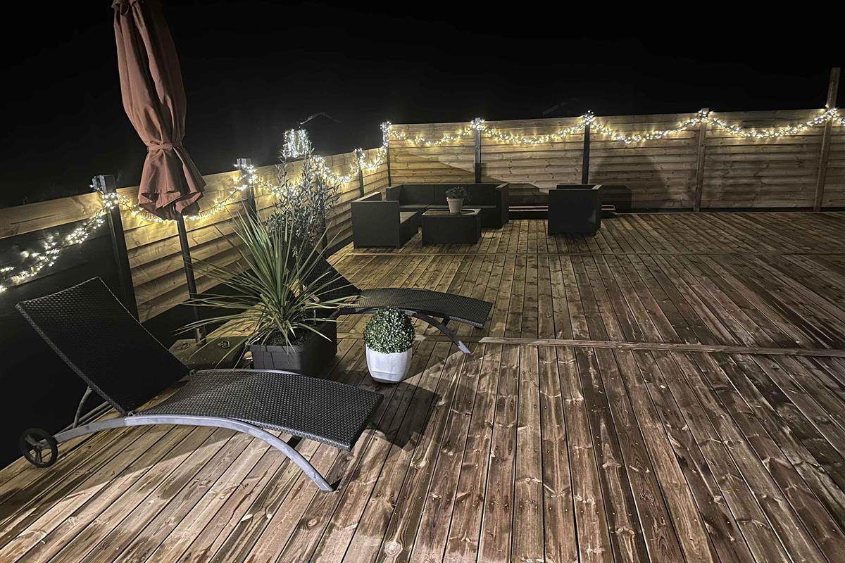 Licht en goed ingericht zomerhuis met een groot zonnig terras, slechts 500 meter van het strand.