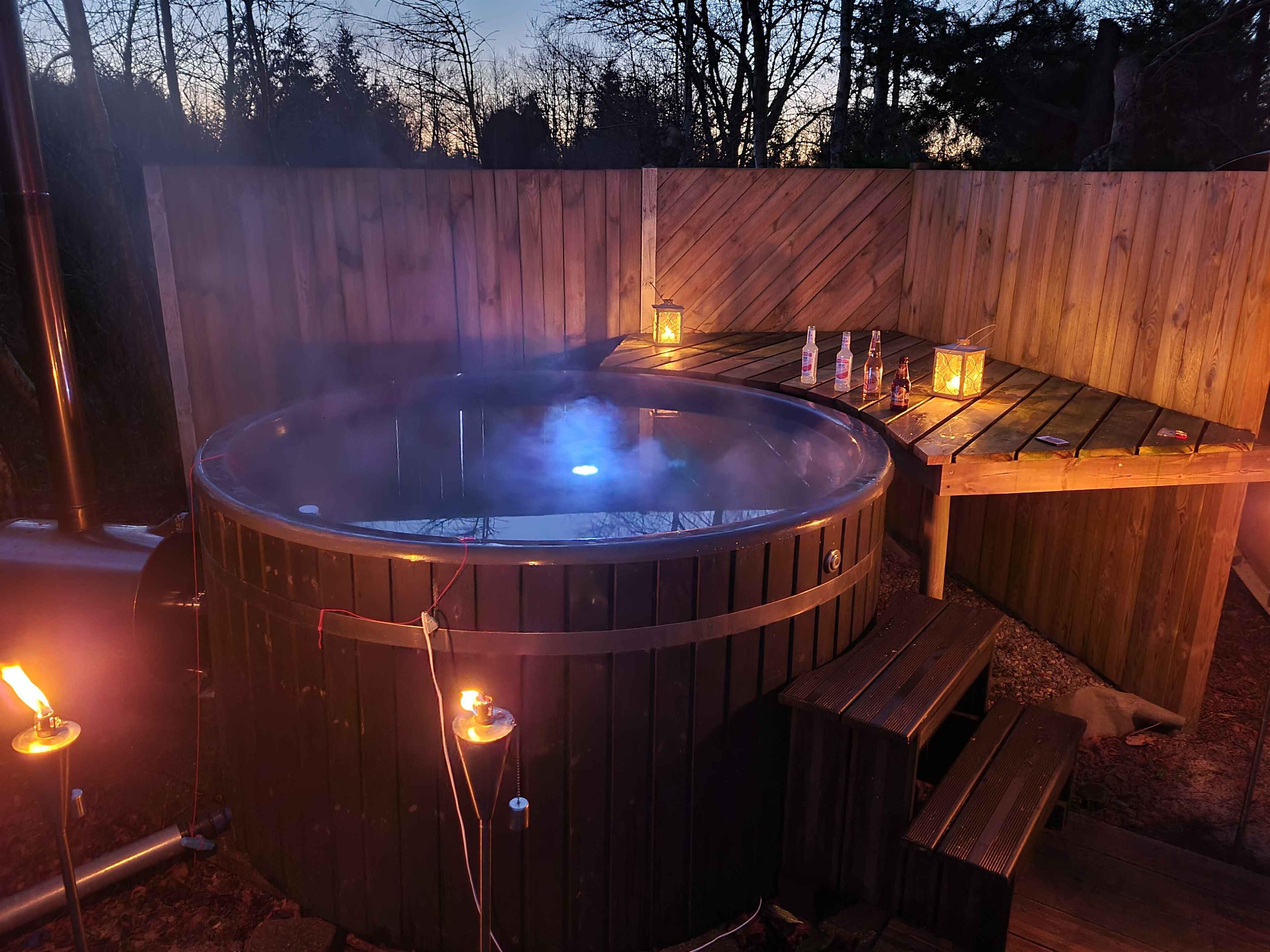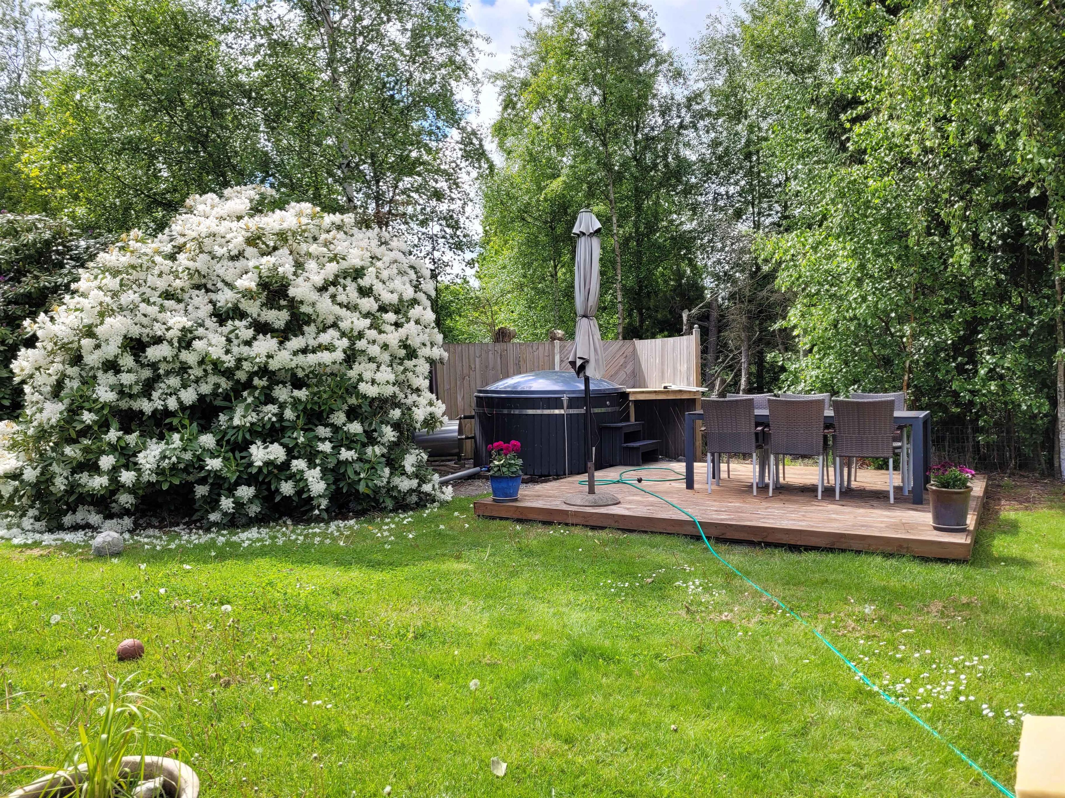 Beleef pure idylle in dit prachtige, moderne vakantiehuis in het Noord-Jutse paradijs Hals. Met een indrukwekkende oppervlakte van 122 m2 kunt u luxe en comfort verwachten, terwijl de uitnodigende, ongestoorde tuin een oase van rust creëert. Een perfecte combinatie van nabijheid van het stadsleven en de verfrissende zee ?? Stap binnen in een heerlijk lichte cottage die uitnodigt tot ontspanning met een bubbelbad en ruimte voor maar liefst 8 personen - 6 in het hoofdgebouw en nog eens 2 in het charmante bijgebouw dat de weelderige tuin siert. Uitgerust met airconditioning, een houtkachel, zonneverwarming en een efficiënte pelletkachel voor vloerverwarming tijdens de koelere periodes is comfort gegarandeerd, ongeacht het weer buiten. Binnen biedt de woning twee royale slaapkamers, waar bedden van 90 cm prachtig tegen elkaar aan staan ??voor een goede nachtrust. Voor de allerkleinsten is er een avontuurlijke stapelbedkamer. Laat u verwennen in de grote badkamer met een luxe spa en een ruime douchecabine die garant staat voor verfrissing. Creëer herinneringen in de ruime keuken/eetkamer, waar alle benodigde faciliteiten aanwezig zijn. Ook het entertainment is top met een 55" smart tv en Chromecast, evenals razendsnel glasvezelnetwerk van 1000/1000 mbit. Praktische bijkeuken met zowel wasmachine als droger voor uw gemak. Het bijgebouw, dat zich uitstrekt over 22 m2, biedt extra ruimte en privacy met zacht tapijt, twee bedden van 90 cm en een apart toilet. De buitenruimte is een droom op zich, met de weelderige, ommuurde tuin. Geniet van een groot wildernisbad op brandhout, een heerlijk terras en zelfs een handige buitendouche. Met een royale gasbarbecue en bijpassende gasfles om te lenen, wordt buiten koken een koud kunstje. De kinderen zullen dol zijn op de trampoline, schommels en zandbak, evenals een verscheidenheid aan buitenspeelgoed dat garant staat voor een glimlach en een lach. Het hek van de tuin maakt het mogelijk om een ??kleine of middelgrote hond mee te nemen - de perfecte setting voor een complete familie-ervaring. Let op: Niet te huur voor commercieel gebruik.