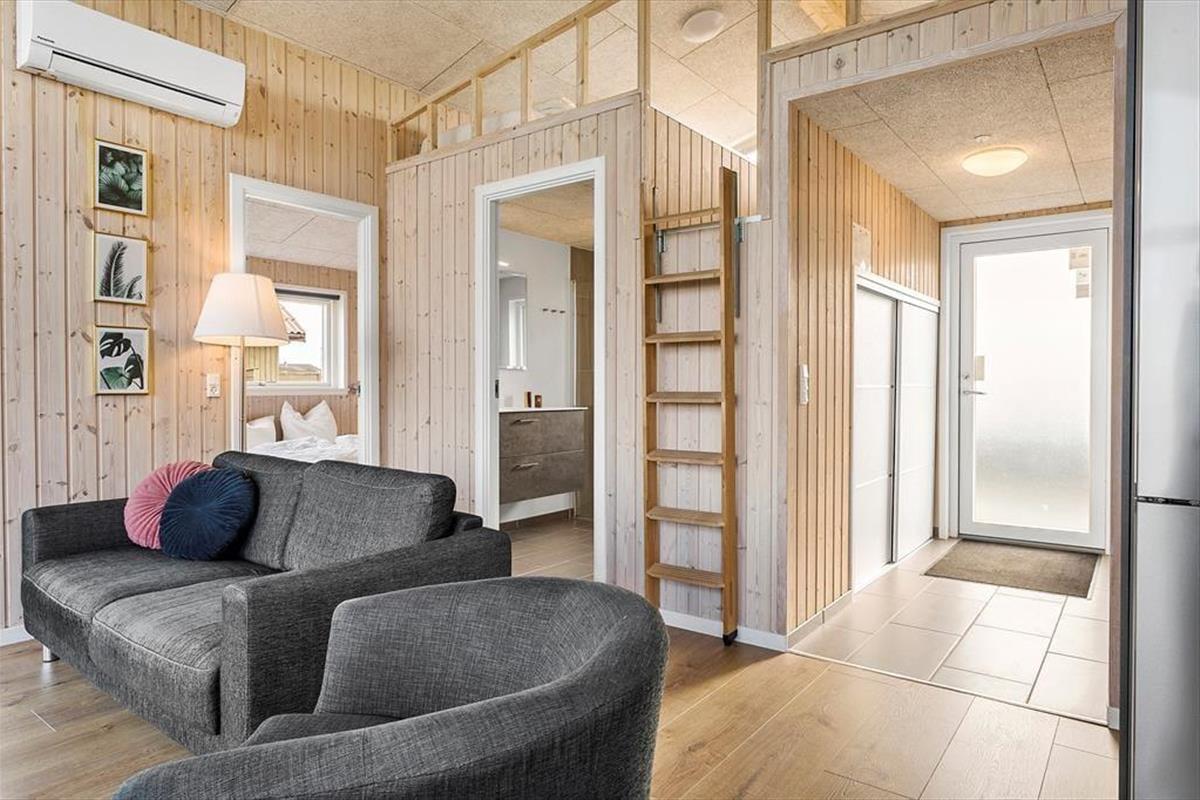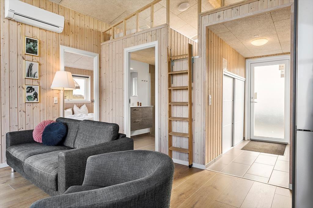 Hinter der stilreinen Fassade begrüßen dich helle und einladende Räumlichkeiten. Dein Ferienhaus aus dem Jahr 2021 bietet alles, was deine Familie dafür braucht, um sich vom ersten Moment an heimisch und wohl zu fühlen - von Akustikdecken über große Fensterpartien bis hin zu einer modernen Möblierung. In der Polstersitzgruppe und am Esstisch werdet ihr mit einem bezaubernden Ausblick auf den Fjord verwöhnt. Selbst einer der beiden Schlafräume glänzt mit einer hübschen Aussicht auf die Wellen und die dahinziehenden Wolken. Vom Wohnraum gelangst du über eine steile Leiter hinauf auf den Schlafboden, der weitere Schlafplätze bietet. Insgesamt beherbergt dieses attraktive Urlaubsdomizil bis zu sechs Personen.
