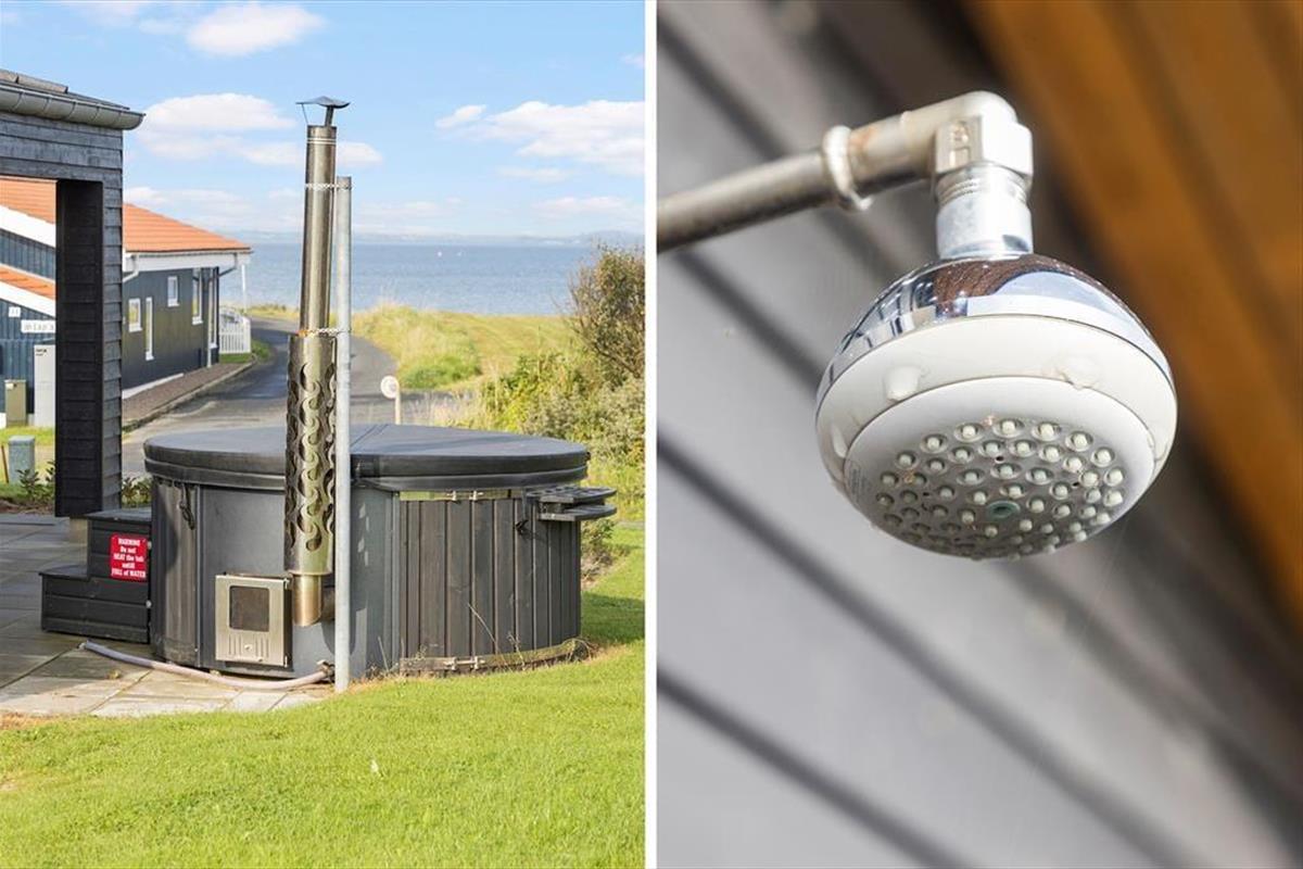Auf den Terrassen deines Ferienhauses genießt du die Sonne und das dänische Sommerwetter in vollen Zügen. Da dich lediglich 100 Meter vom Ufer trennen, bietet es sich an, hin und wieder hinunter ans Wasser zu spazieren und dort eine herrliche Abkühlung zu genießen. Nach deinem Abstecher an den Strand spült dir die hauseigene Außendusche den Sand von der Haut. Falls du dich aufwärmen oder komplett entspannen möchtest, empfehlen wir dir ein Bad im der Schwedischen Badetonne. Hier erwarten dich traumhaft erholsame Momente voller Wellnessflair - selbst an einem kühlen Herbsttag oder an stimmungsvollen Sommerabenden, wenn die Sonne längst untergegangen ist.