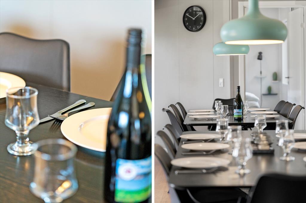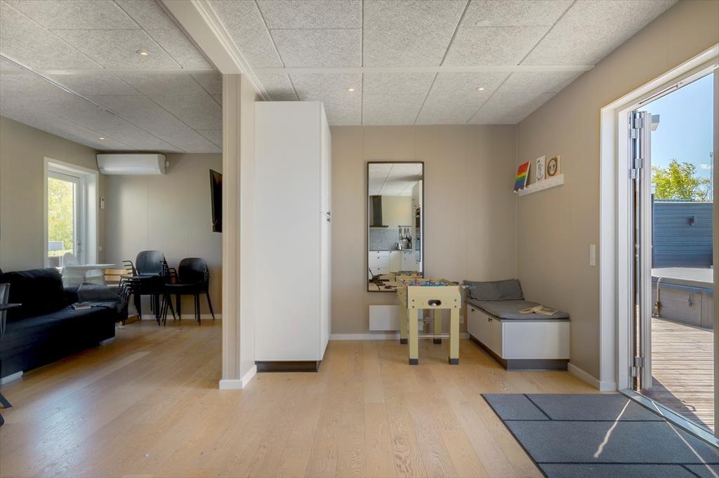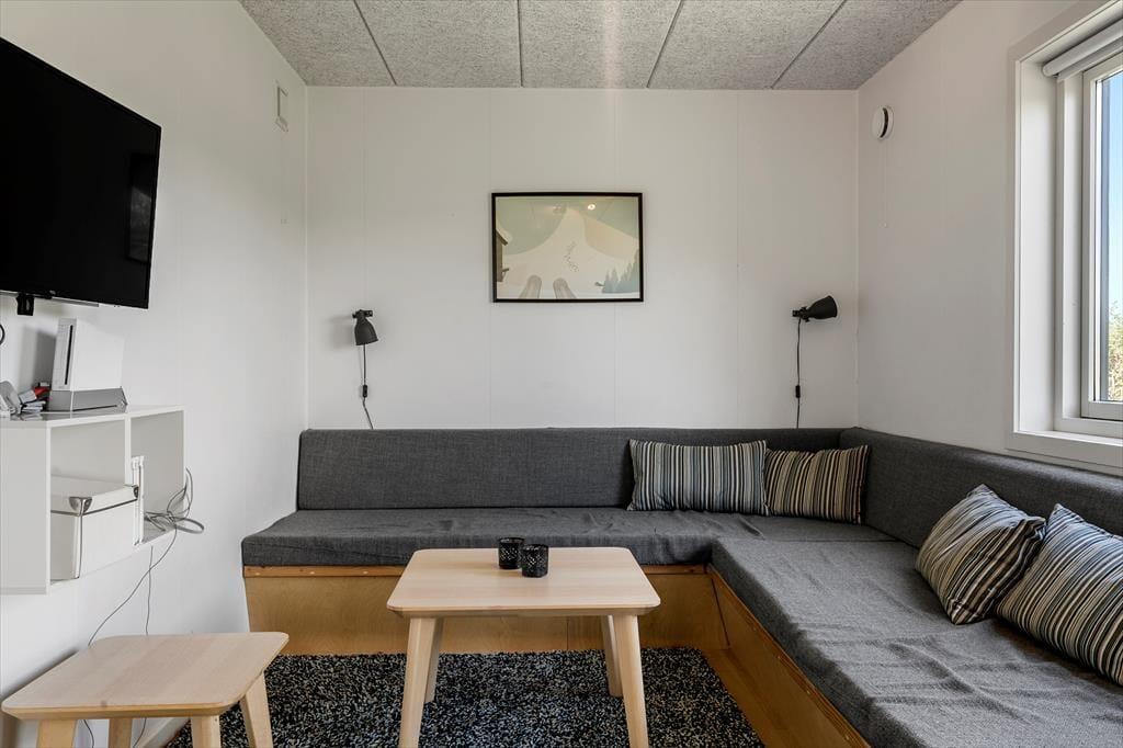 Beim Betreten dieses hellen und modernen Ferienhauses fühlt es sich an, als würde man einen Ort betreten, an dem jedes Detail auf Gemütlichkeit und gemeinsames Beisammensein ausgelegt ist. Die Einrichtung ist stilvoll und schlicht mit Fokus auf Komfort – das gesamte Haus strahlt eine entspannte Sommeratmosphäre aus, die zum Abschalten und Genießen einlädt. Große Fensterfronten sorgen für ein wunderbares Lichtspiel und verbinden Innenraum und Natur auf harmonische Weise. Die offene Küche und das Wohnzimmer machen es leicht, zusammen zu sein – egal, ob jemand das Abendessen vorbereitet oder sich mit einem Glas Wein auf dem Sofa entspannt. Wenn du dich nach etwas zusätzlicher Entspannung sehnst, heize die Sauna auf und lass die Wärme die Verspannungen des Alltags lösen – und vielleicht springst du danach schnell in den Fjord oder genießt eine Tasse Tee in warmen Socken und einem Bademantel.