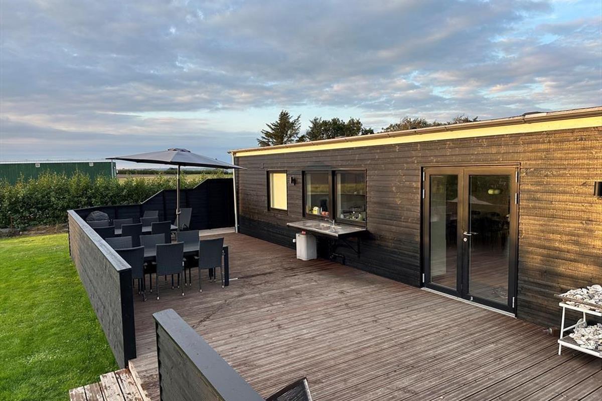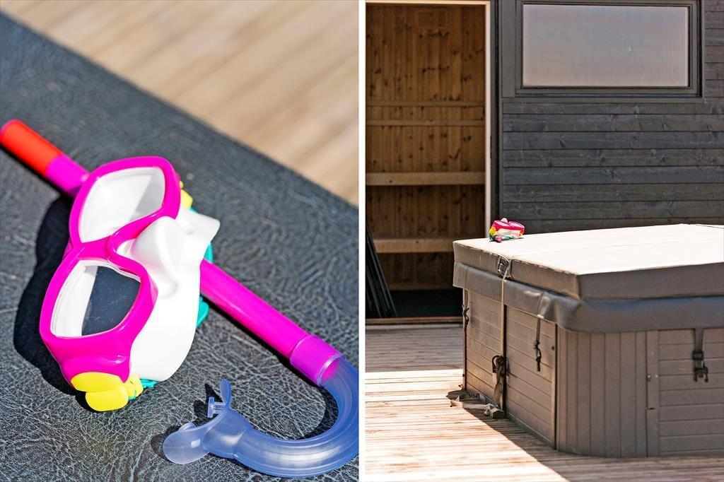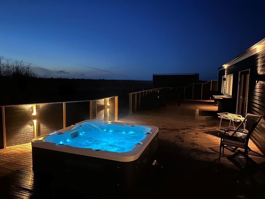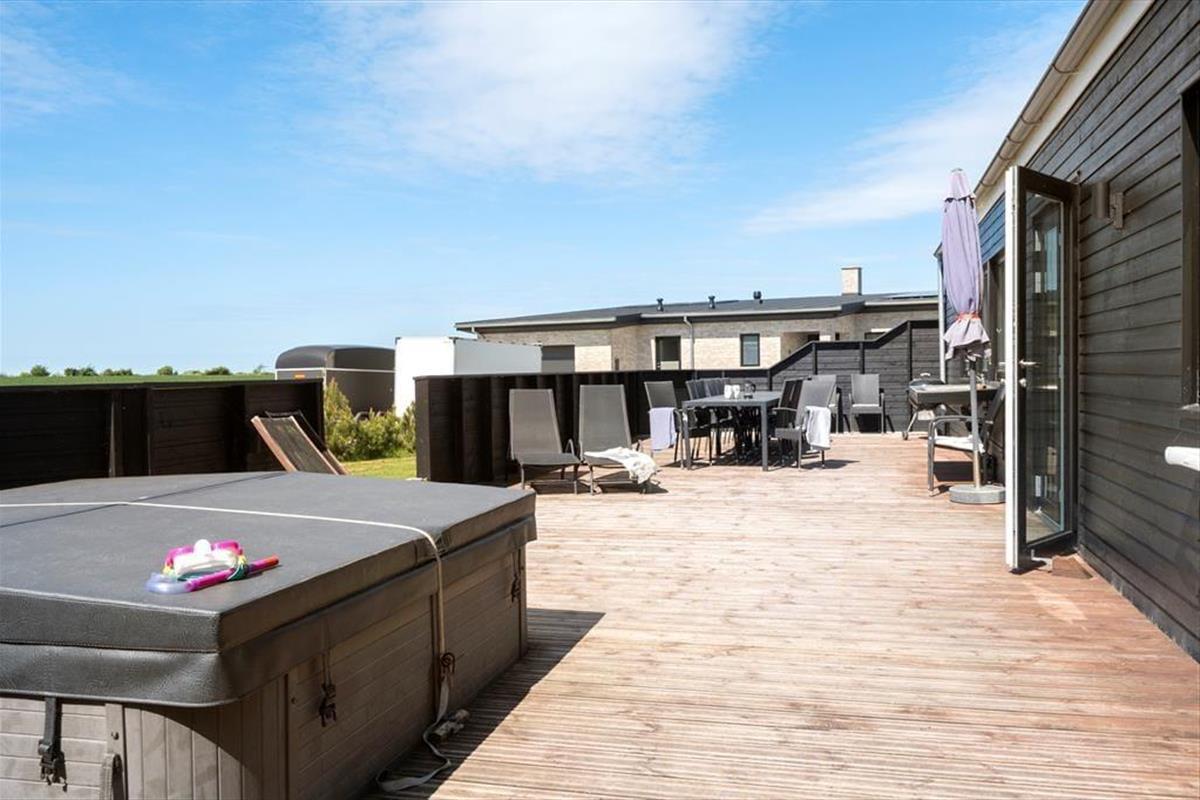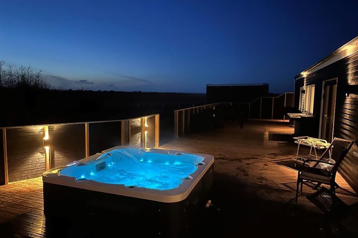 Auf der großen Terrasse des Hauses entfaltet sich das Ferienleben in seiner ganzen Vielfalt – und noch mehr. Hier gibt es reichlich Platz, um sich mit einem Buch in der Sonne zu entspannen, mit den Kindern Karten zu spielen oder lange, laue Sommerabende in guter Gesellschaft zu genießen. Der herrliche Außenwhirlpool ist eines der absoluten Highlights des Hauses. Stell dir vor, du sitzt hier unter dem Sternenhimmel mit einem Glas Sekt in der Hand, während das Wasser sanft um dich herum sprudelt – einfach magisch! Der Garten ist weitläufig und grün, mit viel Platz zum Spielen, Toben und für flitzende Hundepfoten, denn bis zu drei Hunde sind hier herzlich willkommen. Dank offener sowie geschützter Terrassenbereiche findest du immer ein Plätzchen mit Windschutz – und wenn der Grill angeschmissen wird, verbreitet sich der Duft des Sommers im ganzen Garten.