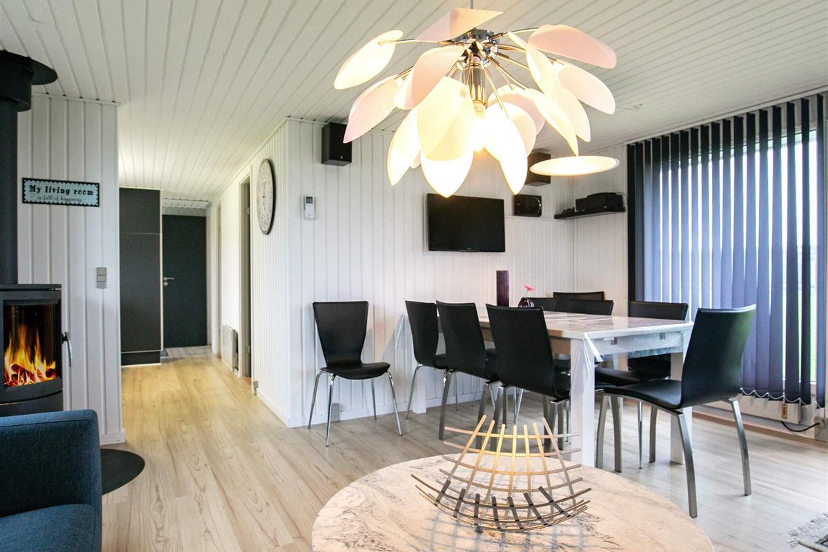 Dieses allergiefreundliche Ferienhaus, mit herrlichem Wasserblick, liegt nur ca. 40 Meter vom Limfjord entfernt, auf einem großen Naturgrundstück, in einem ruhigen Feriengebiet. Es wurde 2013 renoviert und erhielt u.a. neue Holzböden im Wohnzimmer sowie komfortable Möbel. Sie können hier dänische Fernsehsender empfangen, außerdem ist TDC TV angeschlossen. Minianlage mit CD-Spieler. An kühleren Tagen sorgt der Holzofen hier für behagliche Wärme. Das kleinere Badezimmer ist mit WC, Waschbecken und Dusche ausgestattet. Die Küche ist mit dem Wohnzimmer kombiniert und gut ausgestattet. Sowohl vom Grundstück als auch vom Haus aus haben Sie Aussicht auf den Limfjord. Ein Teil der Terrasse ist überdacht. Hier können Sie wunderbar sitzen und den Blick sowie die frische Luft genießen, während die Kinder auf dem Grundstück spielen und toben. Die Umgebung bietet zahlreiche Ausflugsziele, z.B. Skive, Holstebro, den Jesperhus Blumenpark und natürlich die zahlreichen kleinen Orte, die sich wie Perlen auf einer Schnur am Limfjord aufreihen.