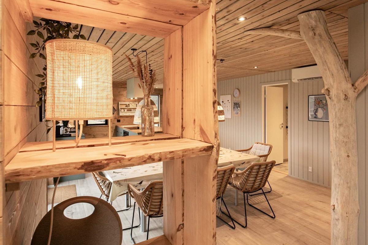 Vom Wohnbereich aus genießen Sie durch die großen Fenster den Blick auf den kleinen Bach und das Naturschutzgebiet, wo Sie mit etwas Glück die reiche Tierwelt der Gegend beobachten können. Das Wohnzimmer ist mit einem Smart-TV und WLAN ausgestattet und lädt zum Entspannen in den Polstermöbeln oder zu gemütlichen Beisammensein am großen Spieltisch ein. Das Haus ist mit viel Liebe zum Detail eingerichtet. Ein Haus, in dem Natur, Komfort und Wohlbefinden zusammenkommen.