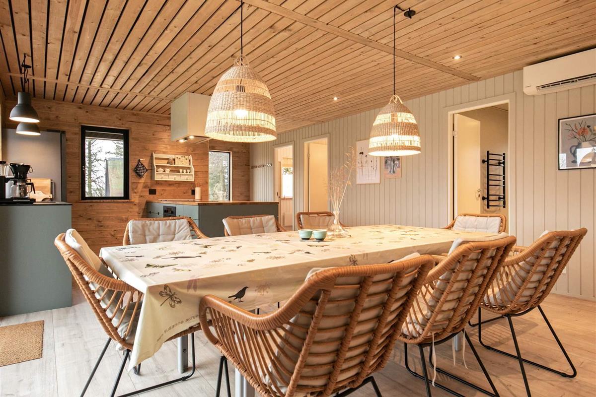 Das Haus verfügt über 4 Schlafzimmer mit insgesamt 10 Betten und 2 Badezimmer mit Fußbodenheizung und eignet sich somit für zwei Familien. Die Wohnküche ist geräumig und bietet Platz für 10 Gäste. Neben allen modernen Geräten gibt es auch einen zusätzlichen Kühlschrank für Getränke oder andere Lebensmittel.