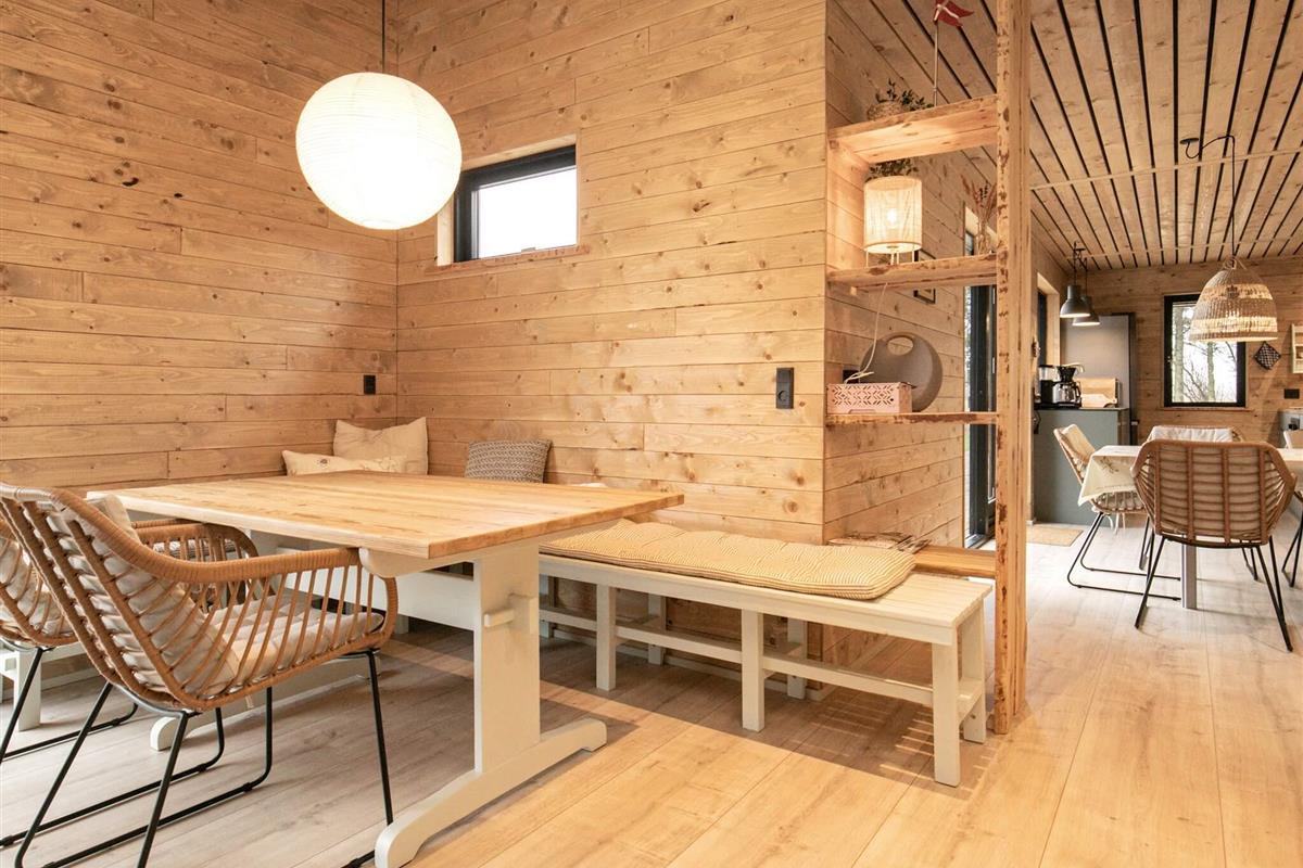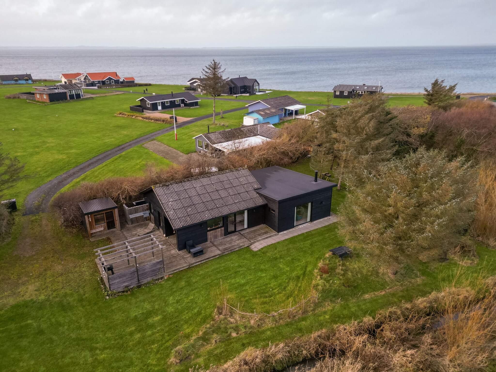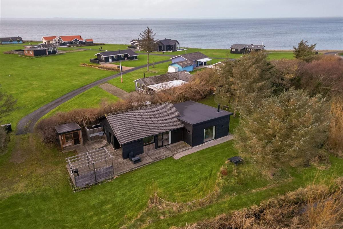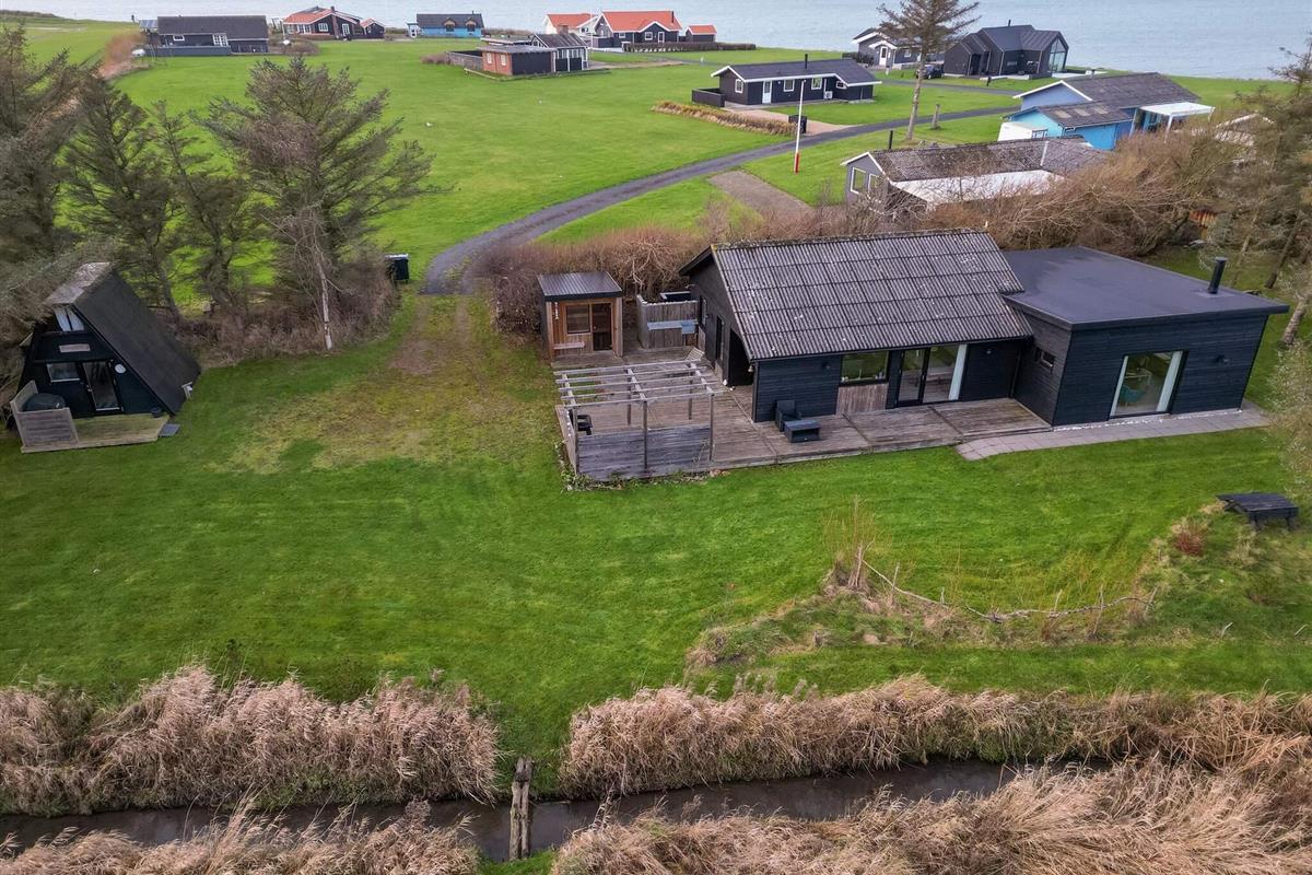 Das Haus liegt auf einem 1.980 m² großen Naturgrundstück, das sich ideal für Outdoor-Aktivitäten mit Trampolin (Benutzung auf eigene Gefahr), Spielen, Lagerfeuer und Schwimmen im Sommer wie im Winter eignet. Auf dem Grundstück befindet sich auch ein kleiner See, an dem ein Bach vorbeifließt. Große Teile des Hauses sind von einer Holzterrasse umgeben. Die Terrasse mit Außenküche und Außendusche wird schnell zu einem gemütlichen Treffpunkt. Sie ist gut vor den manchmal kräftigen Winden vom Limfjord geschützt.