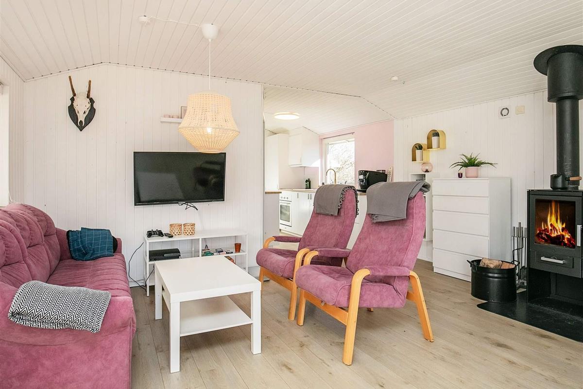 Das Sommerhaus ist praktisch eingerichtet und verfügt über eine kombinierte Wohnküche. Das Wohnzimmer ist mit bequemen Möbeln, einem Radio, kostenlosem Highspeed-Internet und einem Flachbildfernseher mit Chromecast ausgestattet, auf dem Sie Ihre eigenen Fernsehprogramme streamen können. Für kühle Sommerabende oder verregnete Herbstabende steht ein Holzofen zur Verfügung. Brennholz für den Ofen ist im Haus vorhanden und kann kostenlos genutzt werden.