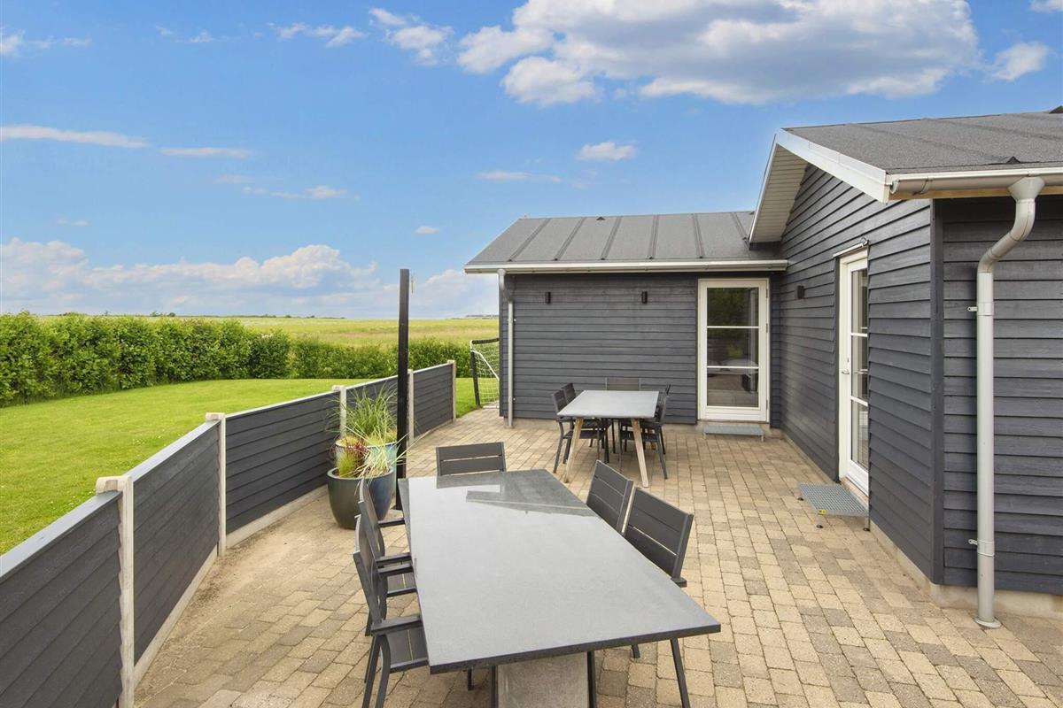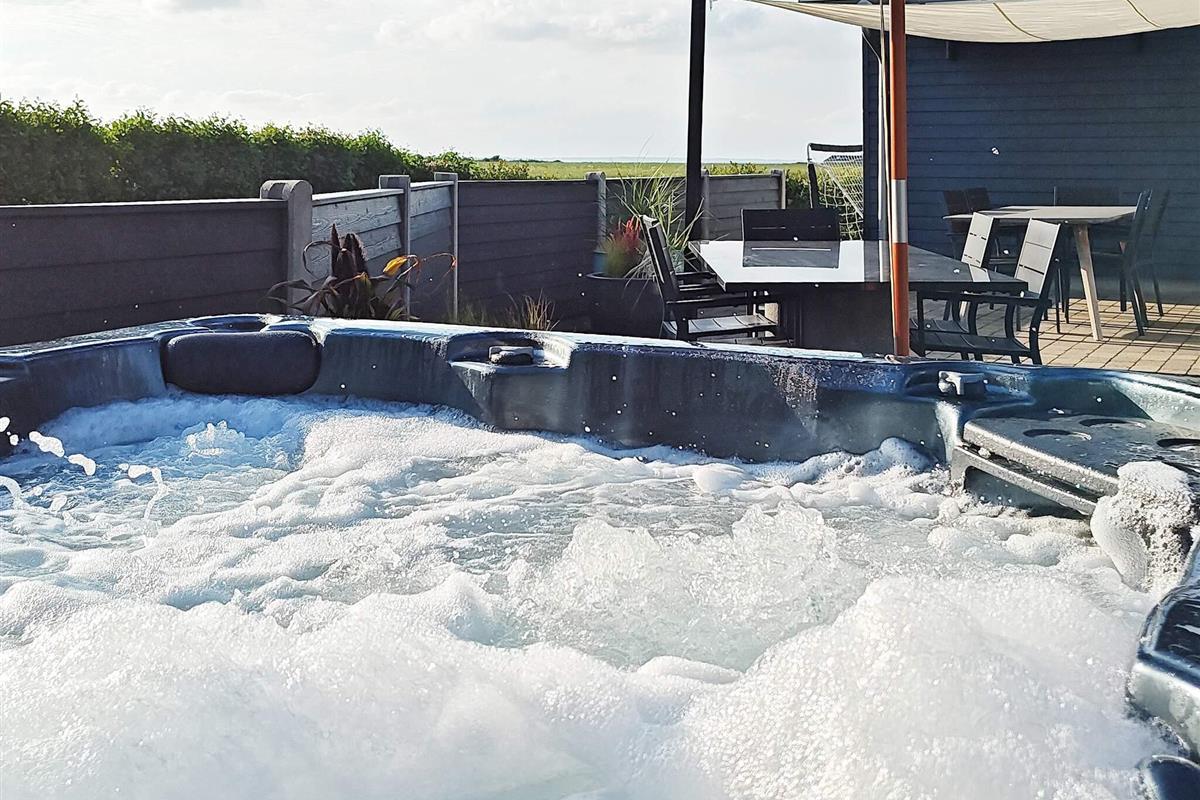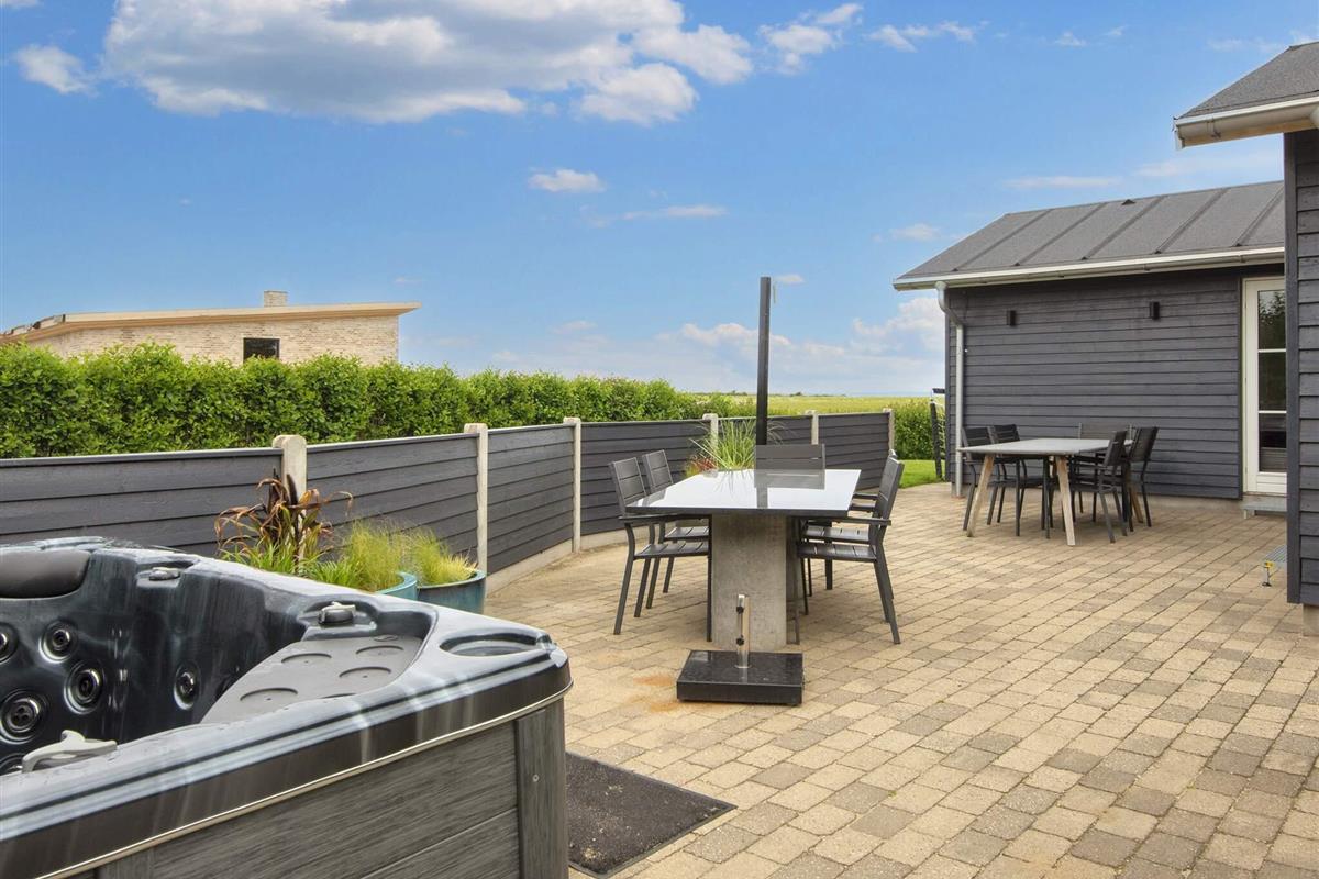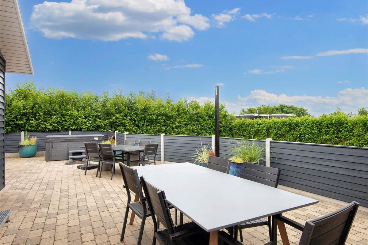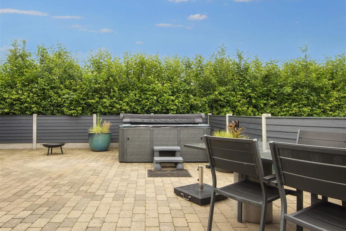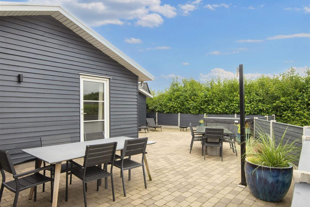Das Haus hat eine große Terrasse mit guten Gartenmöbeln, Liegestühlen und einem Gasgrill, wo Sie Ihr Abendessen genießen können, während die Sonne über dem Fjord untergeht. Hier finden Sie auch den 6-Personen-Spa im Freien.