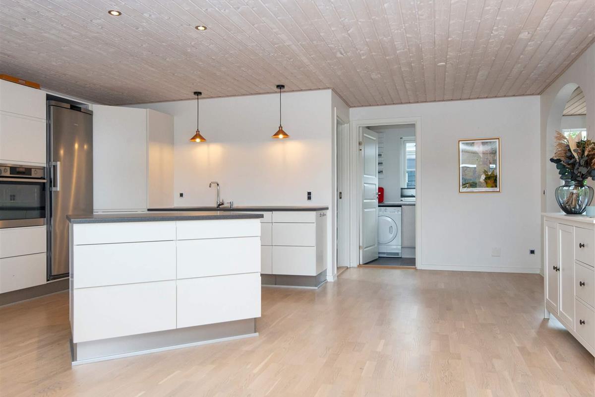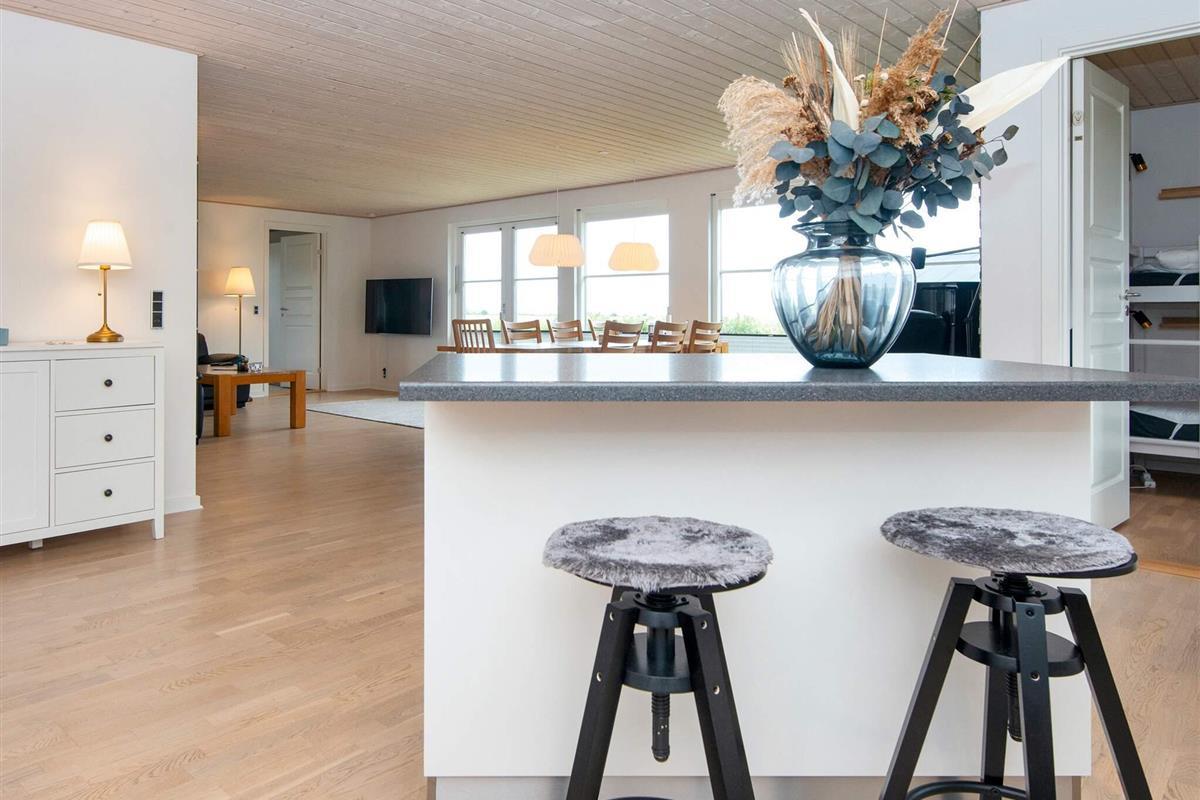 Das Ferienhaus ist hell und einladend und strahlt Qualität aus. Das Haus ist praktisch eingerichtet mit einer kombinierten Küche/Familienzimmer/Wohnzimmer.