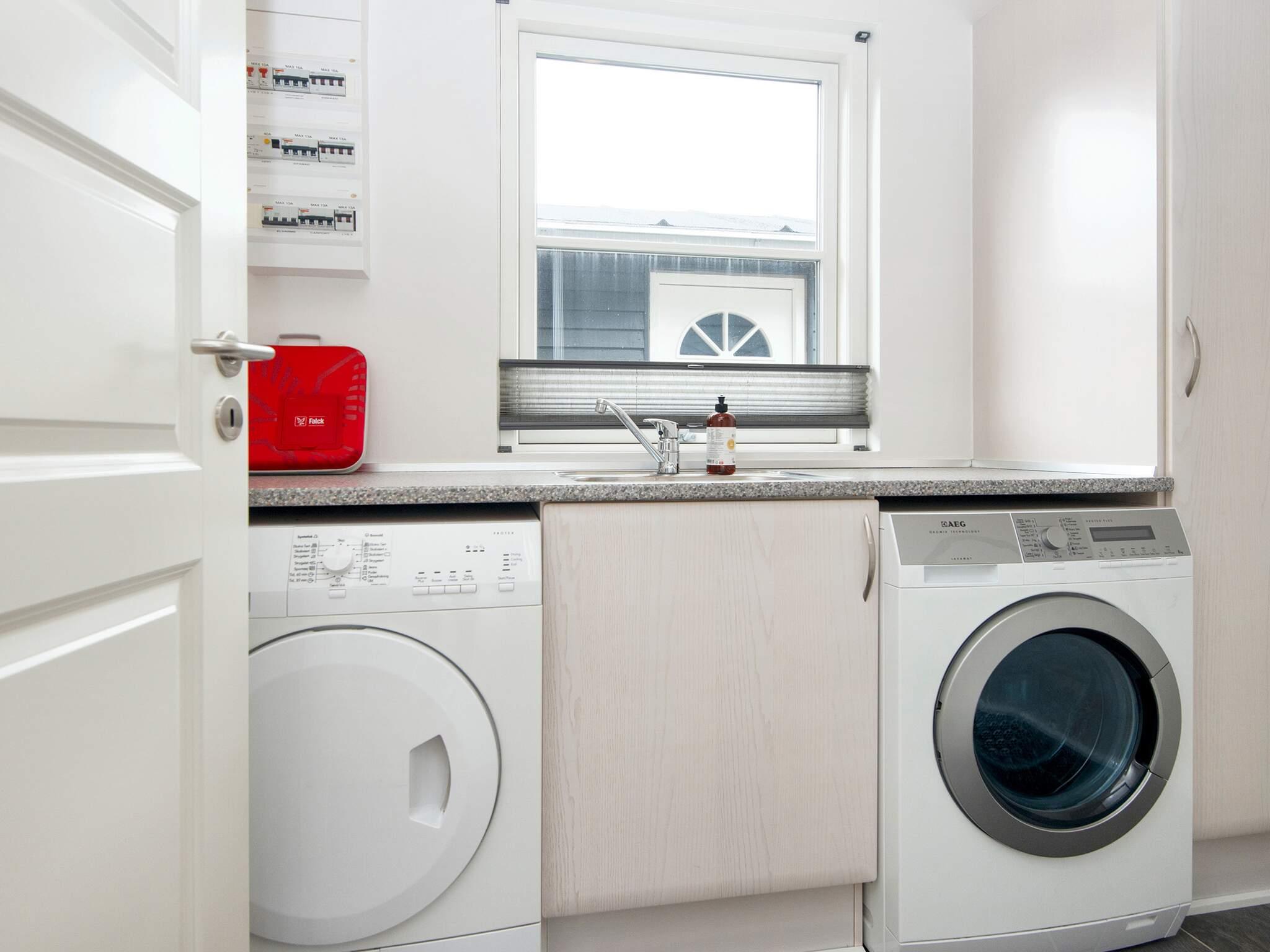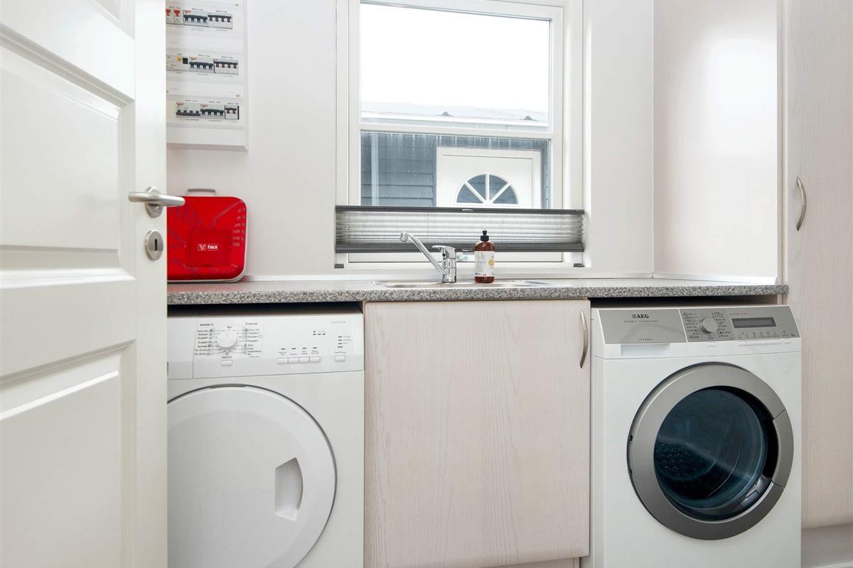 Der Hauswirtschaftsraum ist mit einer Waschmaschine und einem Wäschetrockner ausgestattet. Es gibt ein Wochenendbett und einen Hochstuhl für die Kleinen.