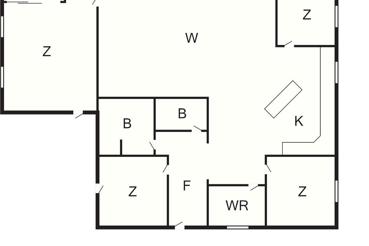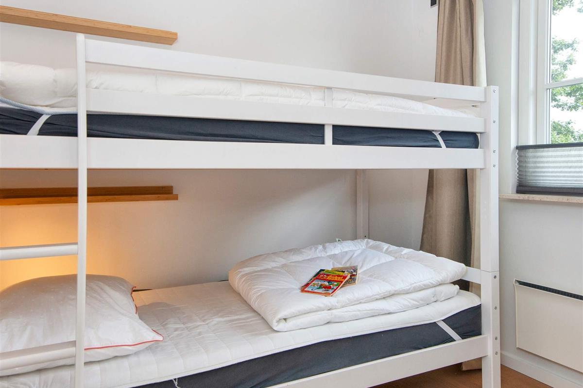 Das Ferienhaus verfügt über vier Schlafzimmer, darunter 2 Doppelzimmer, eines davon mit Doppelbett (140x200), 1 Zimmer mit Doppelbett (140x200) und 1 Etagenbett und 1 Zimmer mit 2 Etagenbetten.