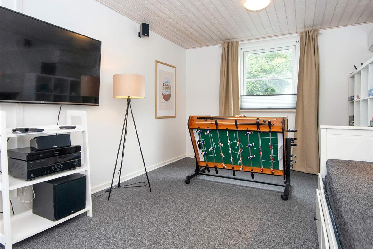 Der Mehrzweckraum (Annex) des Hauses ist ein Erlebnis für sich, mit vielen Stunden Unterhaltung für Kinder und Erwachsene, einschließlich Aktivitäten wie Billard, Tischfußball, Airhockey (Drehscheibenversion) und elektronische Darts. Es gibt ein „Kino“ mit einem großen Fernseher und einer Surround-Sound-Anlage, über die Sie Ihre eigenen Fernsehprogramme usw. übertragen können. Es gibt auch ein Schlafsofa für 2 Personen.