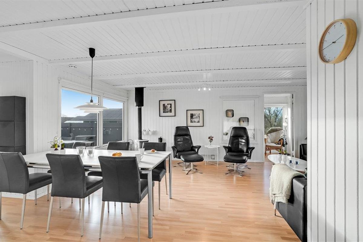Een zeer klassiek, modern interieur met het felle contrast van zwart lederen meubels en wit gelakte houten muren, kunt u het uzelf gemakkelijk maken. Dit zeer goed onderhouden vakantiehuis biedt u en uw gezelschap een ruime woonkamer met veel mogelijkheden voor heerlijke ochtenden en avonden met het gezin, zo is er een grote eettafel voor gezelschapsspelletjes en een houtkachel om de dag af te sluiten. Op uw open terras kunt u de verse vis laten sissen op de barbecue terwijl u geniet van de zonnestralen en de frisse lucht inademt. In uw privétuin kunt u een van de ligstoelen pakken en neerstrijken met een boek terwijl uw kinderen spelen in de omheinde groene ruimte.