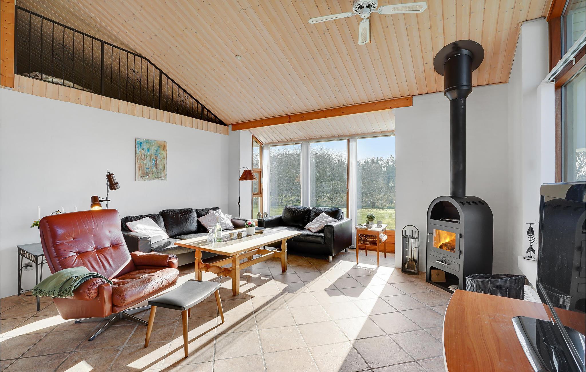 Ruim vakantiehuis nabij Handbjerg Strand met houtkachel, wifi en deels overdekt terras, perfect voor natuurliefhebbers.