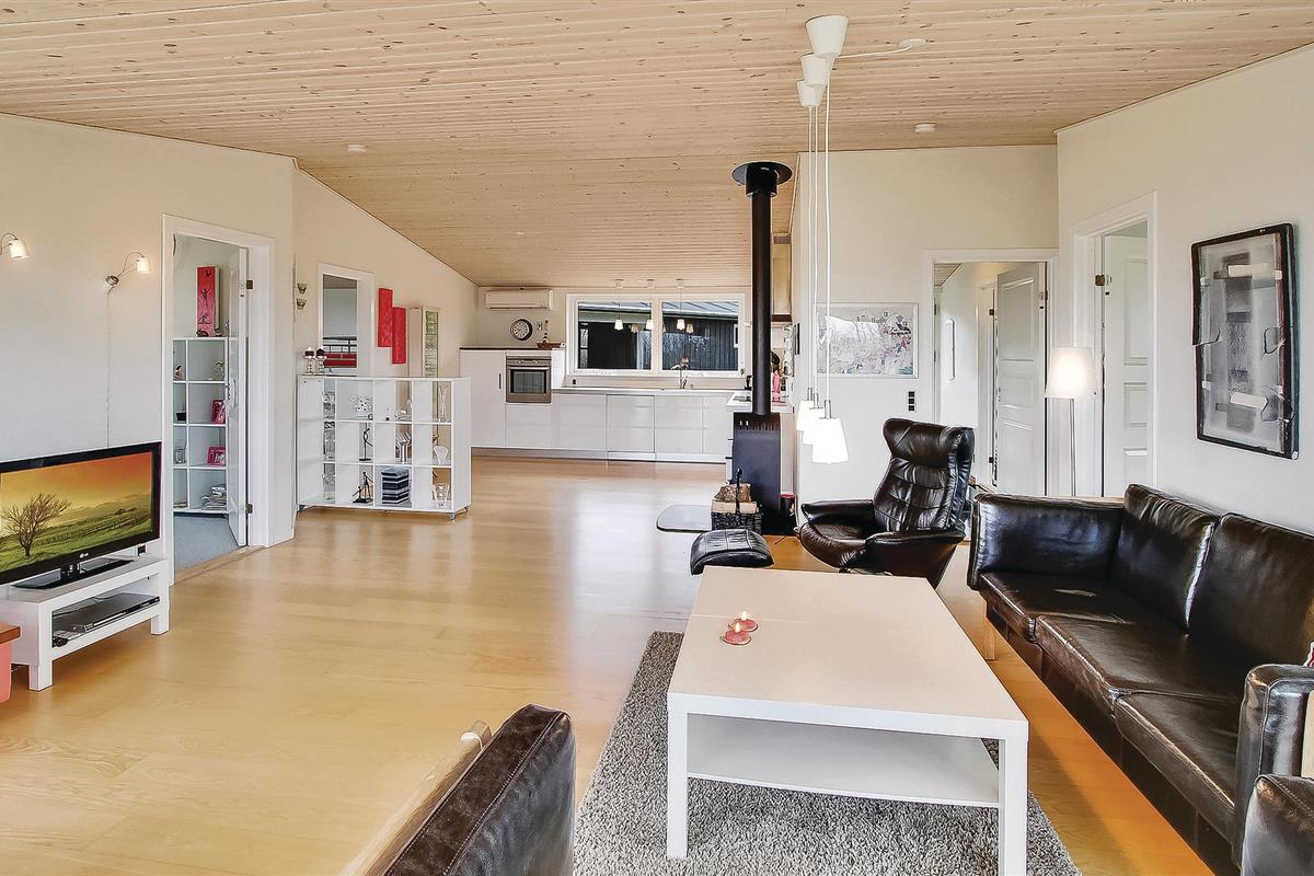 Licht en uitnodigend vakantiehuis op een mooi, open perceel met gazon en licht afgeschermd met struiken en kleinere bomen. Vanuit de woonkamer heeft u toegang tot het terras, dat helemaal rond het huis loopt, zodat u altijd een plekje in de zon kunt vinden. Het huis ligt in het rustige vakantiehuisgebied bij Handbjerg, niet ver van de haven in Handbjerg, waar u kunt wandelen en naar de boten kunt kijken en kunt genieten van de havensfeer. Als u zin heeft, kunt u lunchen met uitzicht op de Limfjord. Het is slechts een kwartiertje rijden naar Holstebro, waar u de mooiste voetgangerszone van Denemarken vindt en veel winkels. Holstebro heeft ook veel restaurants met voor elk wat wils.