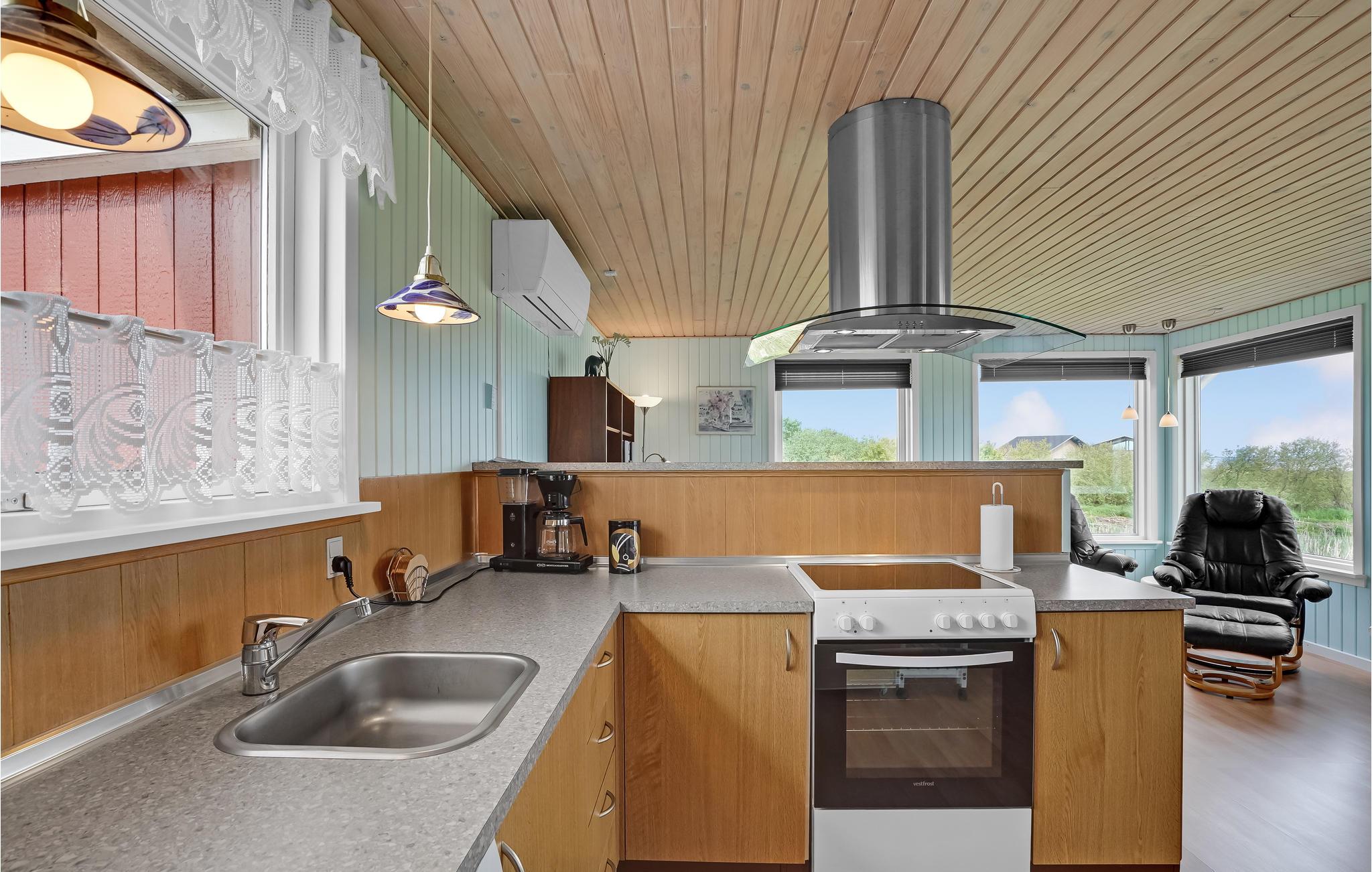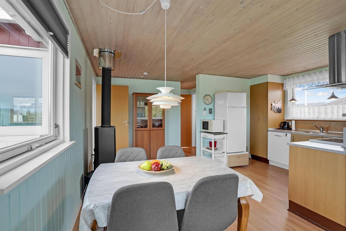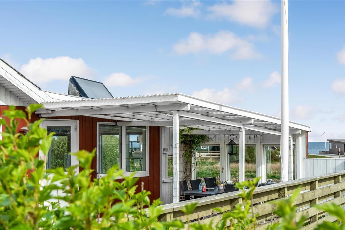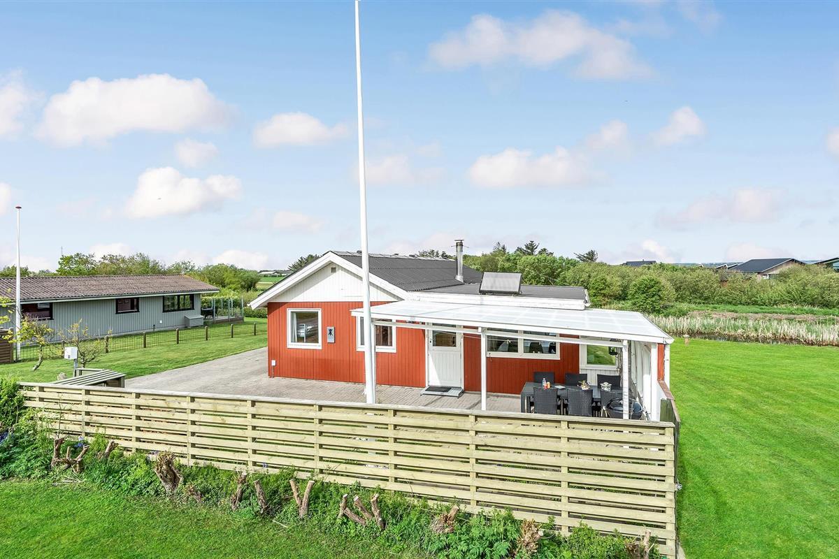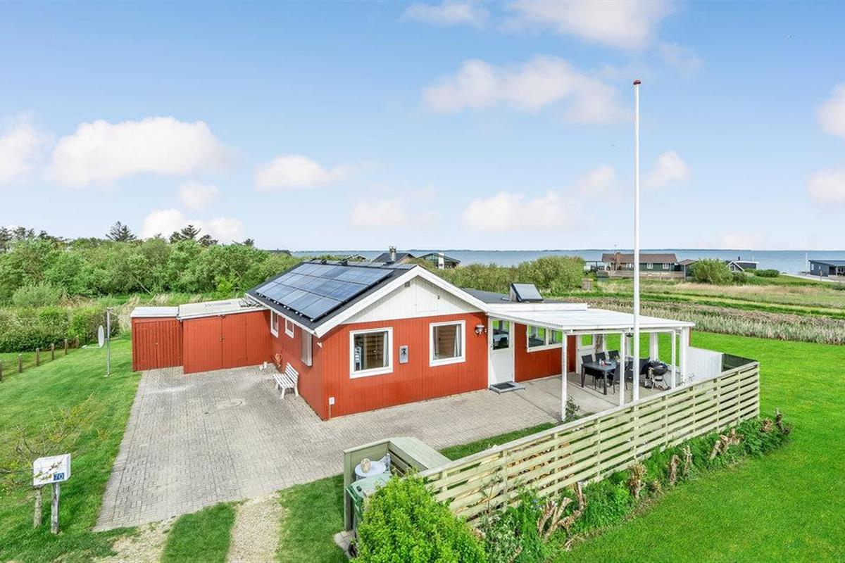 Gezellig vakantiehuis met fjordzicht, serre, houtkachel en terras nabij Handbjerg Strand.