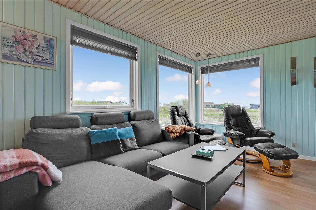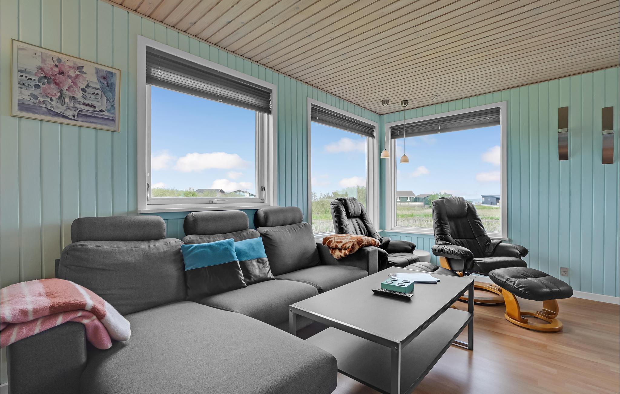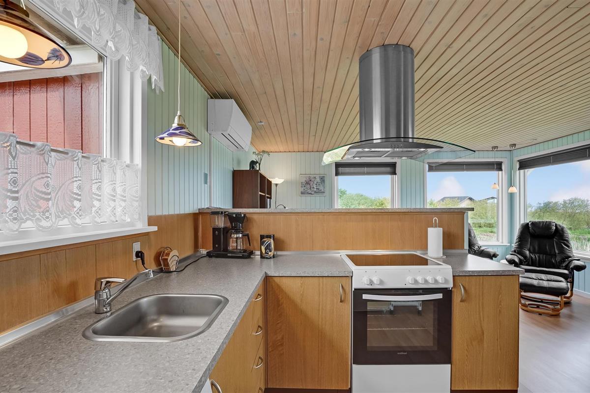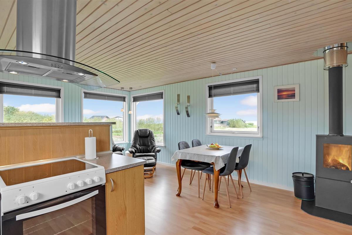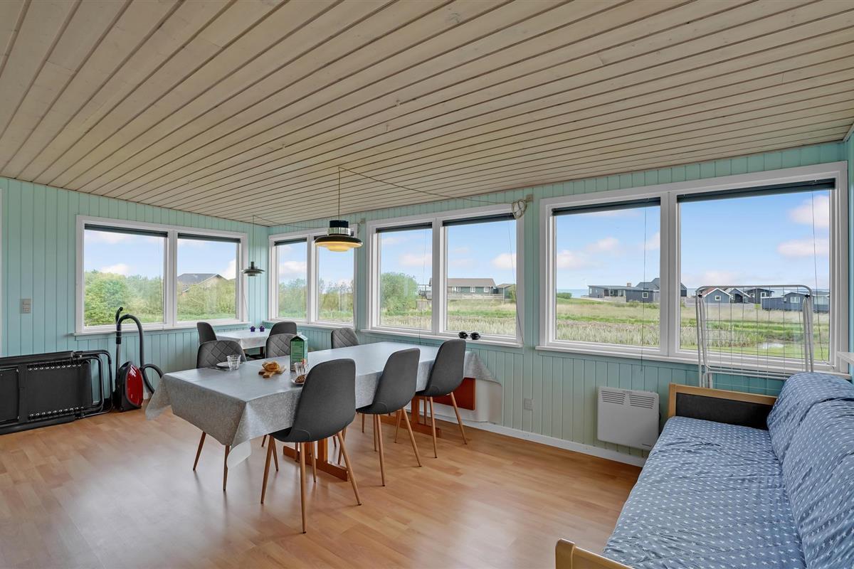 Gezellig vakantiehuis met fjordzicht, serre, houtkachel en terras nabij Handbjerg Strand.