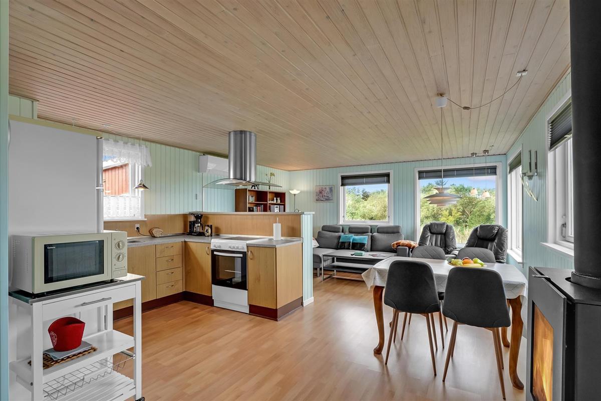 Ingericht met een keuken-woonkamer met houtkachel, biedt het interieur een gezellige lounge. Een serre met eettafel en slaapbank biedt zowel een mooie eetplek als extra slaapruimte. Van hieruit heeft u toegang tot het overdekte terras, dat aan de ene kant voorzien is van een privacyscherm en aan de andere kant in open verbinding staat met het open en zonovergoten deel van het terras.