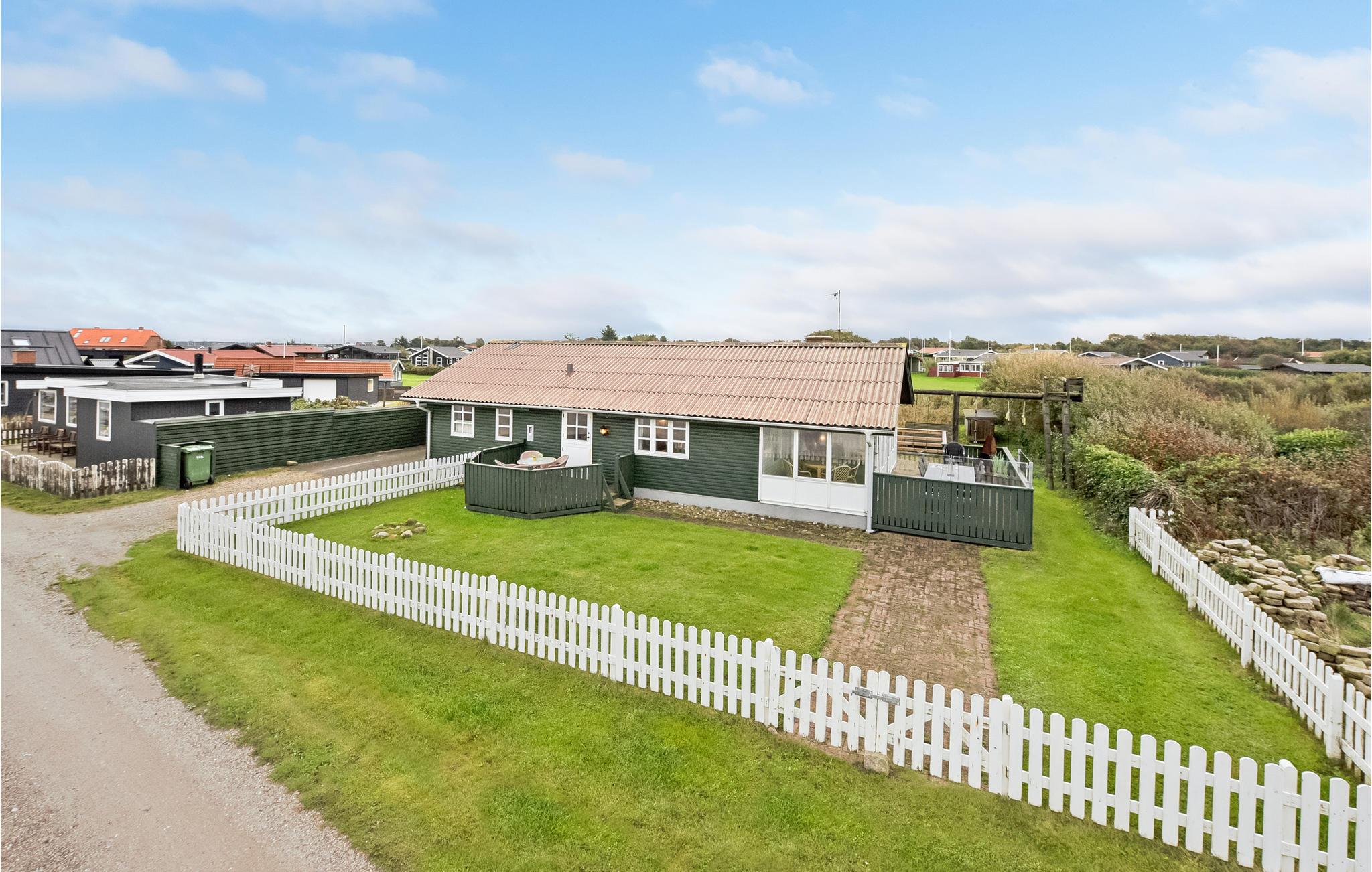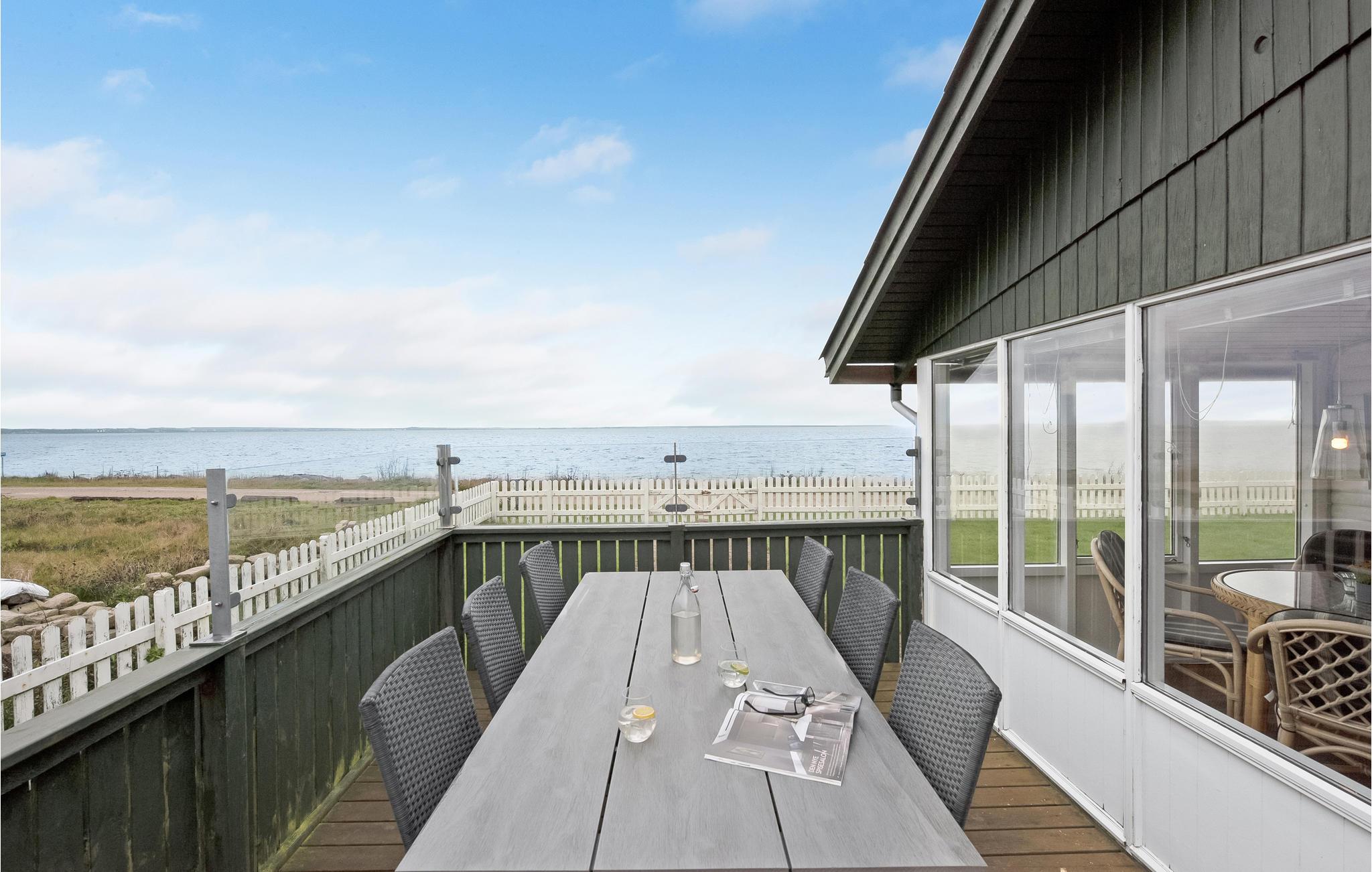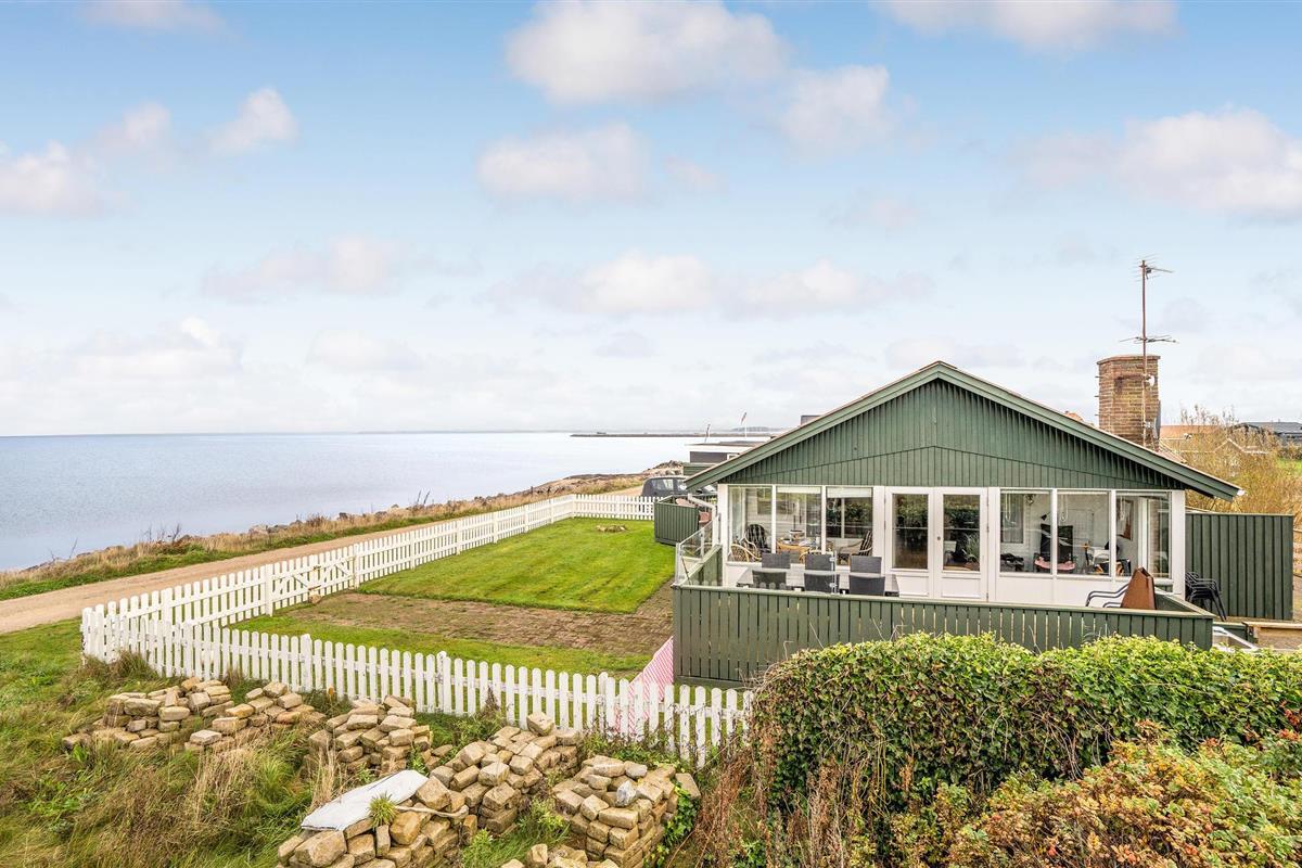 Geniet van een comfortabel vakantiehuis met sauna en panoramisch zeezicht in Handbjerg Strand.