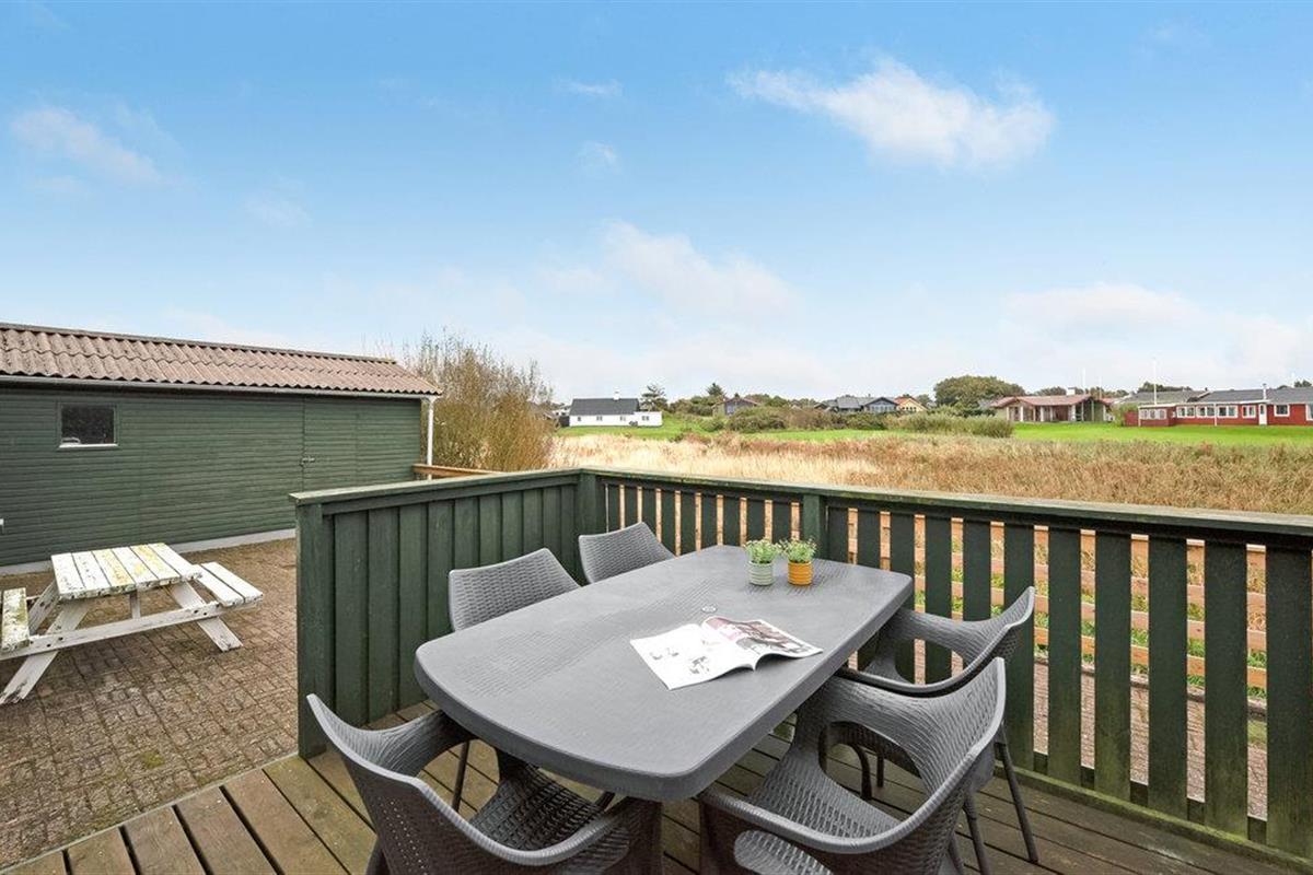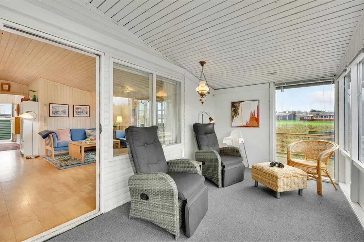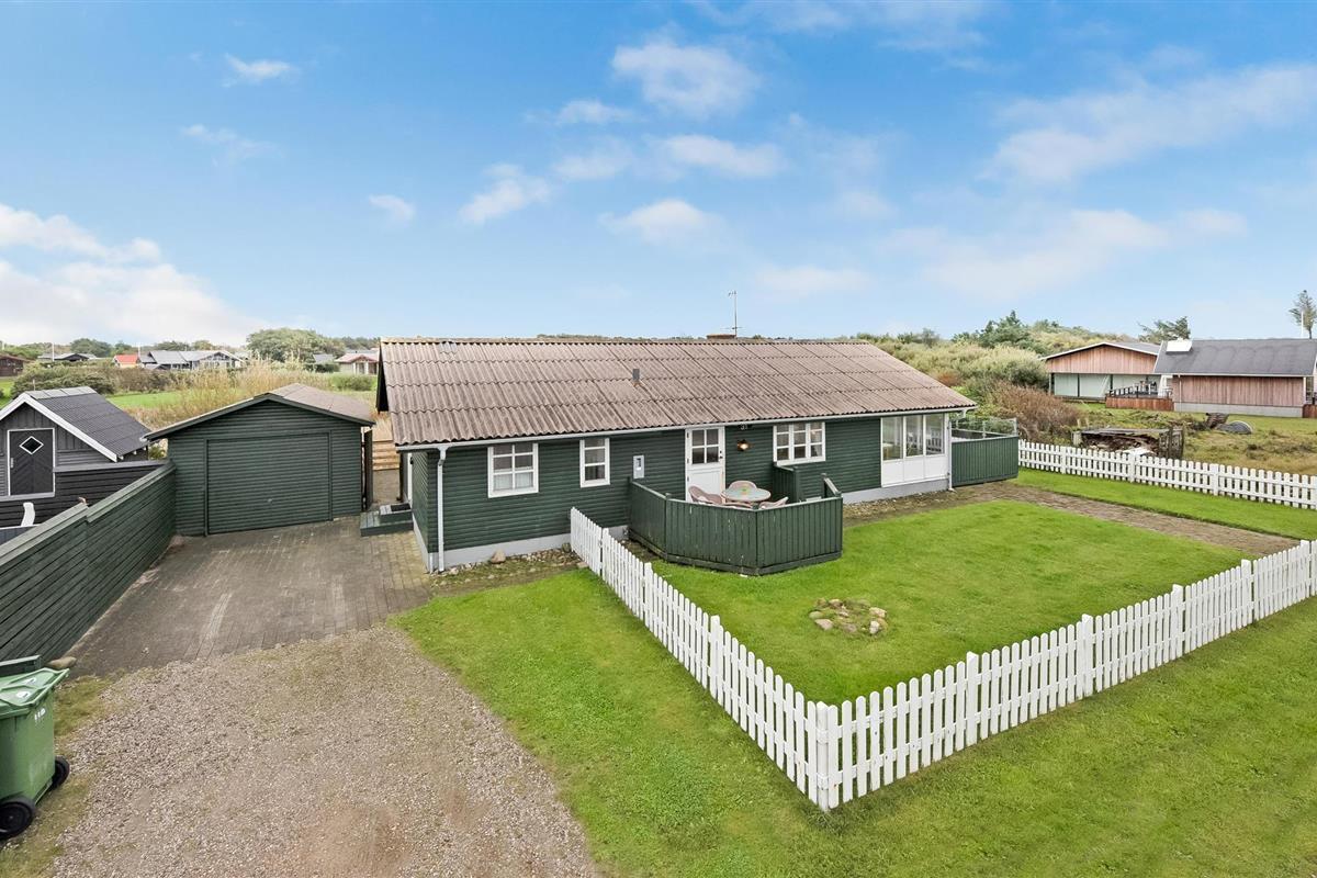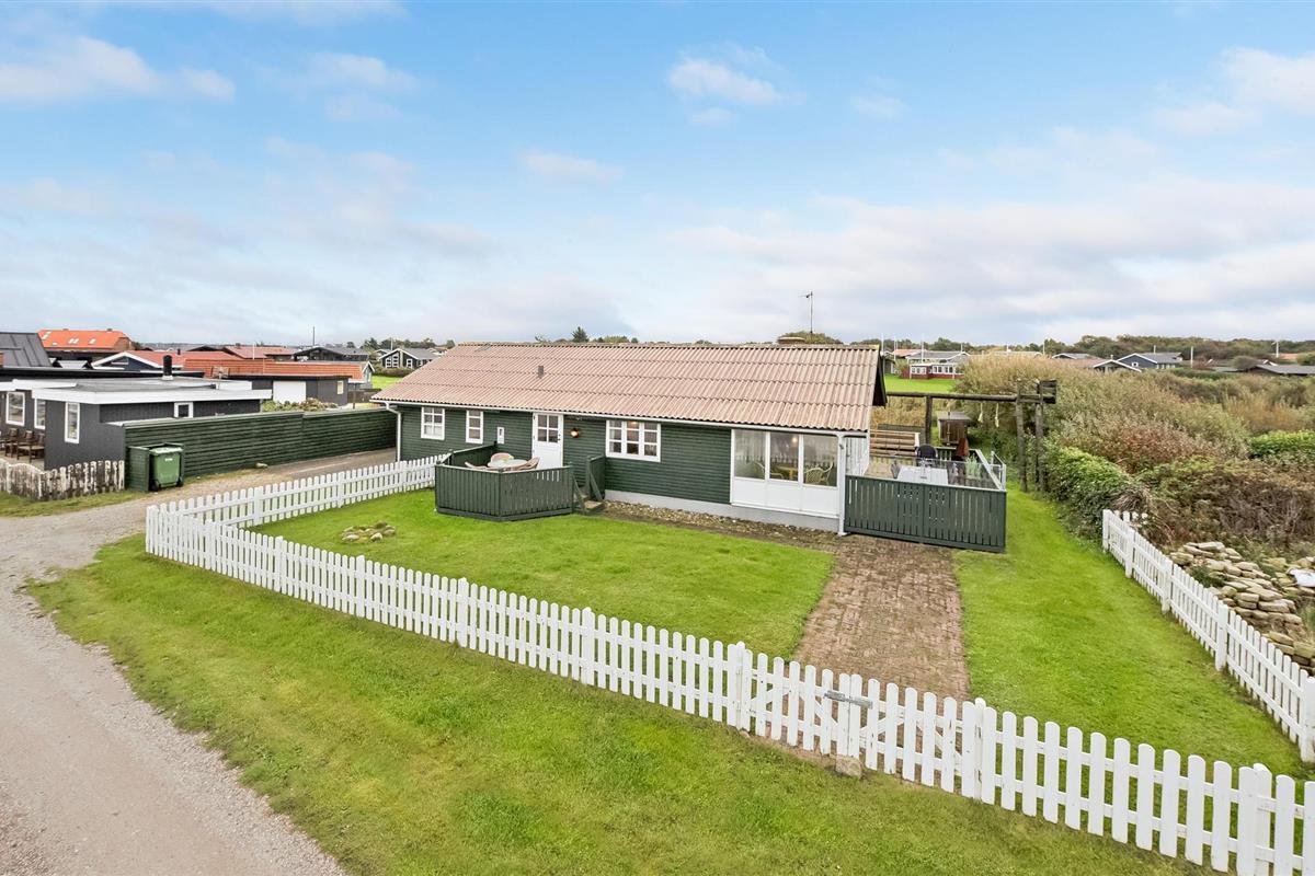 Geniet van een comfortabel vakantiehuis met sauna en panoramisch zeezicht in Handbjerg Strand.