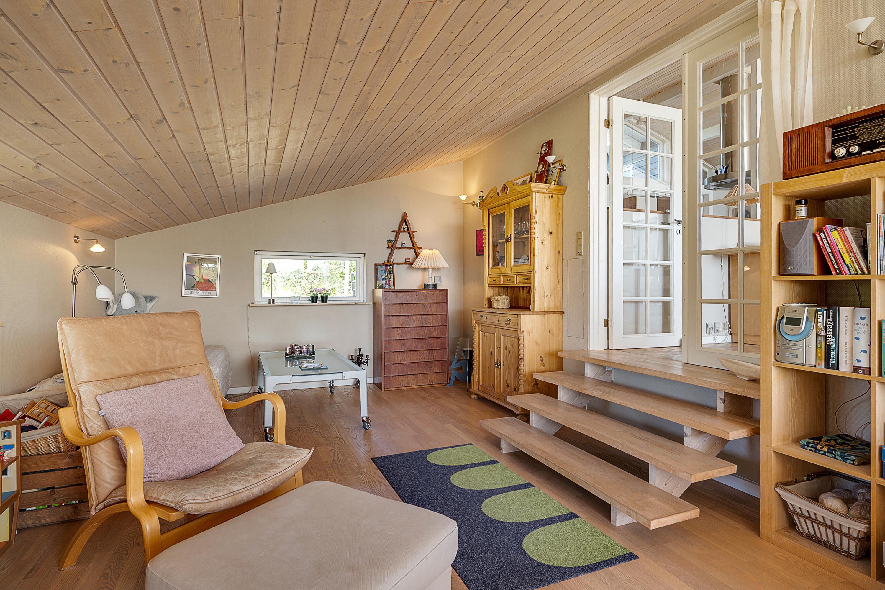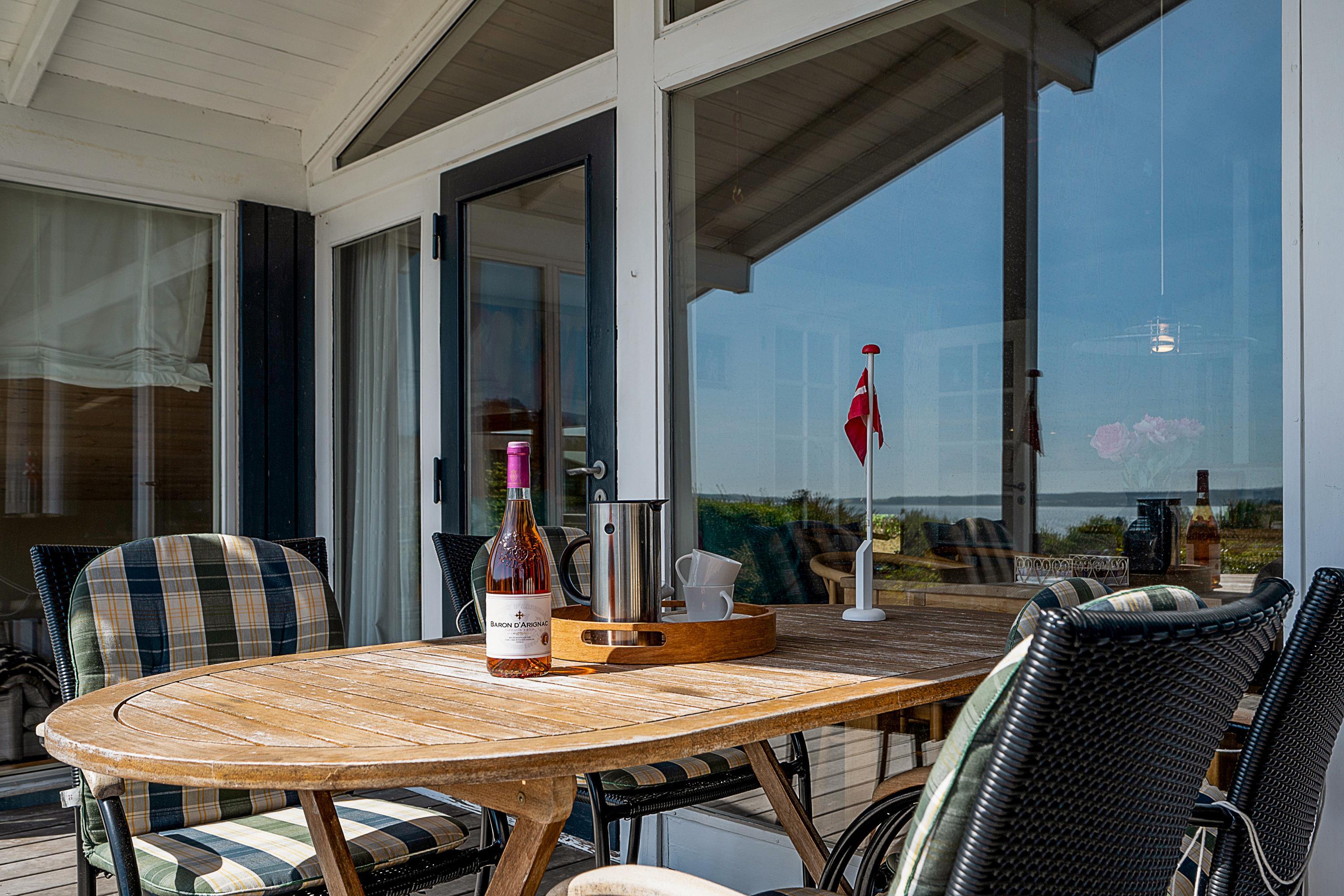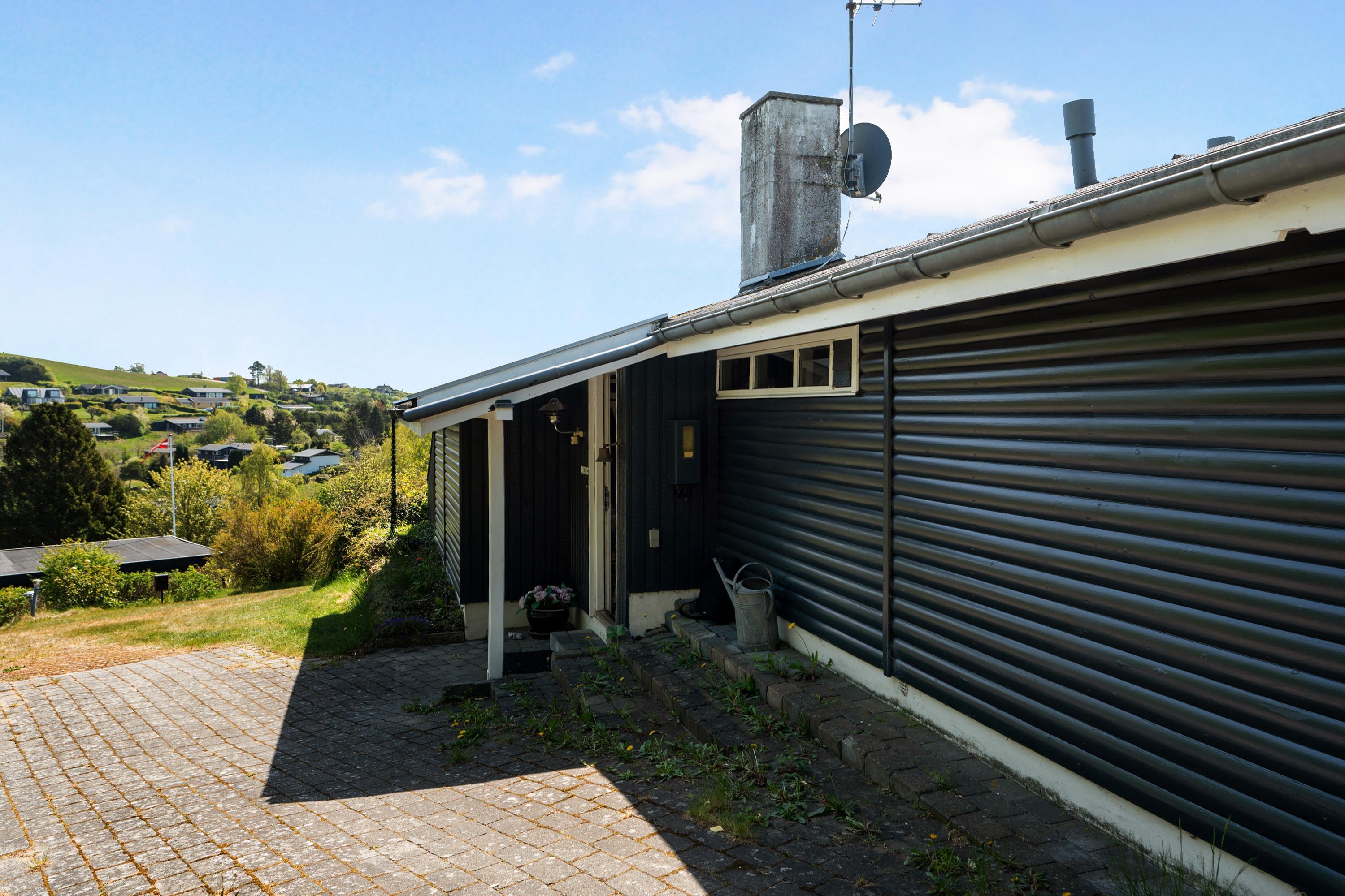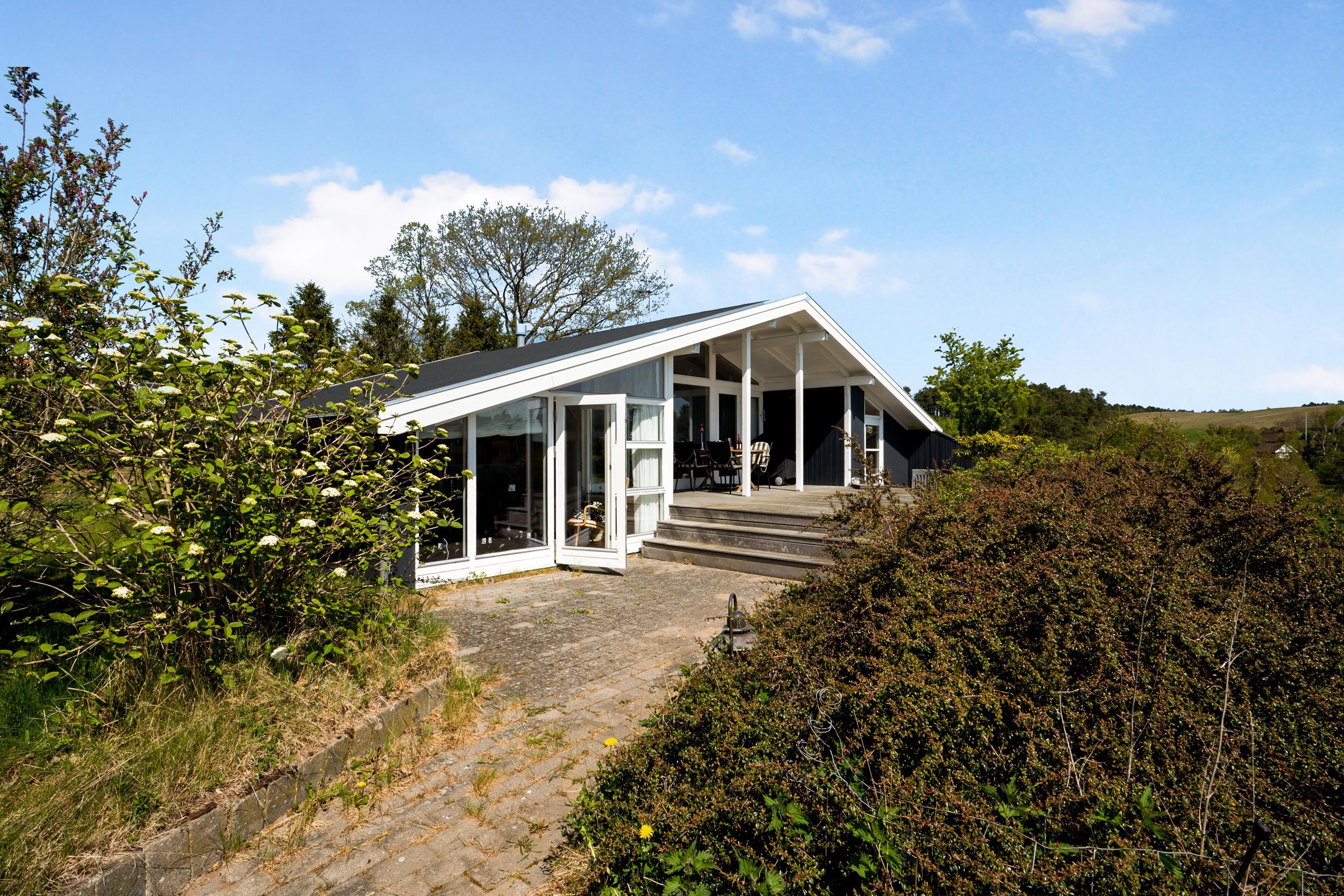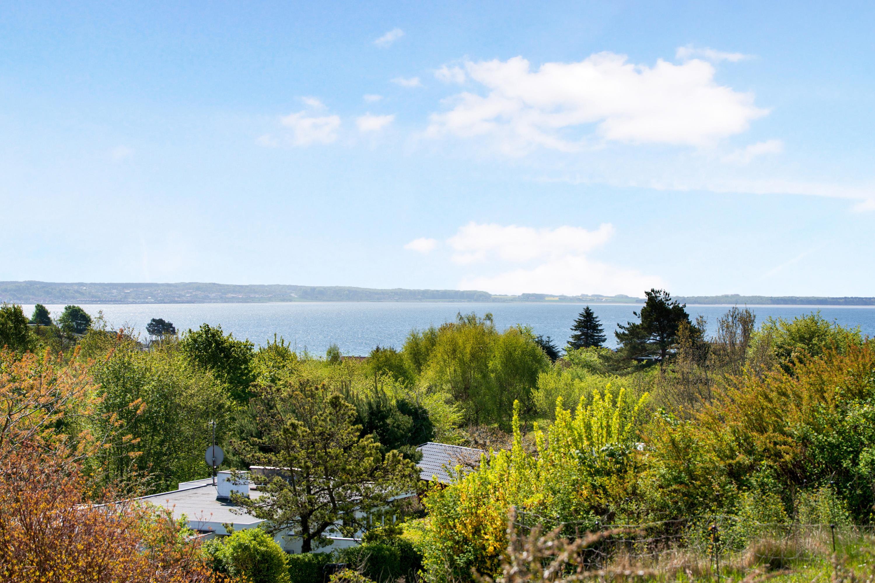 Located on a high, natural plot with the most stunning views over Ebeltoft Bay and Handrup Hills, this lovely, well-maintained older house exudes a cozy and traditional summer house atmosphere. The house is surrounded by beautiful terraces and sunny corners, including a large, south- and west-facing wooden/tiled terrace, partially covered, with comfortable garden furniture, lounge chairs, an umbrella, and a barbecue. A small holiday oasis for one or two couples or a family with children.