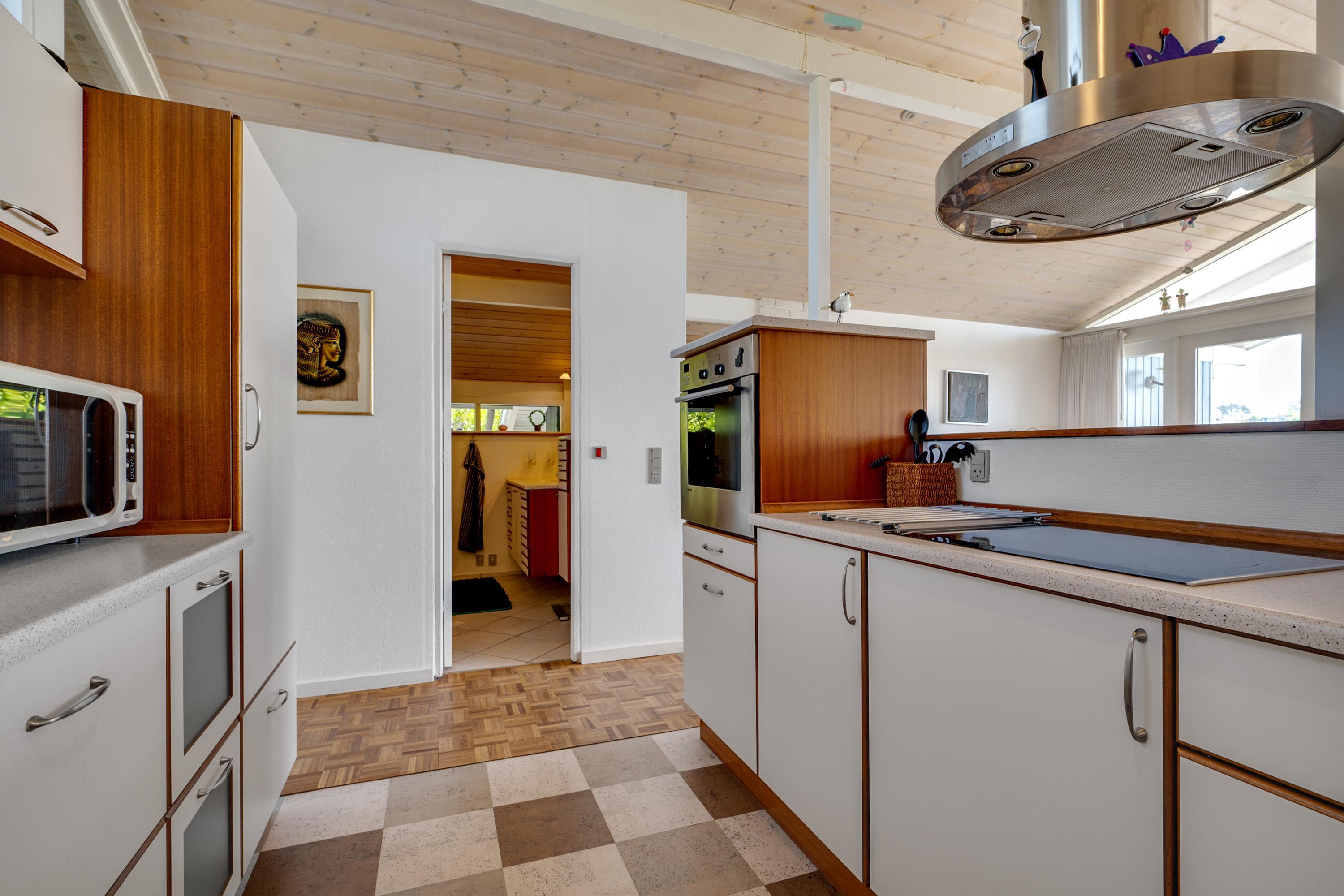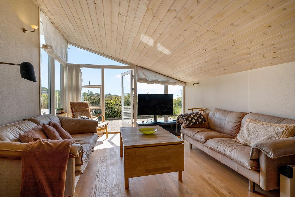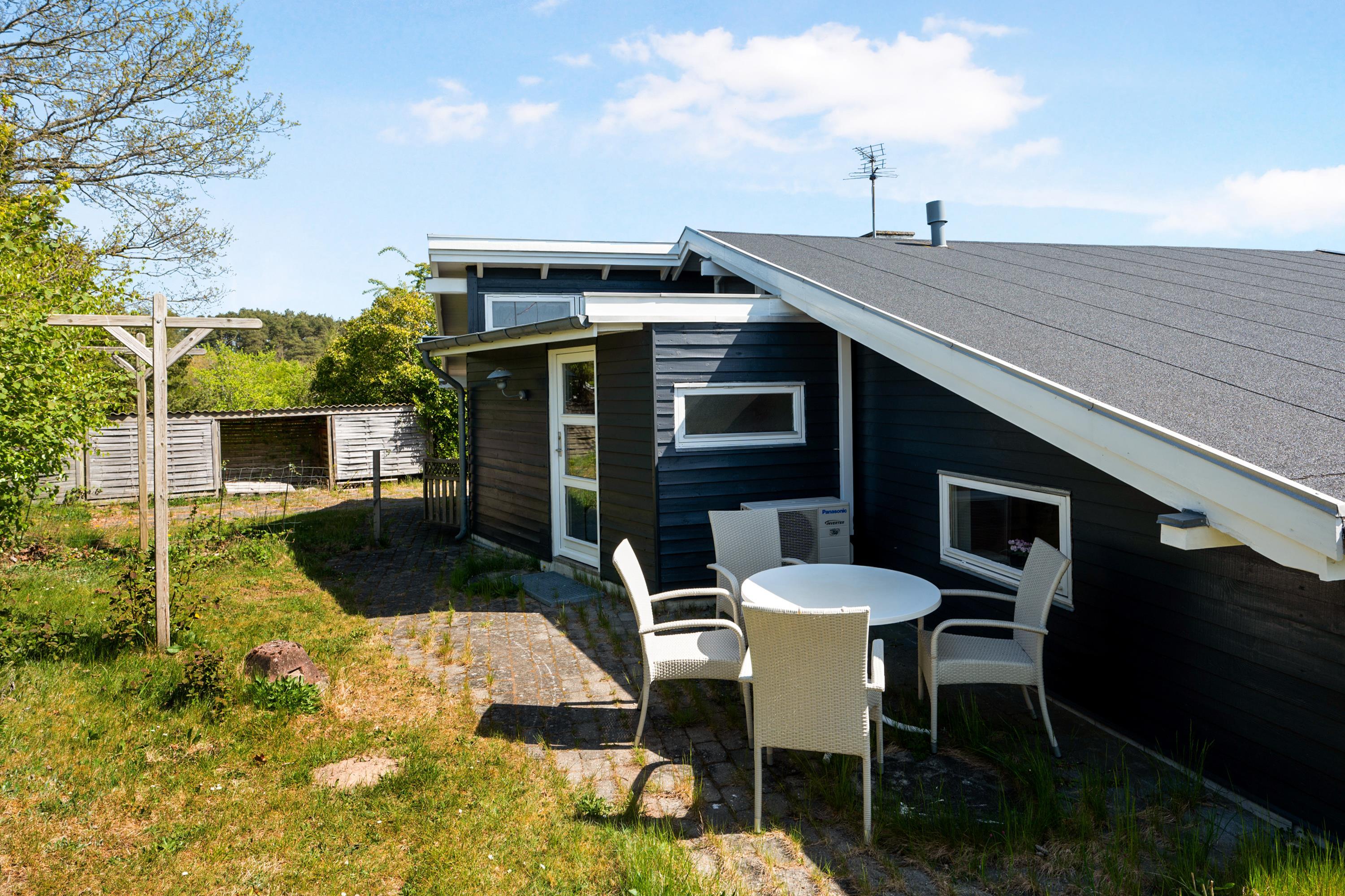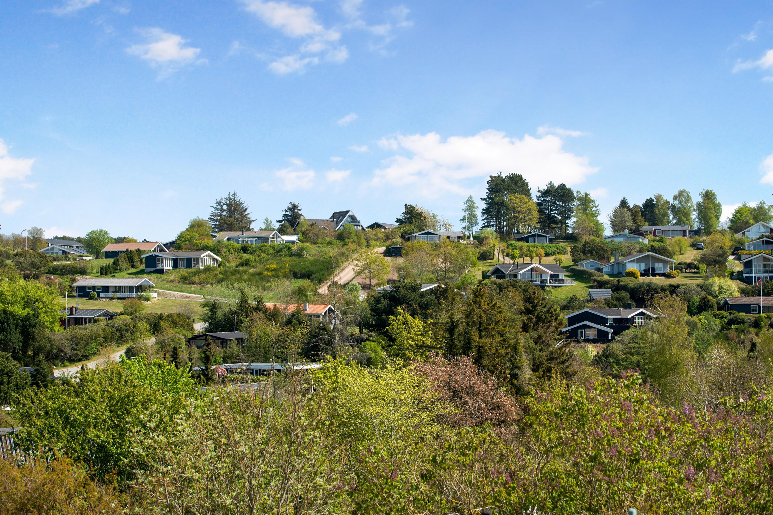Located on a high, natural plot with the most stunning views over Ebeltoft Bay and Handrup Hills, this lovely, well-maintained older house exudes a cozy and traditional summer house atmosphere. The house is surrounded by beautiful terraces and sunny corners, including a large, south- and west-facing wooden/tiled terrace, partially covered, with comfortable garden furniture, lounge chairs, an umbrella, and a barbecue. A small holiday oasis for one or two couples or a family with children.