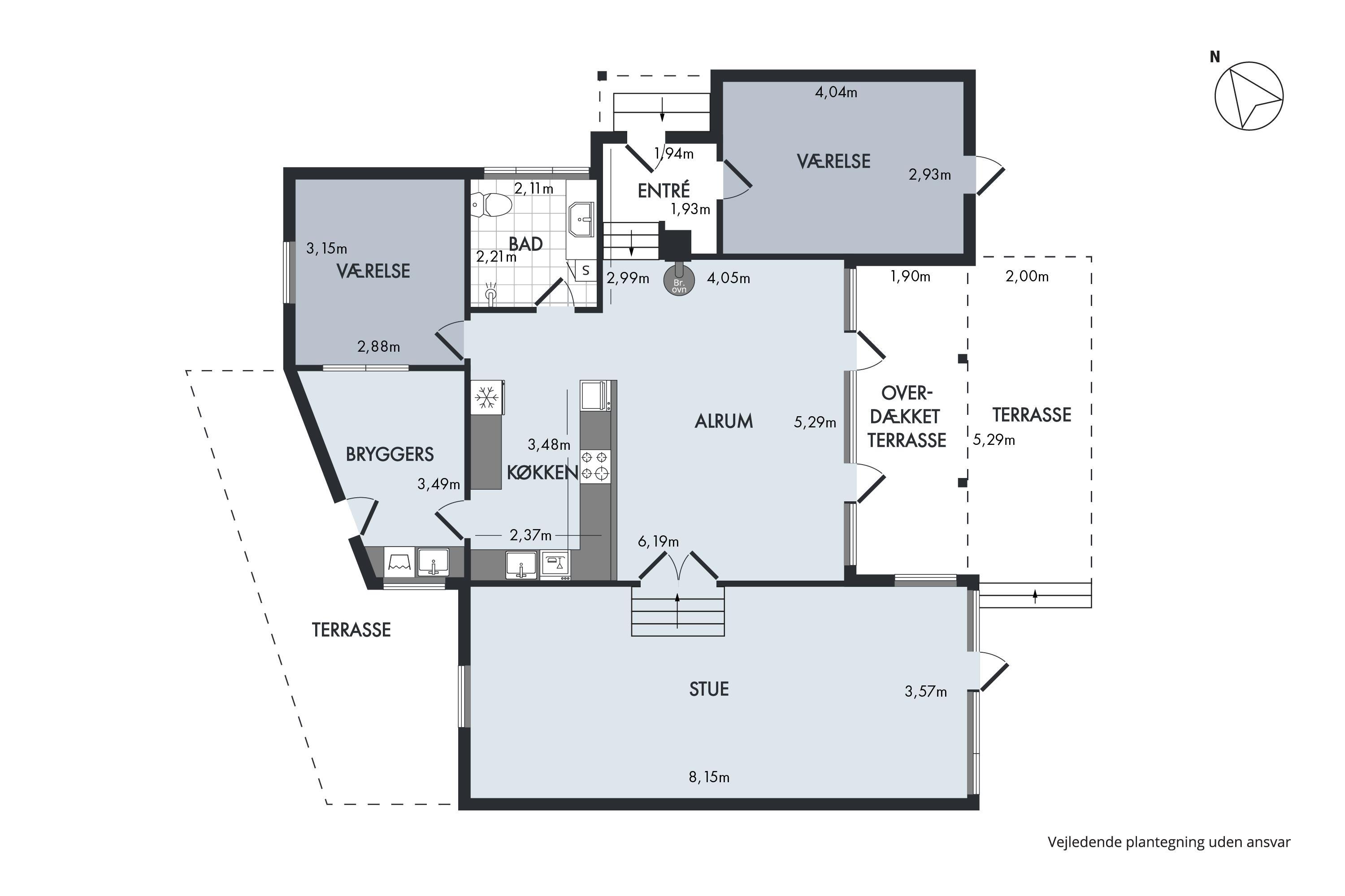From the entrance, you enter a spacious, light living room/dining area with vaulted ceilings, as throughout the rest of the house, and access to the terrace. There is a dining table for 7 people and a wood-burning stove. The well-equipped, lovely kitchen with plenty of workspace is open to the living area and features ceramic hobs, a built-in oven, refrigerator/freezer, dishwasher, and microwave. A small staircase leads from the living area down to the lounge, which also has access to the terrace, as well as a sofa seating area and a flat-screen TV with Chromecast – please note that no channels are connected, and all content must be streamed from a PC or other media. The stylish and spacious bathroom includes underfloor heating, a shower niche, and cabinetry, and the utility room also offers a washing machine, ironing board, and iron. The 7 sleeping spaces are divided across 2 bright and comfortable bedrooms with double beds, a double sofa bed in the living area, and a single bed in a corner of the lounge. Internet access is available.