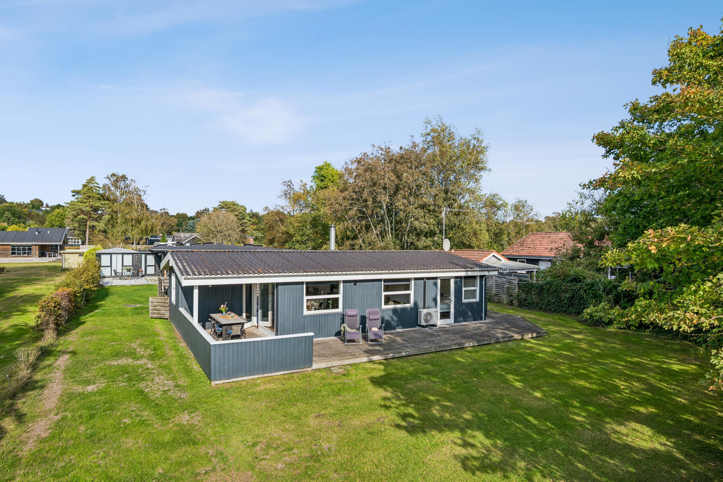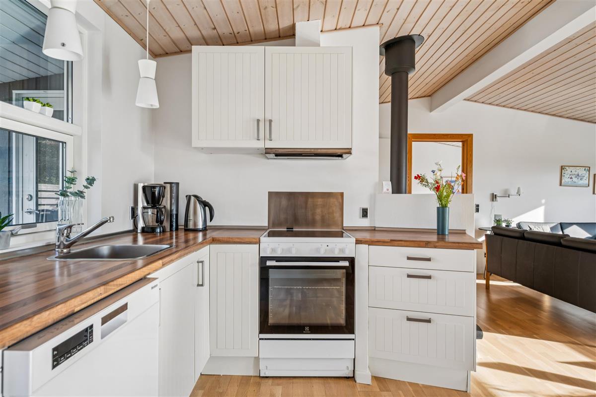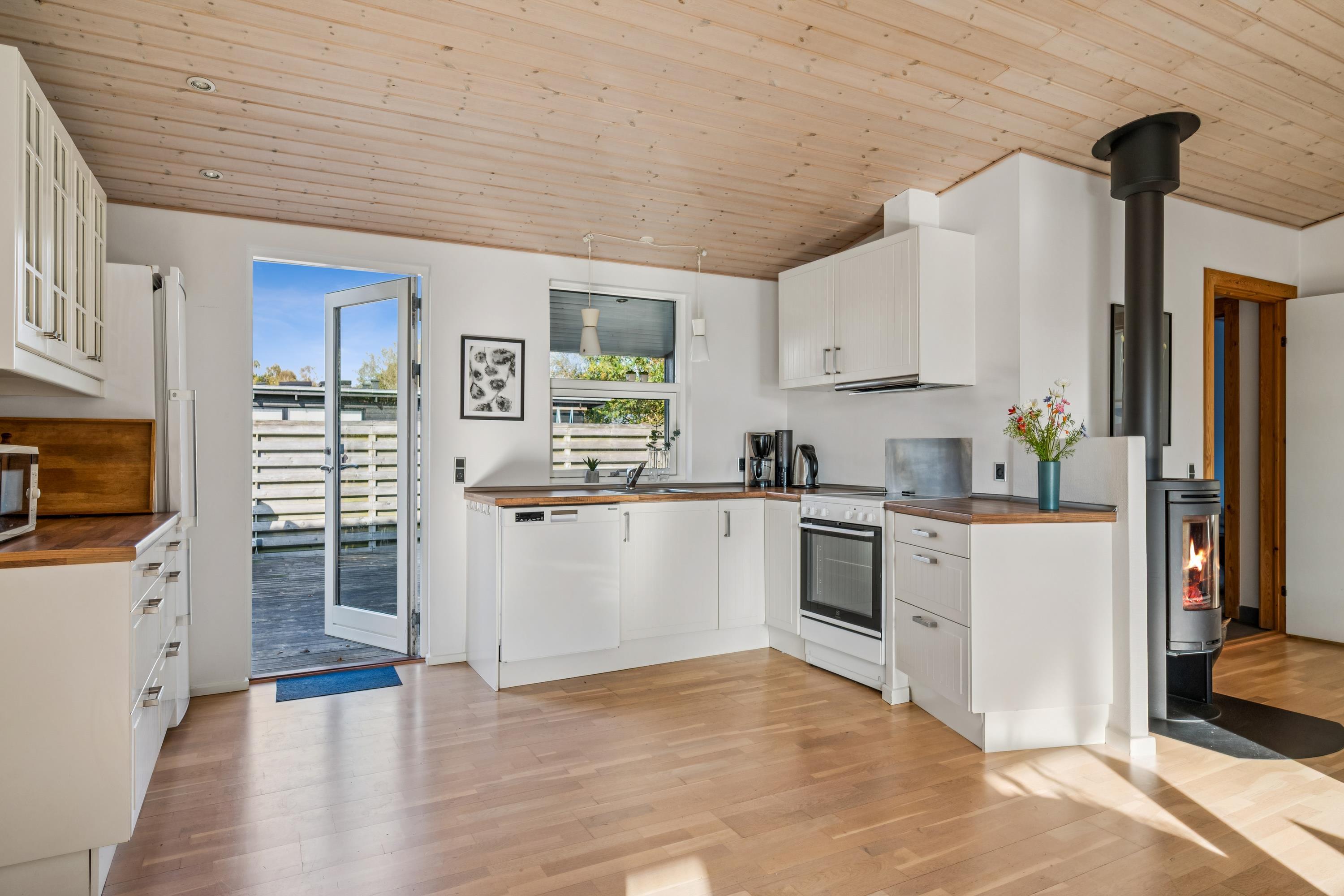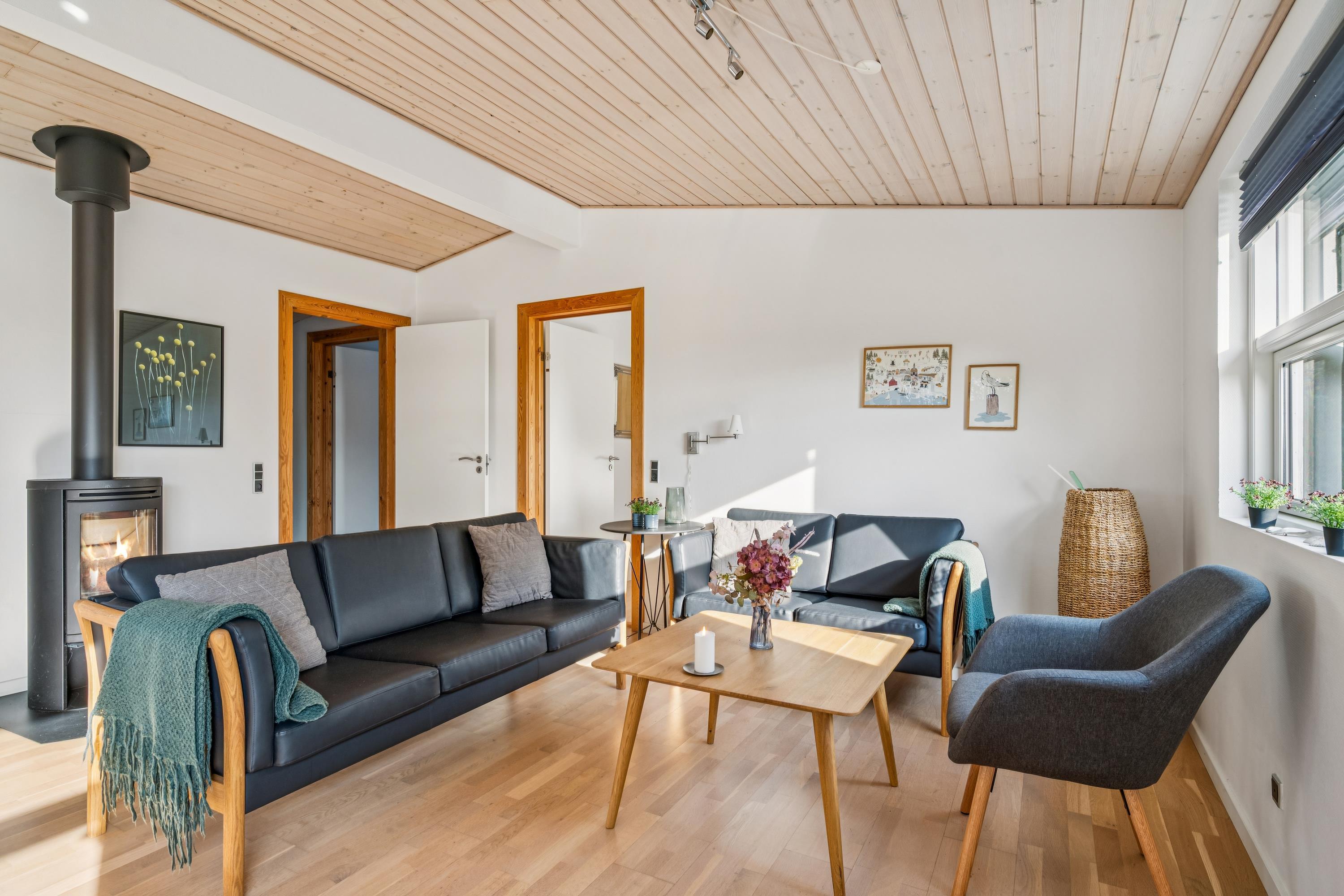 Truly lovely holiday home situated on a natural plot close to a beautiful bathing beach, with sea views from both the property and the living room. The house offers several great terraces with garden furniture and a grill, perfect for enjoying the sun all day. The interior is bright and inviting, featuring light wooden floors throughout.